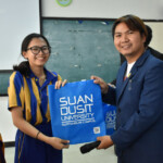 วันอังคารที่ 23 มกราคม 2561 สาขาออกแบบนิทรรศการและการจัดแสดง งานวิชาการและงานทะเบียน และงานประชาสัมพันธ์ มหาวิทยาลัยสวนดุสิต วิทยาเขตสุพรรณบุรี เข้าแนะแนวการศึกษาต่อในระดับอุดมศึกษา ให้กับนักเรียนระดับชั้นมัธยมศึกษาตอนปลาย โรงเรียนกาญจนาภิเษกวิทยาลัย สุพรรณบุรี อำเภอเมืองสุพรรณบุรี จังหวัดสุพรรณบุรี โดยได้แนะนำสาขาที่เปิดรับสมัครและหนดการต่างๆ ในการเปิดรับสมัครนักศึกษาใหม่ ประจำปีการศึกษา 2561