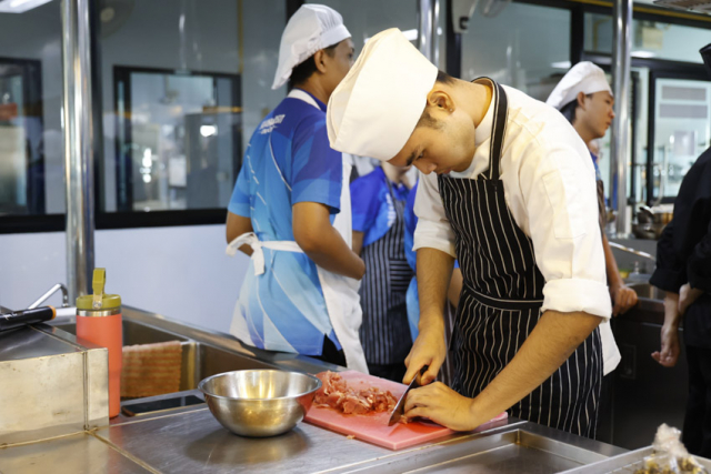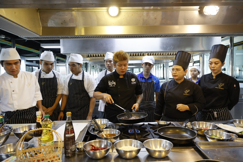 สาขาวิชาเทคโนโลยีการประกอบอาหารและการบริการ โรงเรียนการเรือน มหาวิทยาลัยสวนดุสิต วิทยาเขตสุพรรณบุรี จัดโครงการยกระดับการจัดการทางด้านวิชาการและวิชาชีพทางด้านอาหารสู่ความเป็นสากล ในกิจกรรมสร้างแรงบันดาลใจและพัฒนาทักษะทางด้านอาหาร เพื่อเตรียมความพร้อมสู่การแข่งขันระดับชาติและนานาชาติ โดยมี ดร.วิณาภรณ์ แตงจุ้ย ผู้อำนวยการกองบริการนักศึกษา วิทยาเขตสุพรรณบุรี กล่าวต้อนรับผู้เข้าร่วมโครงการ วิทยากร และเปิดโครงการ และได้รับเกียรติจากคุณพัชร์นันทน์ แสงเรืองเวชกูล EXECUTIVE CHEF ร้านเขียวไข่กา บรรยาย สาธิตและสอนการทำอาหารให้แก่นักศึกษา ในวันเสาร์ที่ 25 มกราคม 2568 เวลา 08.30-16.00 น. ณ ห้องประชุม ชั้น 4 อาคารดร.สุขุม เฉลยทรัพย์ และห้องปฏิบัติการอาหาร ห้อง 5404 ชั้น 4 อาคารแววเที่ยงธรรม