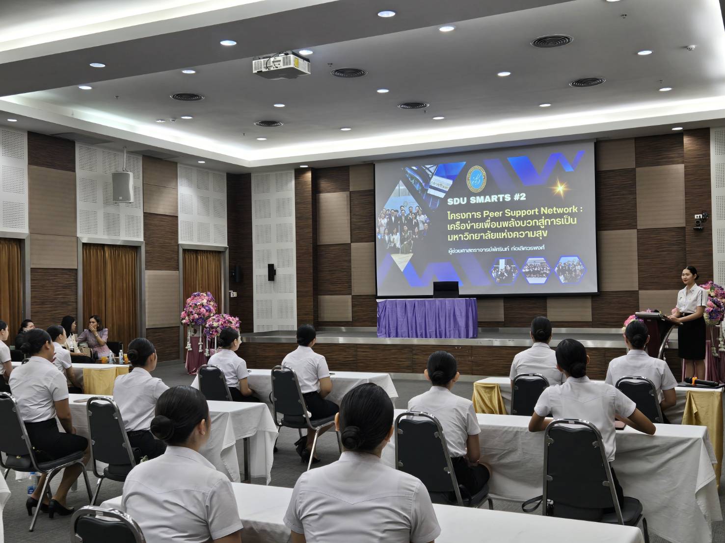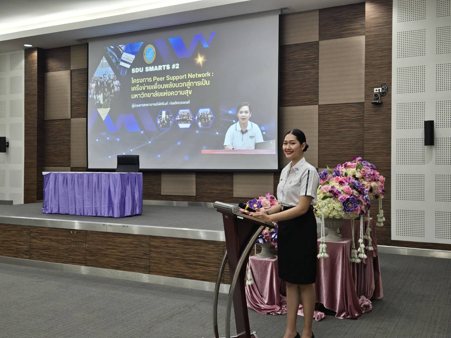 ภายใต้โครงการ SDU SMART #2 :2025 โดย อาจารย์ศุภิสรา ทองจรูญ อาจารย์ประจำหลักสูตร สาขาวิชาธุรกิจการบิน และ อาจารย์ พรพิมล นามวงศ์ อาจารย์ประจำหลักสูตร สาขาวิชาการประถมศึกษา ร่วมจัดโครงการพัฒนาบุคลิกภาพเพื่อรองรับ สังคมผู้สูงอายุ (Aging Society) “SDU Wellness Center” และ โครงการ Young Communicators : Share & Care นักสื่อสารองค์กรรุ่นใหม่ใส่ใจสังคม ระหว่างวันที่ 26-29 กันยายน 2568 ซึ่งได้รับเกียรติจาก นางกัณณ์อลิน สุอังคะวาทิน ผู้อำนวยการสำนักงานวิทยาเขตสุพรรณบุรี เป็นประธานกล่าวเปิดโครงการ ในเวลา 08.30-09.00 น. ณ ห้องประชุม ชั้น 4 อาคาร ดร.สุขุม เฉลยทรัพย์ มหาวิทยาลัยสวนดุสิต วิทยาเขตสุพรรณบุรี