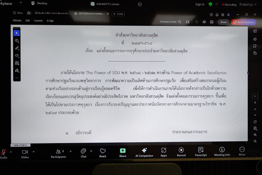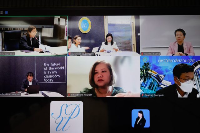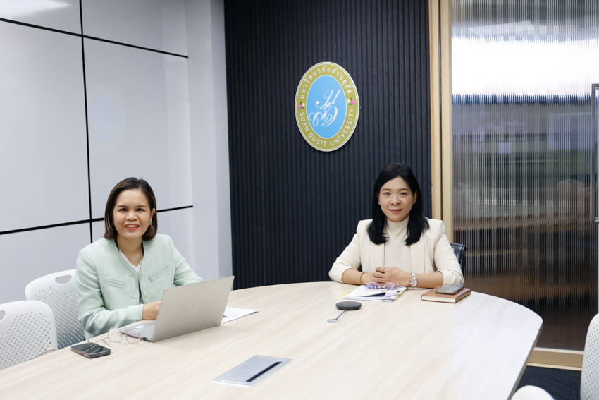 มหาวิทยาลัยสวนดุสิต วิทยาเขตสุพรรณบุรี โดย นางกัณณ์อลิน สุอังคะวาทิน ผู้อำนวยการสำนักงานวิทยาเขตสุพรรณบุรี และ ดร.วิณาภรณ์ แตงจุ้ย ผู้อำนวยการกองบริการนักศึกษา เข้าร่วมการประชุมคณะกรรมการคุรุศึกษาประจำมหาวิทยาลัยสวนดุสิต ครั้งที่ 1 ประจำปีการศึกษา 2568 โดยมี ผู้ช่วยศาสตราจารย์ ดร.พรชนิตว์ แก้วเนตร รองอธิการบดีฝ่ายวิชาการและกิจการต่างประเทศ เป็นประธานในที่ประชุม ณ ห้องประชุมสำนักงานมหาวิทยาลัย ชั้น 5 โดยคณะผู้บริหารวิทยาเขตสุพรรณบุรี เข้าร่วมการประชุมผ่านระบบ Online โปรแกรม Zoom Meeting ในวันศุกร์ที่ 24 ตุลาคม 2568 เวลา 13.30-15.00 น. ณ ห้องประชุม SDU Online 12 ชั้น 3 อาคารสวนแก้ว 2 มหาวิทยาลัยสวนดุสิต วิทยาเขตสุพรรณบุรี
