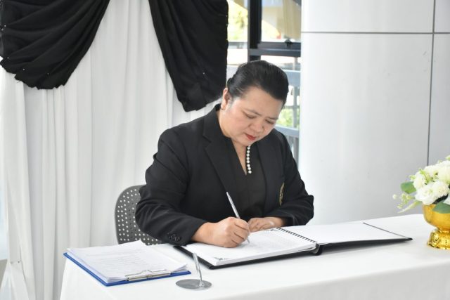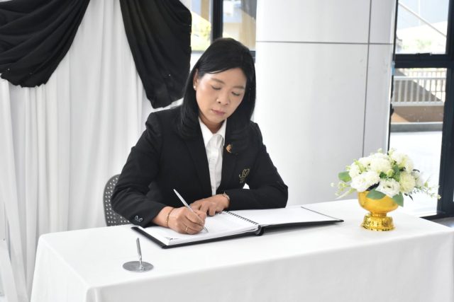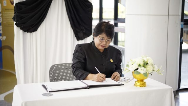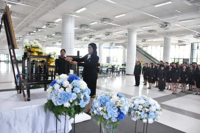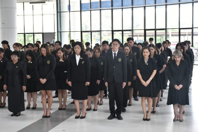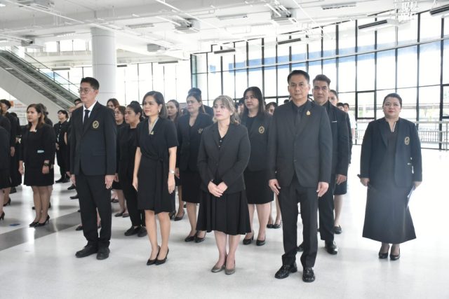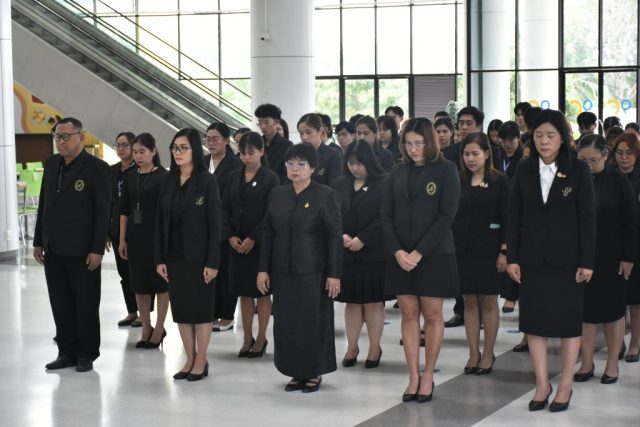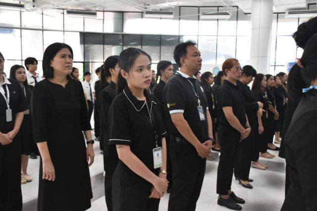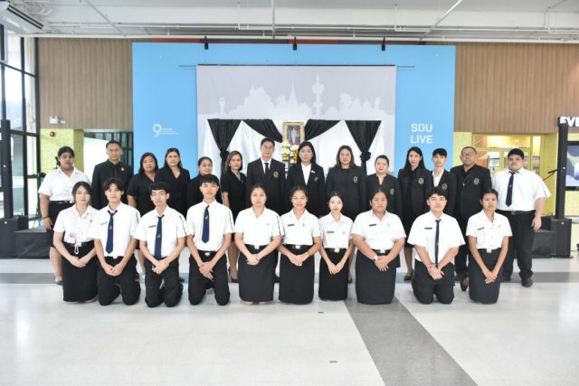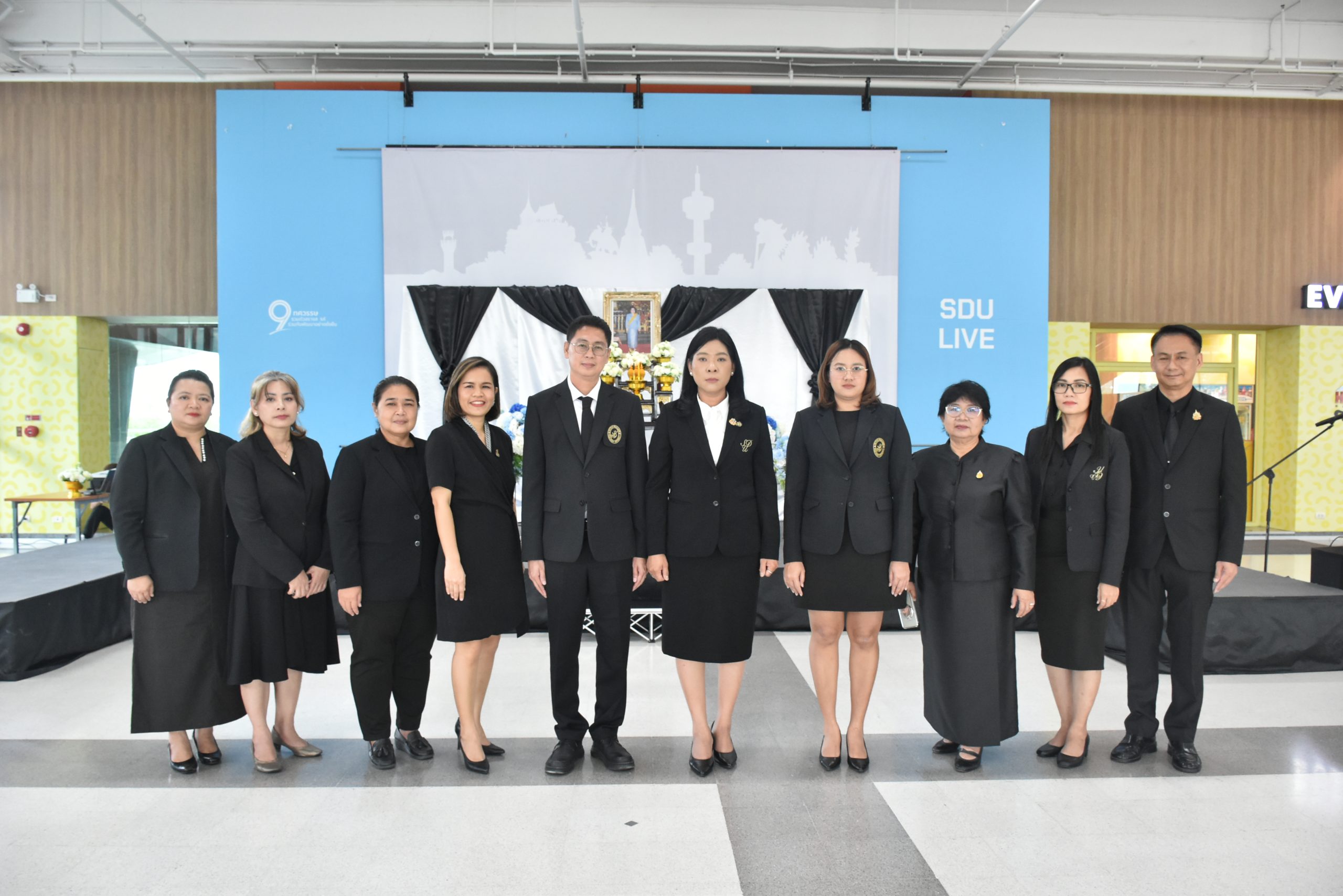 มหาวิทยาลัยสวนดุสิต จัดพีธีถวายความอาลัย สมเด็จพระนางเจ้าสิริกิติ์ พระบรมราชินีนาถ พระบรมราชชนนีพันปีหลวง โดยจัดพิธีโดยพร้อมเพียงทั้งวิทยาเขตและศูนย์การศึกษา โดยมี ผู้ช่วยศาสตราจารย์ ดร.พิทักษ์ จันทร์เจริญ อธิการบดี มหาวิทยาลัยสวนดุสิต เป็นประธานในพิธี ซึ่งวิทยาเขตสุพรรณบุรี นำโดย นางกัณณ์อลิน สุอังคะวาทิน ผู้อำนวยการสำนักงานวิทยาเขตสุพรรณบุรี พร้อมคณะผู้บริหาร คณาจารย์ บุคลากร และนักศึกษา เข้าร่วมพีธีถวายความอาลัย สมเด็จพระนางเจ้าสิริกิติ์ พระบรมราชินีนาถ พระบรมราชชนนีพันปีหลวง โดยพร้อมเพรียงในวันพฤหัสบดีที่ 30 ตุลาคม 2568 เวลา 15.20-15.40 น. ณ โถงอเนกประสงค์ ชั้น 3 อาคาร ดร.สุขุม เฉลยทรัพย์ มหาวิทยาลัยสวนดุสิต วิทยาเขตสุพรรณบุรี