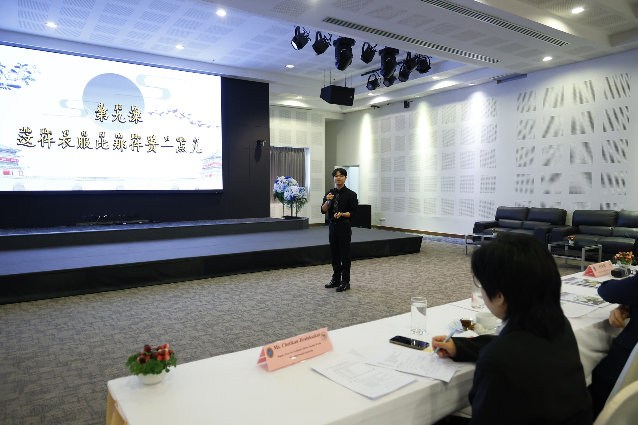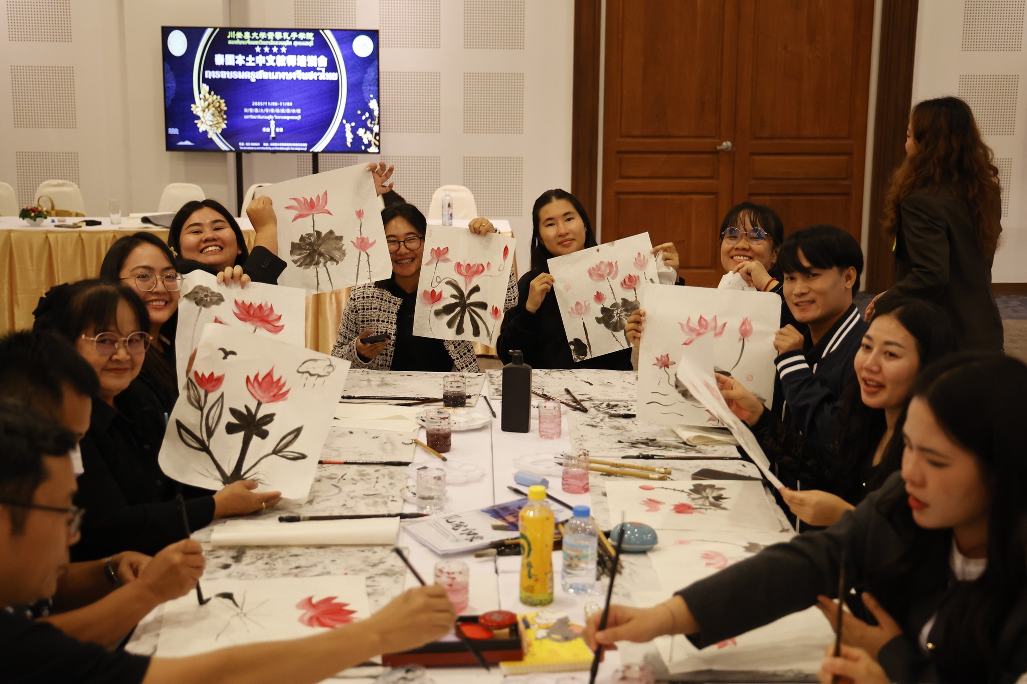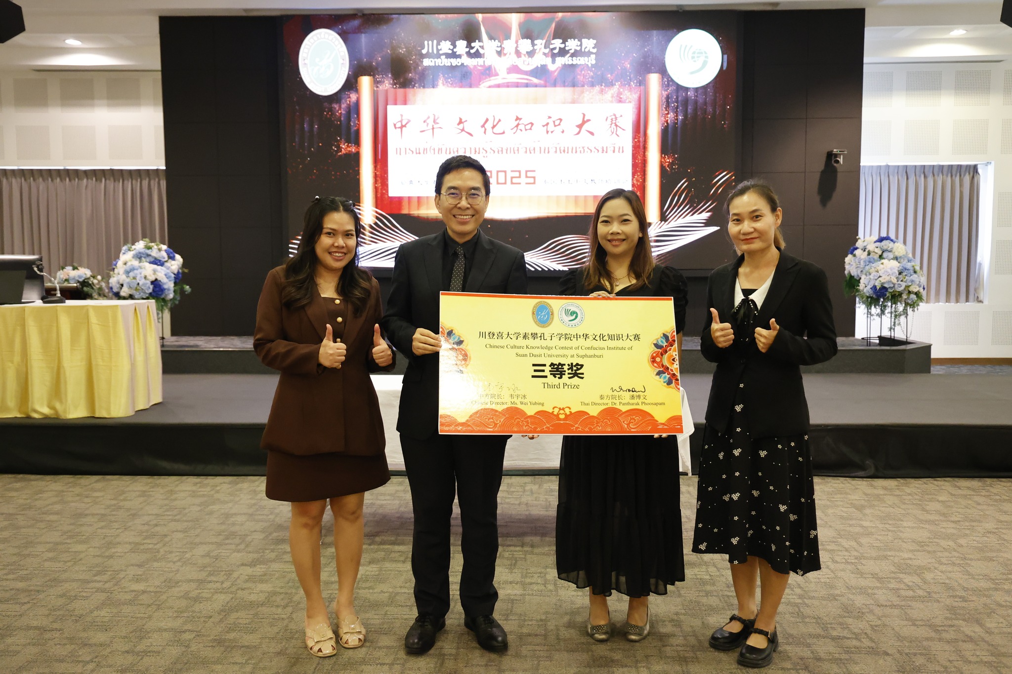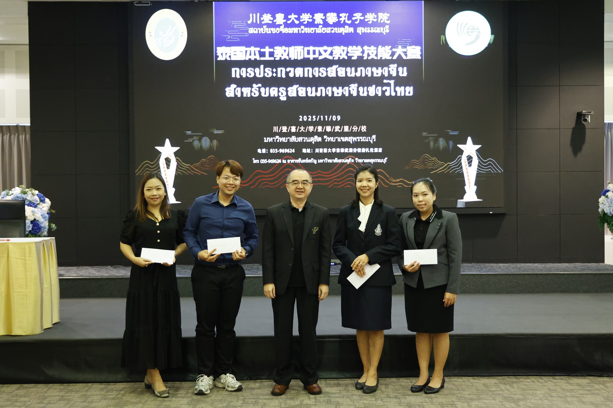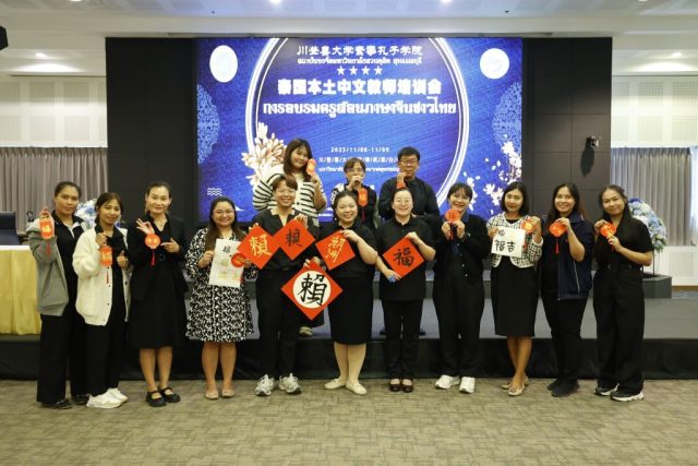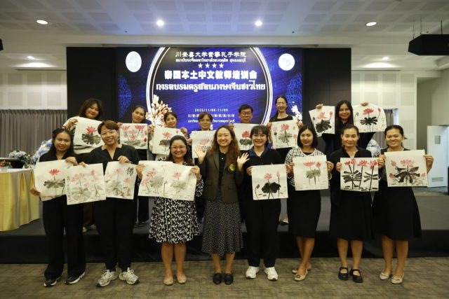 สถาบันขงจื่อ มหาวิทยาลัยสวนดุสิต สุพรรณบุรี จัดการอบรมครูสอนภาษาจีนชาวไทย ประจำปี 2568 โดยได้รับเกียรติจาก ดร.พันธรักษ์ ผูกพันธ์ ผู้อำนวยการสถาบันขงจื่อมหาวิทยาลัยสวนดุสิตสุพรรณบุรี ฝ่ายไทย และ Mrs.Wei Yubing ผู้อำนวยการสถาบันขงจื่อ มหาวิทยาลัยสวนดุสิต สุพรรณบุรี ฝ่ายจีน เป็นประธานกล่าวต้อนรับและกล่าวเปิดงาน โดยมีการอบรมทักษะด้านวัฒนธรรมจีนให้กับครูสอนภาษาจีนชาวไทยประกอบด้วยกิจกรรมดังนี้ การเขียนพู่กันจีน ศิลปะการวาดภาพจีน การดัดลวดกำมะหยี่แบบจีน โดยกิจกรรมจัดขึ้นระหว่างที่ 8-9 พฤศจิกายน 2568 เวลา 08.30-16.00 น. ณ ห้องประชุมพวงเงิน ศูนย์ปฏิบัติการอาหารมุสลิม (อาจารจันทร์เจริญ) มหาวิทยาลัยสวนดุสิต วิทยาเขตสุพรรณบุรี
