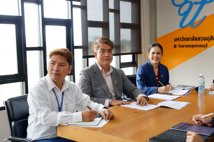 มหาวิทยาลัยสวนดุสิต วิทยาเขตสุพรรณบุรี การประชุมคณะกรรมการฝ่ายกิจการนักศึกษา ครั้งที่ 1/2568 โดยมี ผู้ช่วยศาสตราจารย์ ดร.พิทักษ์ จันทร์เจริญ รักษาการแทนอธิการบดีมหาวิทยาลัยสวนดุสิต เป็นประธานในที่ประชุม ผ่านระบบออนไลน์ ณ ห้องประชุมลำพอง 2 มหาวิทยาลัยสวนดุสิต ซึ่งทางวิทยาเขตวิทยาเขตสุพรรณบุรี นำโดย ดร.วรานี เวสสุนทรเทพ รองอธิการบดีฝ่ายวิทยาเขตสุพรรรณบุรี นางกัณณ์อลิน สุอังคะวาทิน ผู้อำนวยการสำนักงานวิทยาเขตสุพรรณบุรี ดร.วิณาภรณ์ แตงจุ้ย ผู้อำนวยการกองบริการนักศึกษา พร้อมเจ้าหน้าที่กองบริการนักศึกษา วิทยาเขตสุพรรณบุรี เข้าร่วมการประชุม ในวันอังคารที่ 25 กุมภาพันธ์ 2568 เวลา 10.00-11.00 น. ณ ห้องประชุม 2 ชั้น 2 อาคารศูนย์การเรียนรู้ระบบใหม่โดยใช้เทคโนโลยีเป็นสื่อ (SDU Library) มหาวิทยาลัยสวนดุสิต วิทยาเขตสุพรรณบุรี