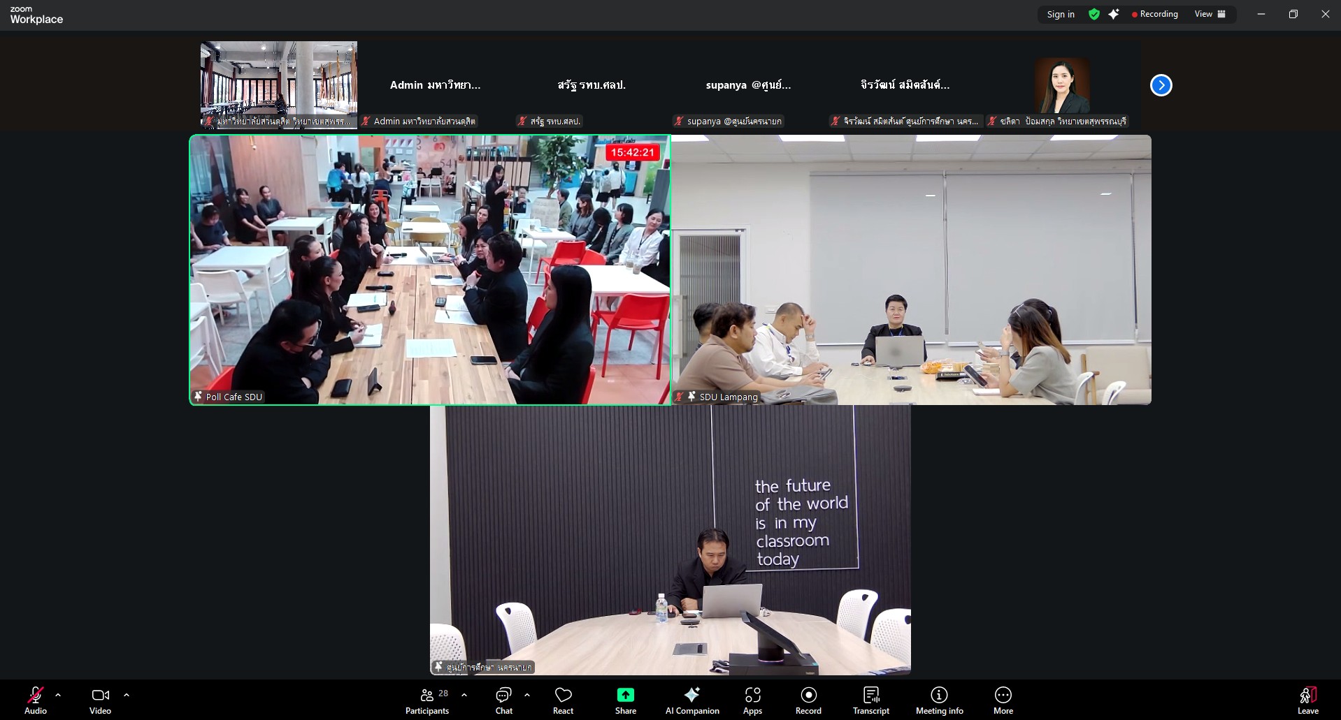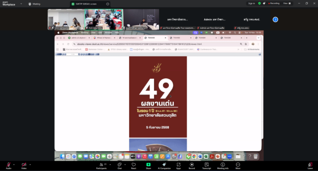 มหาวิทยาลัยสวนดุสิต วิทยาเขตสุพรรณบุรี เข้าร่วมกิจกรรม คุยสบายๆ … Life สาระ ครั้งที่ 395 หัวข้อ 14 ผลงานเด่น : โครงการ การคัดเลือกผลงานดีเด่น 236 ผลงาน คนสวนดุสิต ในรอบ 1 ปี พบกับเจ้าของผลงานทั้ง 14 ผลงาน ซึ่งมีบุคลากรวิทยาเขตสุพรรณบุรี เข้าร่วมกิจกรรมผ่านระบบ Online โปรแกรม Zoom Meeting ในวันอังคารที่ 18 พฤศจิกายน 2568 เวลา 15.30 -16.30 น. ณ อาคารศูนย์การเรียนรู้ระบบใหม่โดยใช้เทคโนโลยีเป็นสื่อ (SDU Library) ชั้น 1 โซนกลาง มหาวิทยาลัยสวนดุสิต วิทยาเขตสุพรรณบุรี