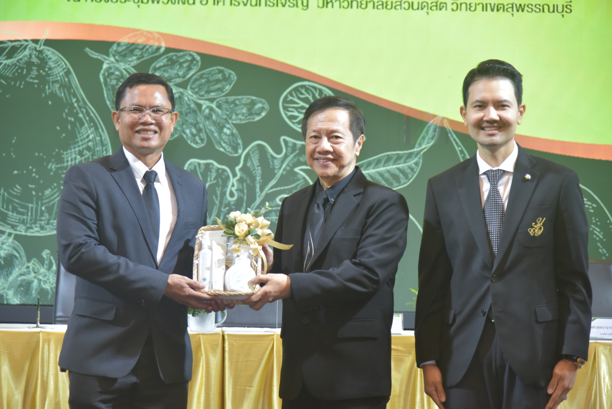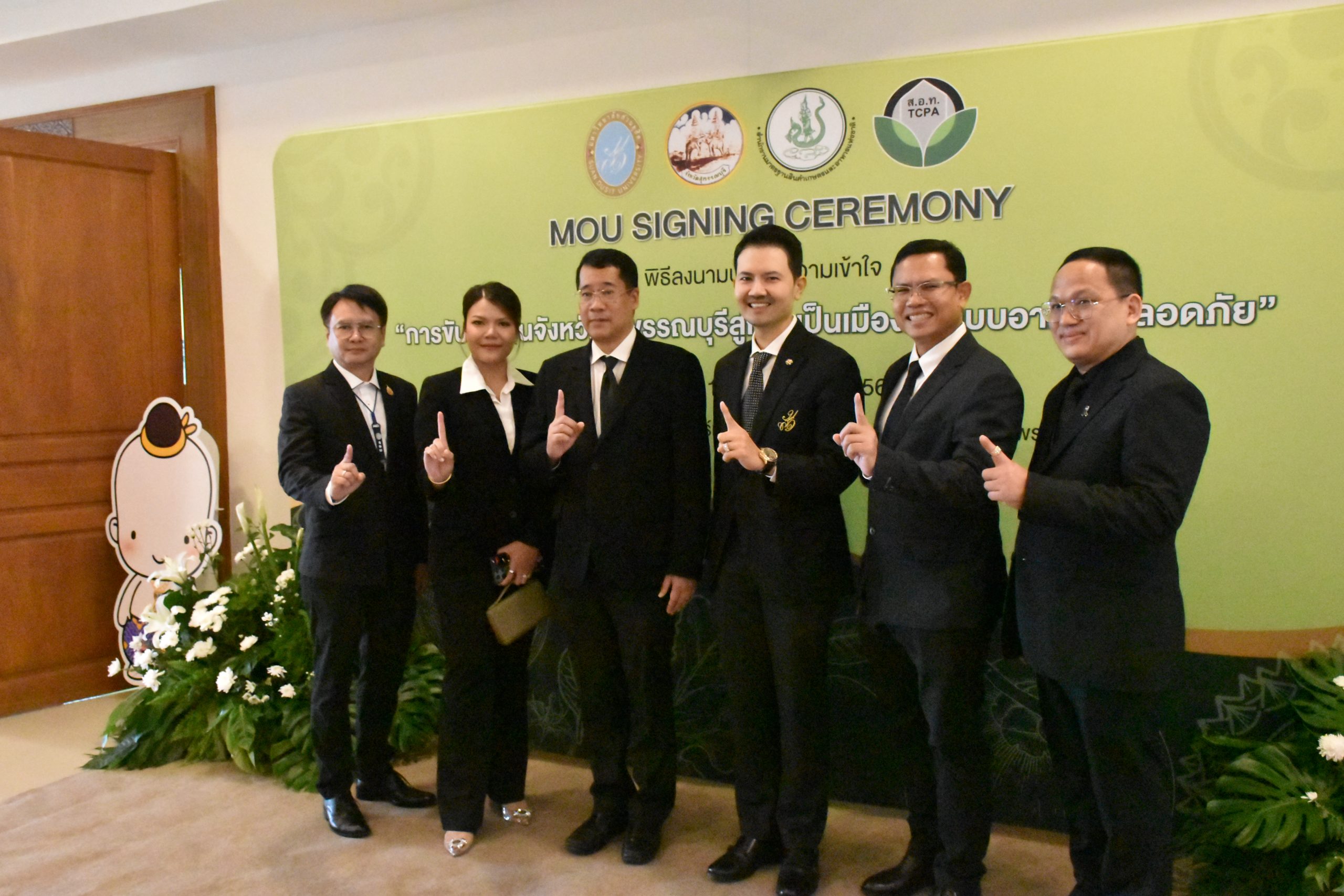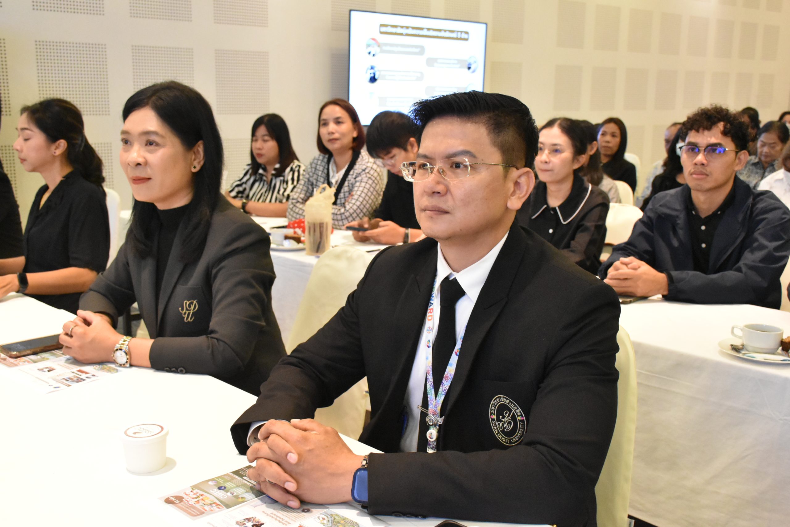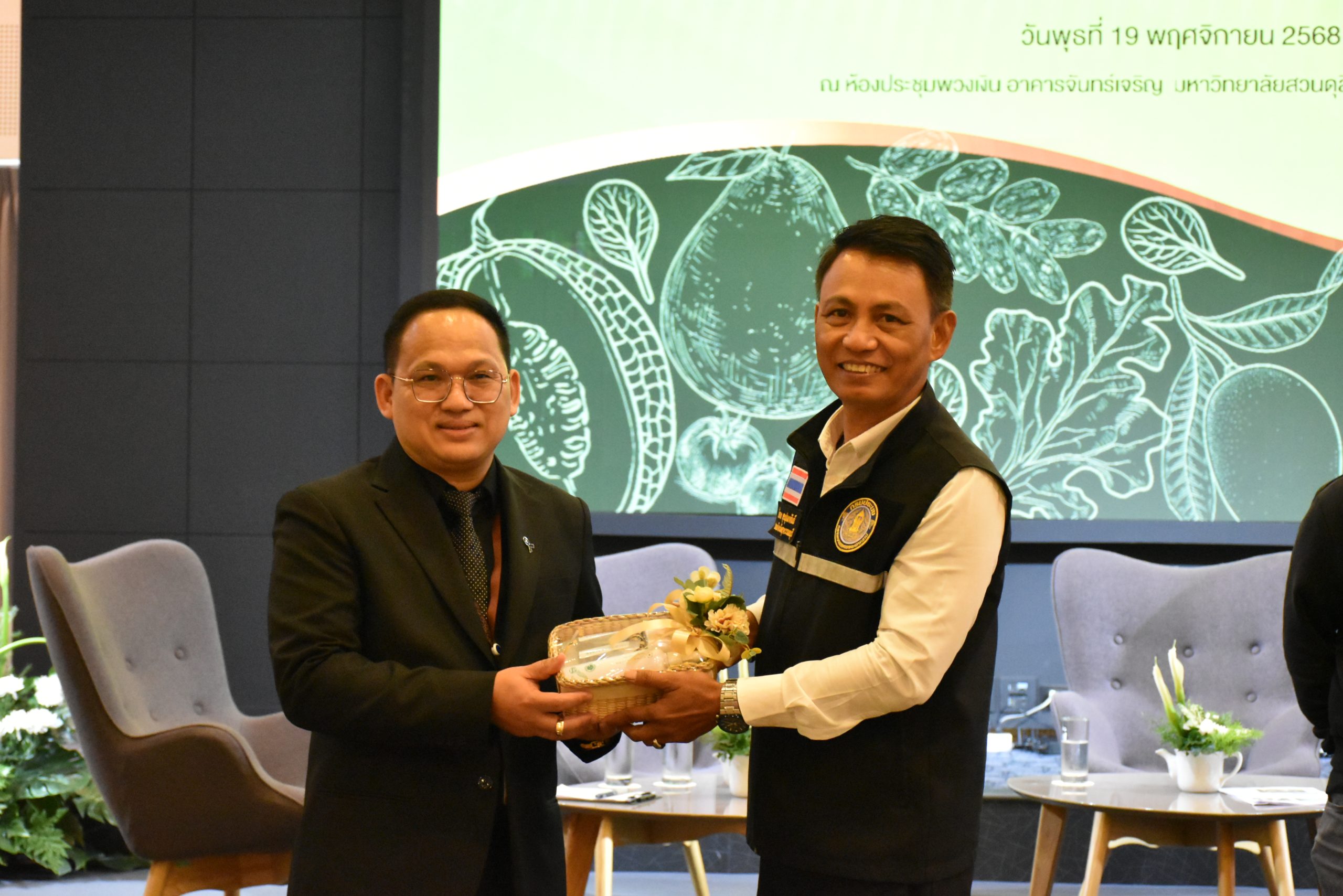 มหาวิทยาลัยสวนดุสิต วิทยาเขตสุพรรณบุรี นำโดย นางกัณณ์อลิน สุอังคะวาทิน ผู้อำนวยการสำนักงานวิทยาเขตสุพรรณบุรี และ นางสาวจุฑารัตน์ จิ๋วสง่า ผู้อำนวยการกองกลาง พร้อมบุคลากร ให้การต้อนรับ สำนักนวัตกรรมชุมชน มหาวิทยาลัยสวนดุสิต ในการจัดพิธีลงนามบันทึกความเข้าใจในการขับเคลื่อนจังหวัดสุพรรณบุรีสู่การเป็นเมืองต้นแบบอาหารปลอดภัย ระหว่างมหาวิทยาลัยสวนดุสิตกับสำนักงานมาตรฐานสินค้าเกษตรและอาหารแห่งชาติ สมาคมอารักขาพืชไทย และจังหวัดสุพรรณบุรี โดยได้รับเกียรติจาก นายณัฐพงษ์ สงวนจิตร ผู้ว่าราชการจังหวัดสุพรรณบุรี ดร.พงศ์ไท ไทโยธิน รองเลขาธิการ มกอช. นายสมศักดิ์ สมานวงศ์ นายกสมาคม อารักขาพืชไทย ผู้ช่วยศาสตราจารย์ ดร.พิทักษ์ จันทร์เจริญ อธิการบดี มหาวิทยาลัยสวนดุสิต และรองศาสตราจารย์ ดร.ชนะศึก นิชานนท์ รองอธิการบดีฝ่ายบริหารวิจัย และนวัตกรรม มหาวิทยาลัยสวนดุสิต ให้เกียรติเข้าร่วมลงในฐานะตัวแทนของหน่วยงาน โดยมีหัวหน้าส่วนราชการ ผู้บริหารมหาวิทยาลัย บุคลากร นักศึกษาและเกษตรกรให้ความสนใจเข้าร่วมเป็นจำนวนมาก นอกจากนี้ ภายในงานยังมีกิจกรรมการจัดแสดงบูธนิทรรศการสินค้าเกษตรและสินค้าแปรรูปที่ได้รับการรับรองมาตรฐานเกษตรปลอดภัย (GAP) และมาตรฐานแบรนด์น้องเหน่อของจังหวัดสุพรรณบุรี จำนวน 15 บูธ ตลอดจนกิจกรรมการเสวนาภายใต้โครงการ “การยกระดับห่วงโซ่คุณค่าปลาสลิดดอนกำยานเพื่อขับเคลื่อนเศรษฐกิจสร้างสรรค์” ในวันพุธที่ 19 พฤศจิกายน 2568 เวลา 09.00-15.00 น. ณ ห้องประชุมพวงเงิน ศูนย์ฝึกปฏิบัติการอาหารมุสลิม (อาคารจันทร์เจริญ) มหาวิทยาลัยสวนดุสิต วิทยาเขตสุพรรณบุรี
