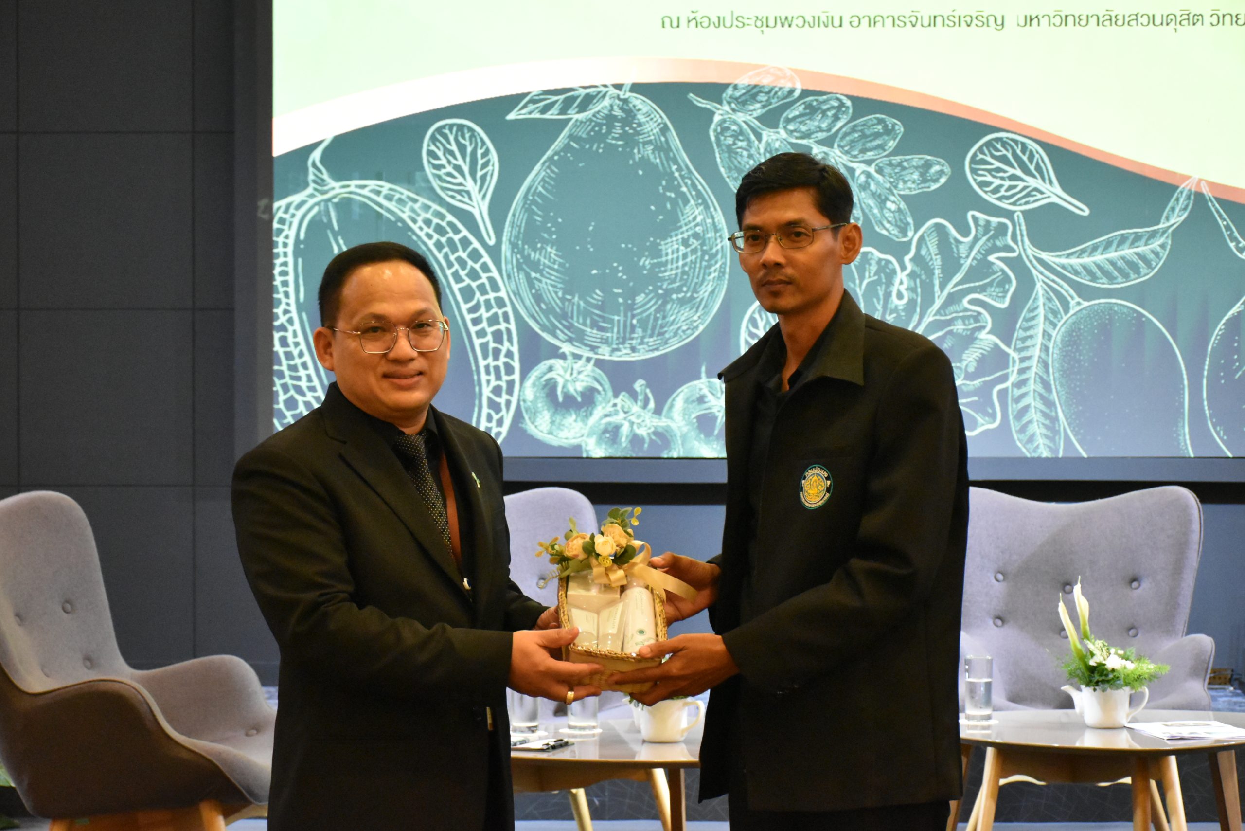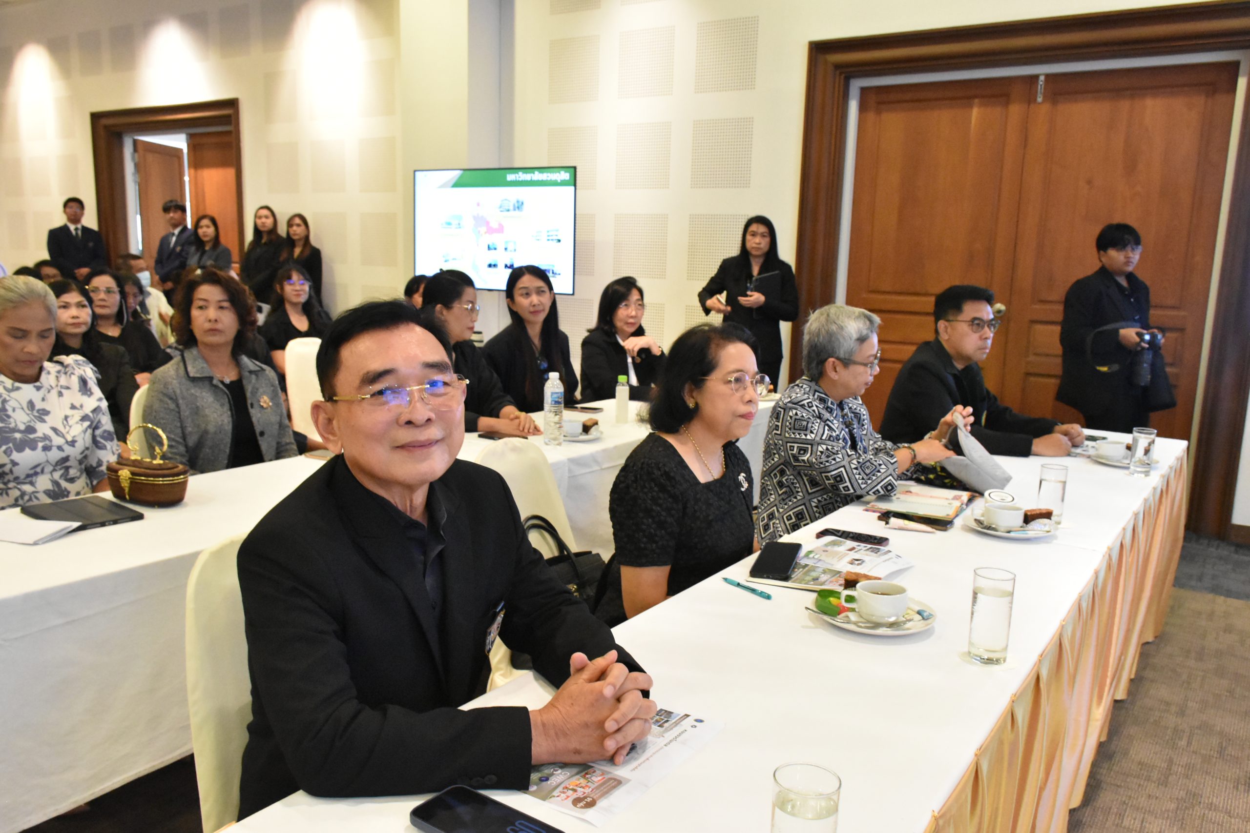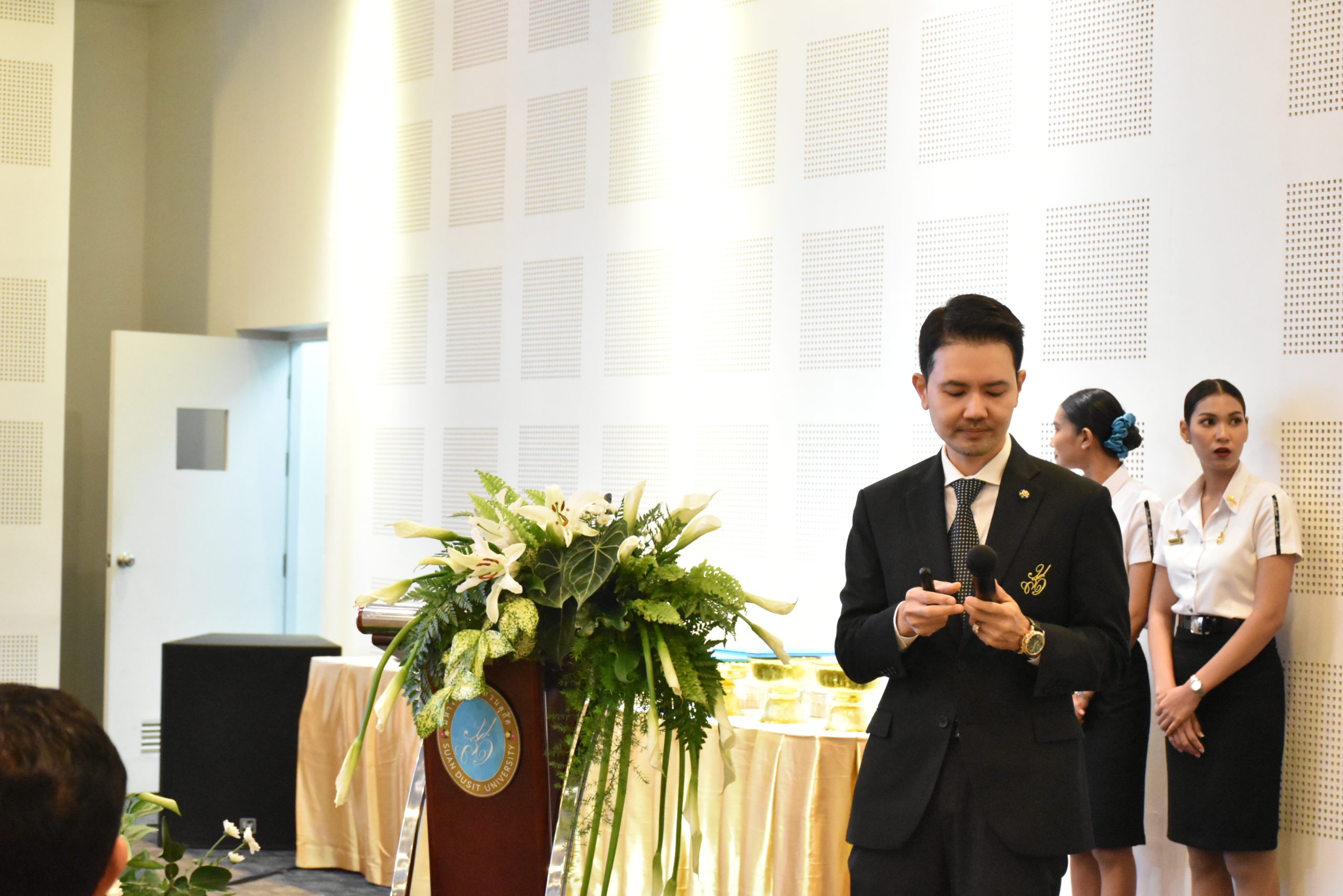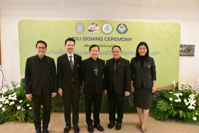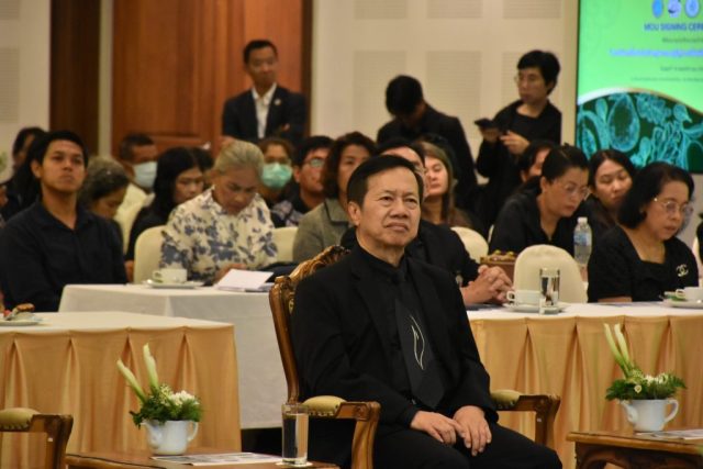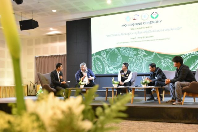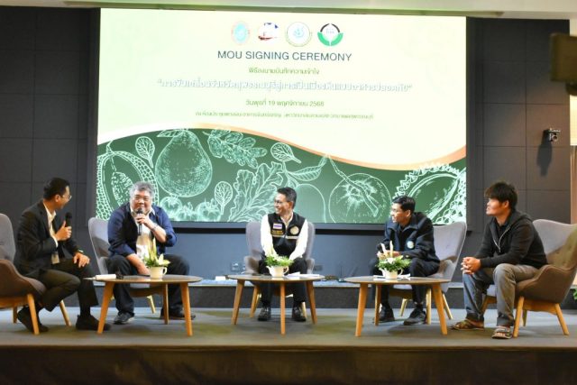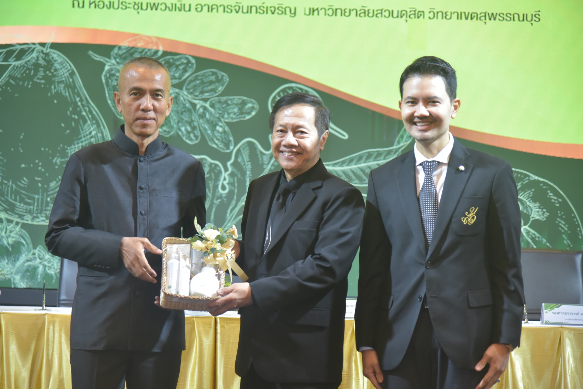มหาวิทยาลัยสวนดุสิต วิทยาเขตสุพรรณบุรี นำโดย นางกัณณ์อลิน สุอังคะวาทิน ผู้อำนวยการสำนักงานวิทยาเขตสุพรรณบุรี และ นางสาวจุฑารัตน์ จิ๋วสง่า ผู้อำนวยการกองกลาง พร้อมบุคลากร ให้การต้อนรับ สำนักนวัตกรรมชุมชน มหาวิทยาลัยสวนดุสิต ในการจัดพิธีลงนามบันทึกความเข้าใจในการขับเคลื่อนจังหวัดสุพรรณบุรีสู่การเป็นเมืองต้นแบบอาหารปลอดภัย ระหว่างมหาวิทยาลัยสวนดุสิตกับสำนักงานมาตรฐานสินค้าเกษตรและอาหารแห่งชาติ สมาคมอารักขาพืชไทย และจังหวัดสุพรรณบุรี โดยได้รับเกียรติจาก นายณัฐพงษ์ สงวนจิตร ผู้ว่าราชการจังหวัดสุพรรณบุรี ดร.พงศ์ไท ไทโยธิน รองเลขาธิการ มกอช. นายสมศักดิ์ สมานวงศ์ นายกสมาคม อารักขาพืชไทย ผู้ช่วยศาสตราจารย์ ดร.พิทักษ์ จันทร์เจริญ อธิการบดี มหาวิทยาลัยสวนดุสิต และรองศาสตราจารย์ ดร.ชนะศึก นิชานนท์ รองอธิการบดีฝ่ายบริหารวิจัย และนวัตกรรม มหาวิทยาลัยสวนดุสิต ให้เกียรติเข้าร่วมลงในฐานะตัวแทนของหน่วยงาน โดยมีหัวหน้าส่วนราชการ ผู้บริหารมหาวิทยาลัย บุคลากร นักศึกษาและเกษตรกรให้ความสนใจเข้าร่วมเป็นจำนวนมาก นอกจากนี้ ภายในงานยังมีกิจกรรมการจัดแสดงบูธนิทรรศการสินค้าเกษตรและสินค้าแปรรูปที่ได้รับการรับรองมาตรฐานเกษตรปลอดภัย (GAP) และมาตรฐานแบรนด์น้องเหน่อของจังหวัดสุพรรณบุรี จำนวน 15 บูธ ตลอดจนกิจกรรมการเสวนาภายใต้โครงการ “การยกระดับห่วงโซ่คุณค่าปลาสลิดดอนกำยานเพื่อขับเคลื่อนเศรษฐกิจสร้างสรรค์” ในวันพุธที่ 19 พฤศจิกายน 2568 เวลา 09.00-15.00 น. ณ ห้องประชุมพวงเงิน ศูนย์ฝึกปฏิบัติการอาหารมุสลิม (อาคารจันทร์เจริญ) มหาวิทยาลัยสวนดุสิต วิทยาเขตสุพรรณบุรี