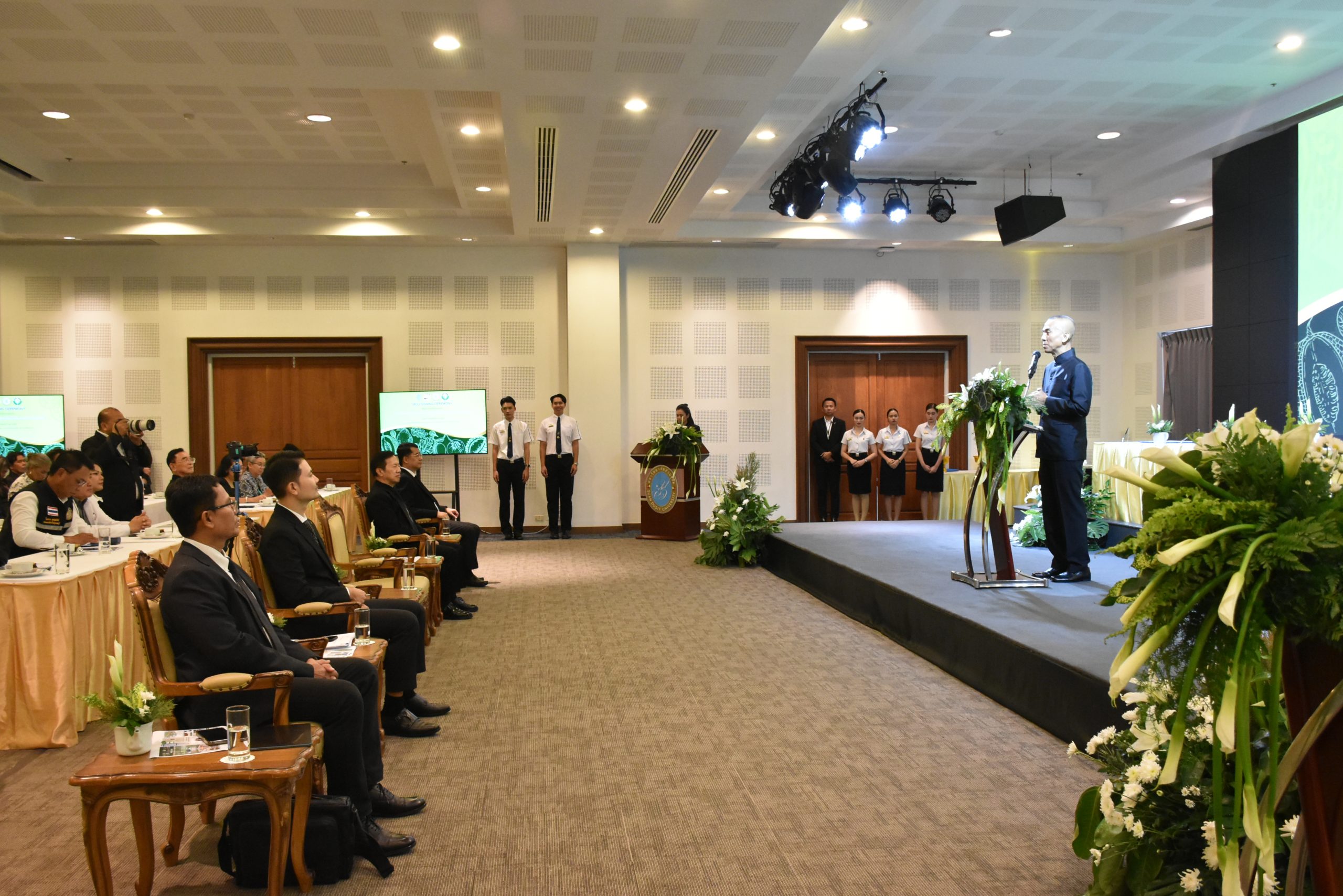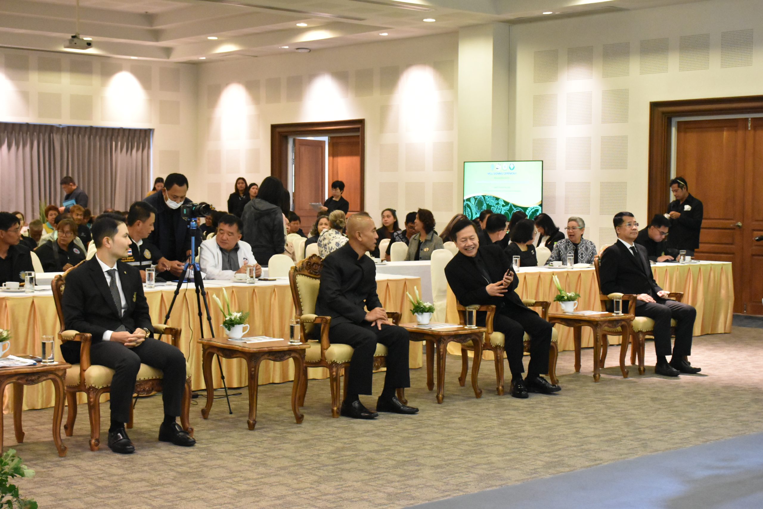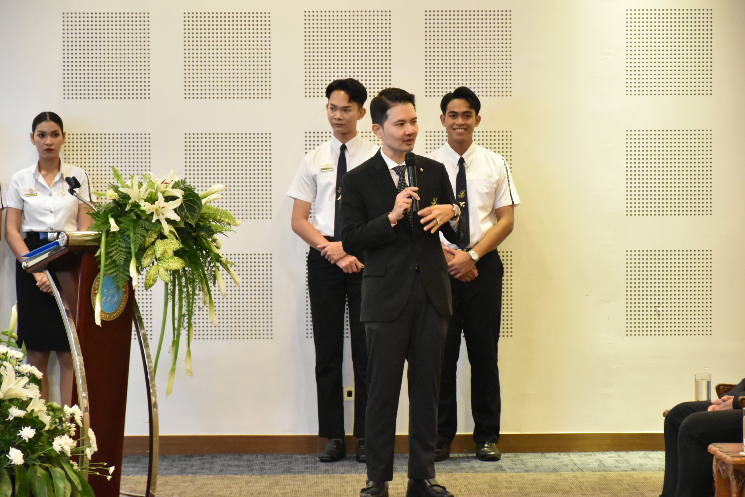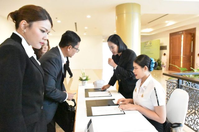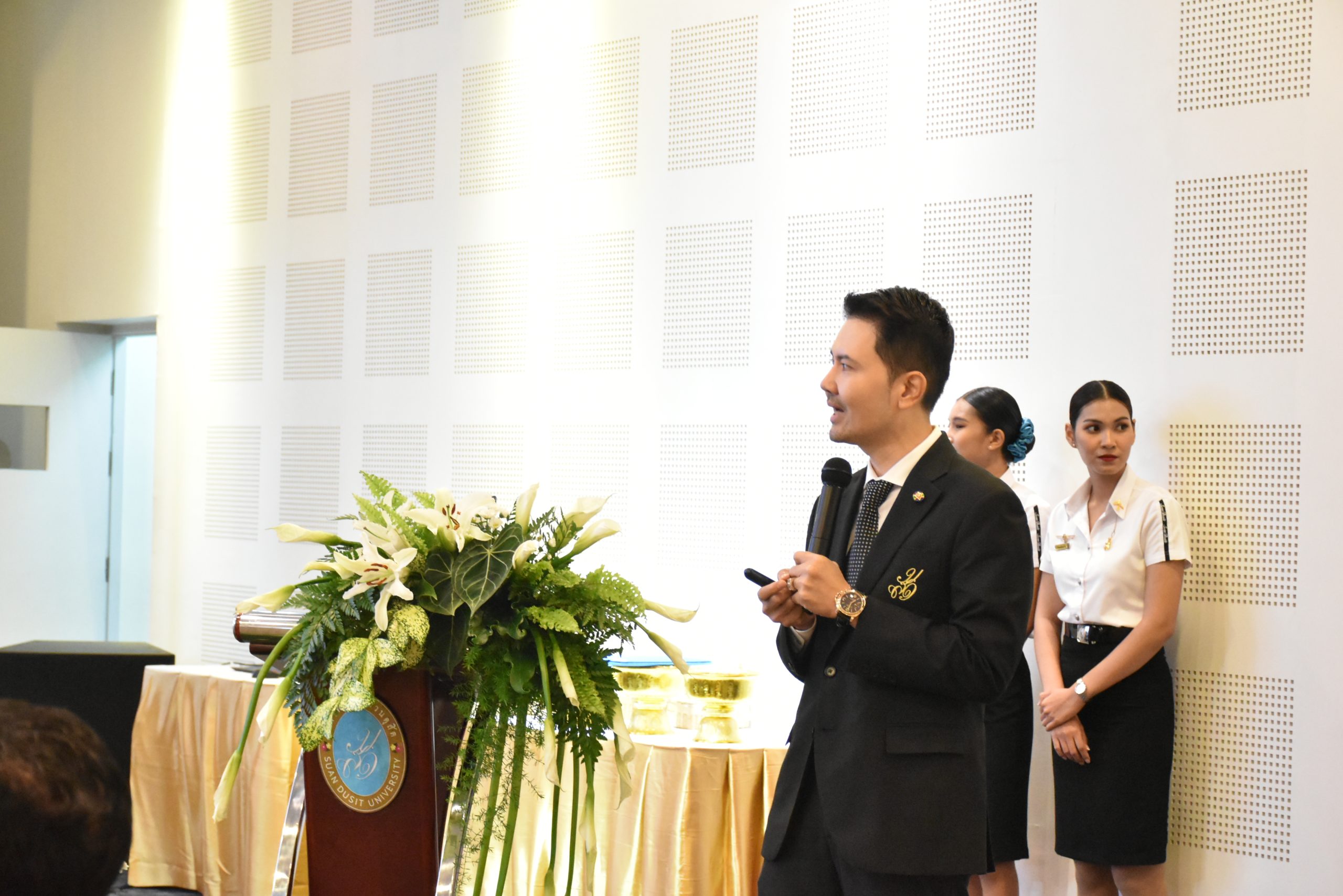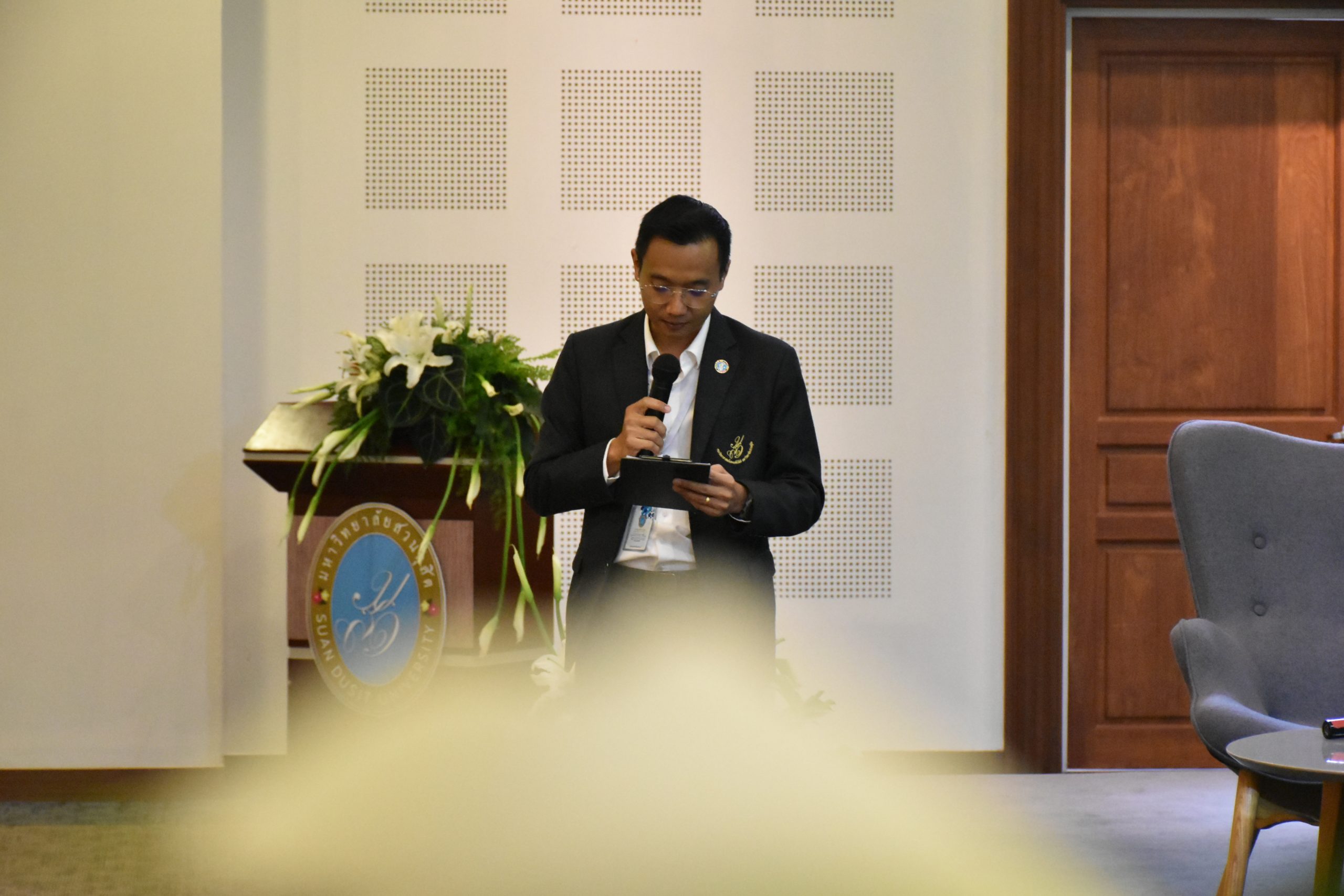 มหาวิทยาลัยสวนดุสิต วิทยาเขตสุพรรณบุรี นำโดย นางกัณณ์อลิน สุอังคะวาทิน ผู้อำนวยการสำนักงานวิทยาเขตสุพรรณบุรี และ นางสาวจุฑารัตน์ จิ๋วสง่า ผู้อำนวยการกองกลาง พร้อมบุคลากร ให้การต้อนรับ สำนักนวัตกรรมชุมชน มหาวิทยาลัยสวนดุสิต ในการจัดพิธีลงนามบันทึกความเข้าใจในการขับเคลื่อนจังหวัดสุพรรณบุรีสู่การเป็นเมืองต้นแบบอาหารปลอดภัย ระหว่างมหาวิทยาลัยสวนดุสิตกับสำนักงานมาตรฐานสินค้าเกษตรและอาหารแห่งชาติ สมาคมอารักขาพืชไทย และจังหวัดสุพรรณบุรี โดยได้รับเกียรติจาก นายณัฐพงษ์ สงวนจิตร ผู้ว่าราชการจังหวัดสุพรรณบุรี ดร.พงศ์ไท ไทโยธิน รองเลขาธิการ มกอช. นายสมศักดิ์ สมานวงศ์ นายกสมาคม อารักขาพืชไทย ผู้ช่วยศาสตราจารย์ ดร.พิทักษ์ จันทร์เจริญ อธิการบดี มหาวิทยาลัยสวนดุสิต และรองศาสตราจารย์ ดร.ชนะศึก นิชานนท์ รองอธิการบดีฝ่ายบริหารวิจัย และนวัตกรรม มหาวิทยาลัยสวนดุสิต ให้เกียรติเข้าร่วมลงในฐานะตัวแทนของหน่วยงาน โดยมีหัวหน้าส่วนราชการ ผู้บริหารมหาวิทยาลัย บุคลากร นักศึกษาและเกษตรกรให้ความสนใจเข้าร่วมเป็นจำนวนมาก นอกจากนี้ ภายในงานยังมีกิจกรรมการจัดแสดงบูธนิทรรศการสินค้าเกษตรและสินค้าแปรรูปที่ได้รับการรับรองมาตรฐานเกษตรปลอดภัย (GAP) และมาตรฐานแบรนด์น้องเหน่อของจังหวัดสุพรรณบุรี จำนวน 15 บูธ ตลอดจนกิจกรรมการเสวนาภายใต้โครงการ “การยกระดับห่วงโซ่คุณค่าปลาสลิดดอนกำยานเพื่อขับเคลื่อนเศรษฐกิจสร้างสรรค์” ในวันพุธที่ 19 พฤศจิกายน 2568 เวลา 09.00-15.00 น. ณ ห้องประชุมพวงเงิน ศูนย์ฝึกปฏิบัติการอาหารมุสลิม (อาคารจันทร์เจริญ) มหาวิทยาลัยสวนดุสิต วิทยาเขตสุพรรณบุรี