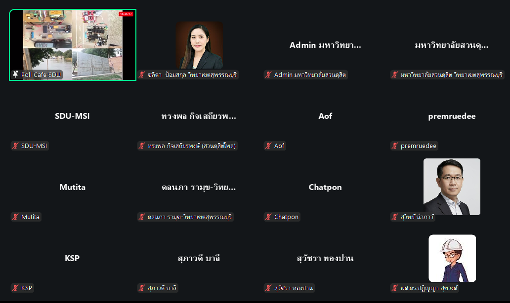 มหาวิทยาลัยสวนดุสิต วิทยาเขตสุพรรณบุรี เข้าร่วมกิจกรรม คุยสบายๆ … Life สาระ ครั้งที่ 398 โดย หลักสูตรอาชีวอนามัยและความปลอดภัย มหาวิทยาลัยสวนดุสิต หัวข้อ : จดทะเบียนทรัพย์สินทางปัญญา ประเภท “สิทธิบัตร” เรื่อง “ระบบวัดแรงดันน้ำที่มีผลต่อคันกั้นน้ำ” โดย รองศาสตราจารย์ ดร.สุรชาติ สินวรณ์ และ รองศาสตราจารย์ ดร.ณัฐบดี วิริยาวัฒน์ ซึ่งมีบุคลากรวิทยาเขตสุพรรณบุรี เข้าร่วมกิจกรรมผ่านระบบ Online โปรแกรม Zoom Meeting ในวันพฤหัสบดีที่ 27 พฤศจิกายน 2568 เวลา 15.30 -16.30 น. ณ อาคารศูนย์การเรียนรู้ระบบใหม่โดยใช้เทคโนโลยีเป็นสื่อ (SDU Library) ชั้น 1 โซนกลาง มหาวิทยาลัยสวนดุสิต วิทยาเขตสุพรรณบุรี