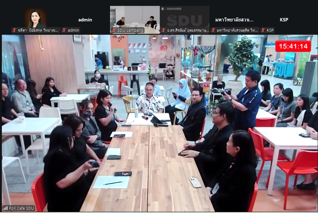 มหาวิทยาลัยสวนดุสิต วิทยาเขตสุพรรณบุรี เข้าร่วมกิจกรรม คุยสบายๆ … Life สาระ ครั้งที่ 399 หัวข้อ : ภาวะผู้นำและผู้ตาม ภายใต้แรงกดดันสูง: บทเรียนจากปฏิบัติการทางทหารและงานกู้ภัย พบกับวิทยากร นาวาตรี ดร.ฐาพล สมสกุล หัวหน้าฝ่ายบริหารงานบุคคล กอ.รมน.จังหวัดภูเก็ต โดยมีบุคลากรวิทยาเขตสุพรรณบุรี เข้าร่วมกิจกรรมผ่านระบบ Online โปรแกรม Zoom Meeting ในวันอังคารที่ 2 ธันวาคม 2568 เวลา 15.30 -16.30 น. ณ อาคารศูนย์การเรียนรู้ระบบใหม่โดยใช้เทคโนโลยีเป็นสื่อ (SDU Library) ชั้น 1 โซนกลาง มหาวิทยาลัยสวนดุสิต วิทยาเขตสุพรรณบุรี