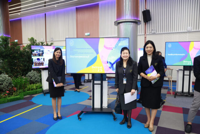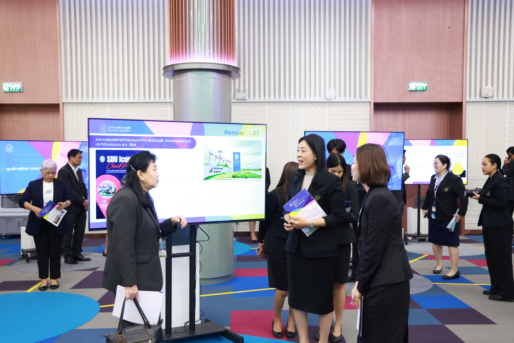 มหาวิทยาลัยสวนดุสิต วิทยาเขตสุพรรณบุรี นำโดย ดร.วรานี เวสสุนทรเทพ รองอธิการบดีฝ่ายวิทยาเขตสุพรรณบุรี และ นางกัณณ์อลิน สุอังคะวาทิน ผู้อำนวยการสำนักงานวิทยาเขตสุพรรณบุรี เข้าร่วม การประชุม Retreat ประจำปี 2568 โดย ผศ.ดร.พิทักษ์ จันทร์เจริญ อธิการบดีมหาวิทยาลัยสวนดุสิต กล่าวต้อนรับคณะกรรมการสภามหาวิทยาลัยสวนดุสิต ดร.ถนอม อินทรกำเนิด นายกสภามหาวิทยาลัยสวนดุสิต กล่าวถึงการประชุม Retreat ประจำปี 2568 จากนั้นคณะกรรมการสภามหาวิทยาลัยสวนดุสิต ชมนิทรรศการสวนดุสิตนิทรรศน์ แนวคิดและแผนงานสำคัญ สู่ความเป็นเลิศขององค์กร พ.ศ.2568 ของ 28 หน่วยงานของมหาวิทยาลัยสวนดุสิต และในภาคบ่ายคณะกรรมการสภามหาวิทยาลัย พร้อมด้วยคณะกรรมการบริหารมหาวิทยาลัยสวนดุสิต รับฟังความคิดเห็นและข้อเสนอแนะของผู้แทนนักศึกษา จากคณะ/โรงเรียน วิทยาเขต และศูนย์การศึกษา และต่อด้วยการอภิปรายความคิดเห็นและข้อเสนอแนะจากนักศึกษา โดยคณะกรรมการสภามหาวิทยาลัย ในส่วนผู้แทนนักศึกษา จากคณะ/โรงเรียน วิทยาเขต และศูนย์การศึกษา มหาวิทยาลัยสวนดุสิต ได้เข้าร่วมกิจกรรม Zip & Walk Suan Dusit University ณ อาคารเยาวภา ศาลหลวงปู่ชัยมงคล สำนักวิทยบริการและเทคโนโลยีสารสนเทศ One World Library และ Dusit Bistro & Co-Working Space โดยการประชุม Retreat มหาวิทยาลัยสวนดุสิต ประจำปี 2568 มีวัตถุประสงค์หลักเพื่อทบทวนผลการดำเนินงานของหน่วยงานต่างๆ พัฒนายุทธศาสตร์การบริหารจัดการให้มีประสิทธิภาพ และสร้างพื้นที่ในการแลกเปลี่ยนความคิดเห็นระหว่างผู้บริหารมหาวิทยาลัยและตัวแทนนักศึกษา เพื่อการพัฒนาการศึกษาที่ตอบโจทย์ความต้องการของผู้เรียนอย่างแท้จริง การจัดงานในครั้งนี้ถือเป็นก้าวสำคัญในการผนึกกำลังบุคลากรและนักศึกษา เพื่อขับเคลื่อนมหาวิทยาลัยสวนดุสิตให้ก้าวไปข้างหน้าอย่างสร้างสรรค์ มั่นคง และยั่งยืน โดยจัดขึ้นในวันที่ 17 ธันวาคม 2568 ณ หอประชุมรักตะกนิษฐ มหาวิทยาลัยสวนดุสิต