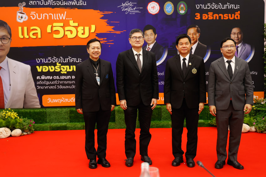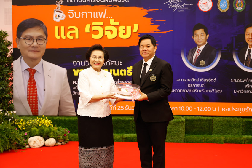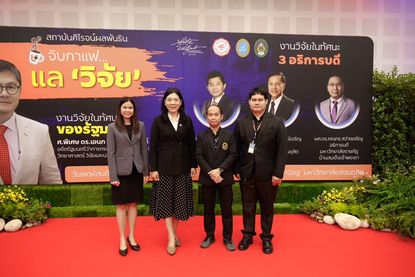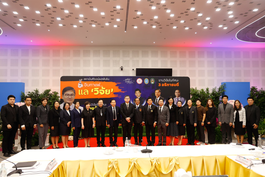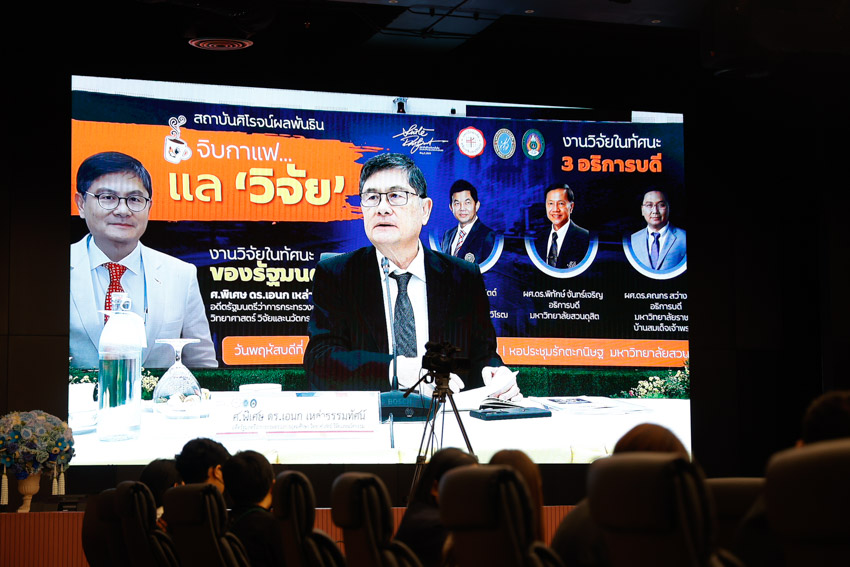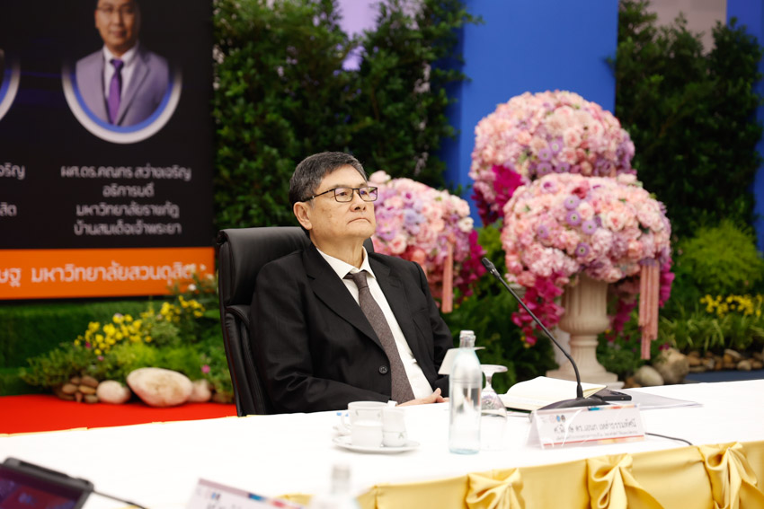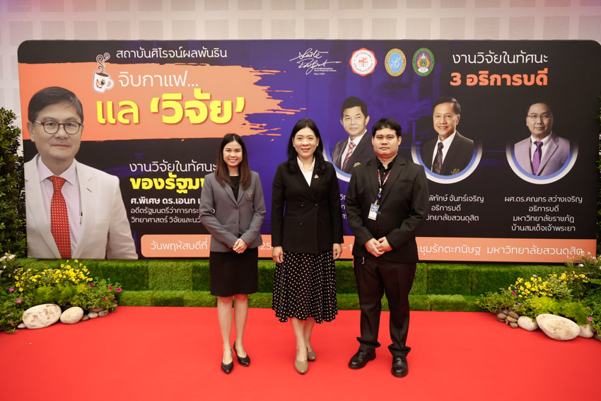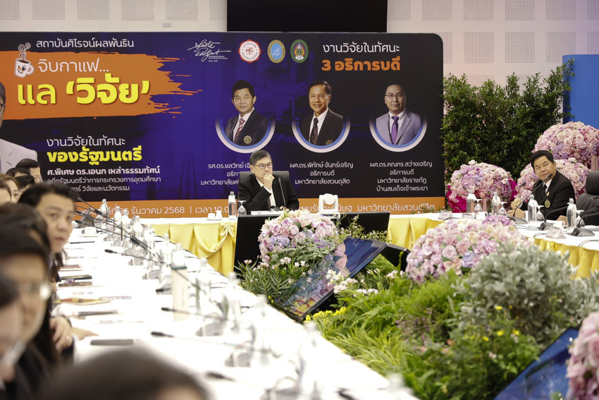 มหาวิทยาลัยสวนดุสิต วิทยาเขตสุพรรณบุรี นำโดย ดร.วรานี เวสสุนทรเทพ รองอธิการบดีฝ่ายวิทยาเขตสุพรรณบุรี พร้อมด้วย ผู้บริหารและบุคลากรฯ เข้าร่วมกิจกรรม จิบกาแฟ… แล “วิจัย” จัดโดย สถาบันศิโรจน์ผลพันธิน มหาวิทยาลัยสวนดุสิต โดยมี ศาสตราจารย์พิเศษ ดร.เอนก เหล่าธรรมทัศน์ บรรยายปาฐกถาพิเศษ เรื่อง “งานวิจัยในทัศนะรัฐมนตรี” และมีการเสวนาเรื่อง “งานวิจัยในทัศนะอธิการบดี” โดยอธิการบดี 3 สถาบัน ได้แก่ อธิการบดีมหาวิทยาลัยศรีนครินทรวิโรฒ อธิการบดีมหาวิทยาลัยสวนดุสิต และอธิการบดีมหาวิทยาลัยราชภัฏบ้านสมเด็จเจ้าพระยา ในวันพฤหัสบดีที่ 25 ธันวาคม 2568 เวลา 10.00-12.00 น. โดยวิทยาเขตสุพรรณบุรี เข้าร่วมกิจกรรมทั้งรูปแบบออนไลน์ และออนไซต์ ณ หอประชุมรักตะกนิษฐ มหาวิทยาลัยสวนดุสิต กรุงเทพมหานคร