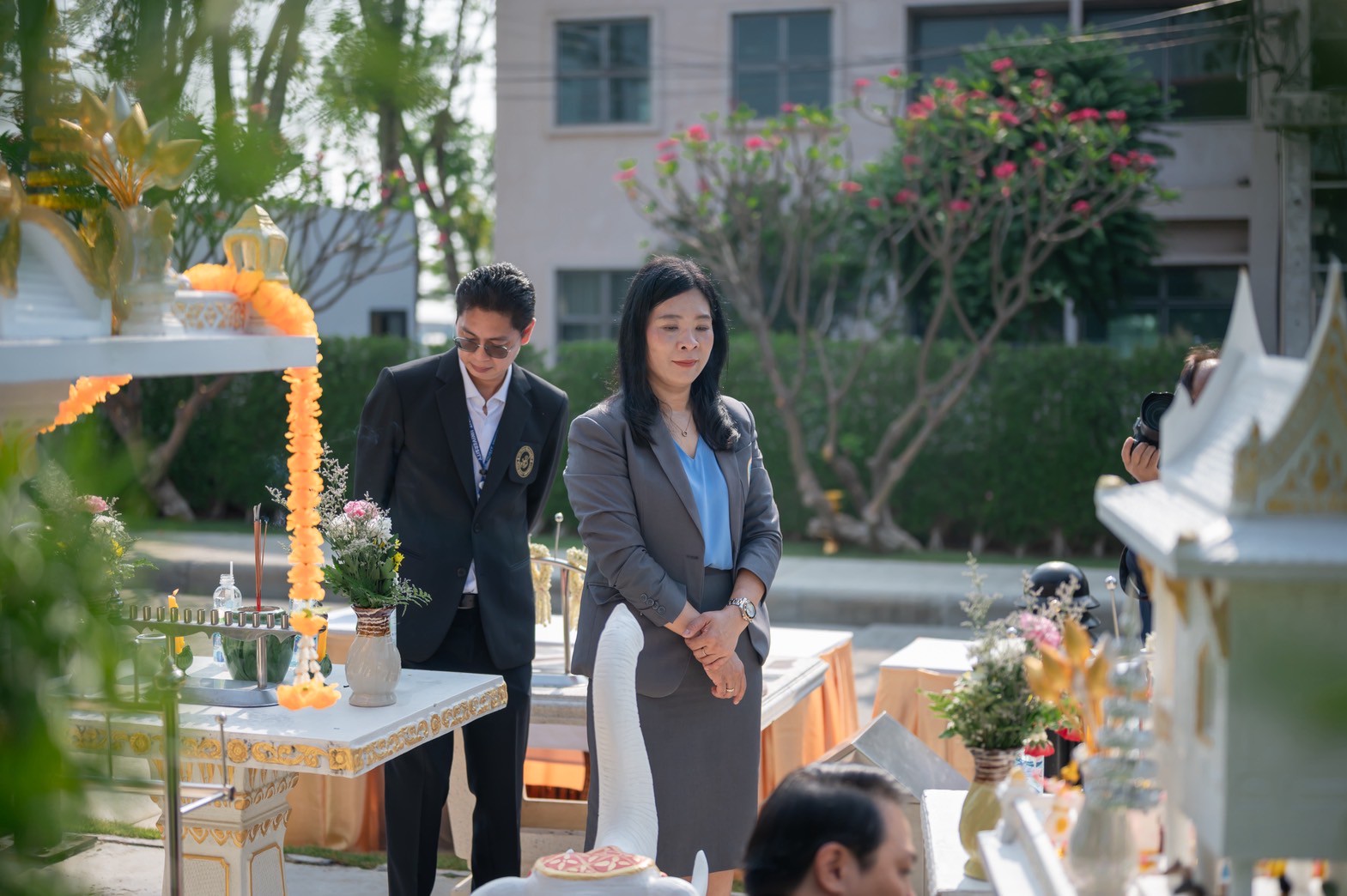 มหาวิทยาลัยสวนดุสิต วิทยาเขตสุพรรณบุรี นำโดย ดร.วรานี เวสสุนทรเทพ รองอธิการบดีฝ่ายวิทยาเขตสุพรรณบุรี พร้อมด้วย ผู้อำนวยการสำนักงานวิทยาเขตสุพรรณบุรี ผู้อำนวยการกองกลาง ผู้อำนวยการกองอาคารและสิ่งแวดล้อม ผู้อำนวยการกองบริการนักศึกษา และบุคลากรวิทยาเขตสุพรรณบุรี ให้การต้อนรับ ผู้ช่วยศาสตราจารย์ ดร.พิทักษ์ จันทร์เจริญ อธิการบดีมหาวิทยาลัยสวนดุสิต ในพิธีสักการะหลวงปู่ชัยมงคล และเปลี่ยนเครื่องบวงสรวง เนื่องในโอกาสมีพระบรมราชโองการโปรดเกล้าโปรดกระหม่อมแต่งตั้งดำรงตำแหน่ง อธิการบดีมหาวิทยาลัยสวนดุสิต ตั้งแต่วันที่ 20 มีนาคม 2568 ในวันพุธที่ 30 เมษายน 2568 เวลา 08.39 เป็นต้นไป ณ ศาลหลวงปูชัยมงคล มหาวิทยาลัยสวนดุสิต วิทยาเขตสุพรรณบุรี