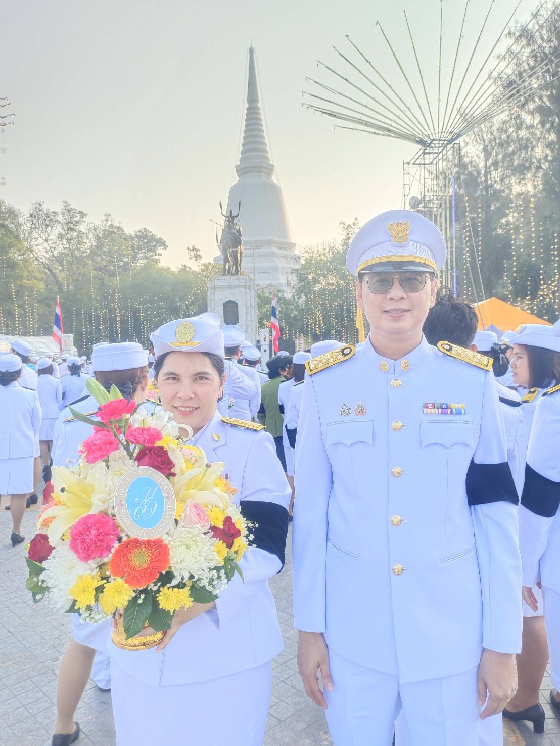 มหาวิทยาลัยสวนดุสิต วิทยาเขตสุพรรณบุรี โดย ดร.วรานี เวสสุนทรเทพ รองอธิการบดีฝ่ายวิทยาเขตสุพรรณบุรี มอบให้ นายปริญญา หนูนุรัตน์ ผู้อำนวยการกองอาคารและสิ่งแวดล้อม สำนักงานวิทยาเขตสุพรรณบุรี เข้าร่วมพิธีบวงสรวง และงานรัฐพิธีถวายราชสักการะสมเด็จพระนเรศวรมหาราช ประจำปี 2569 โดยมีนายณัฐพงษ์ สงวนจิตร ผู้ว่าราชการจังหวัดสุพรรณบุรี เป็นประธานในพิธีบวงสรวง จุดธูปเทียนถวายราชสักการะ คล้องพวงมาลัยพระแสงของ้าว/พวงมาลาพระคชาธาร และรับชมการแสดงตามประเพณี (การชนไก่ การแสดงรำดาบ และการรำเทพบันเทิง ถวายสมเด็จพระนเรศวรมหาราช) และร่วมพีธีวางพานพุ่มดอกไม้สด ถวายราชสักการะสมเด็กพระนเรศวรมหาราช พร้อมด้วยหัวหน้าส่วนราชการ เหล่ากาชาดจังหวัดสุพรรณบุรี หน่วยงานภาครัฐ และภาคเอกชน เข้าร่วมในพิธี ในวันอาทิตย์ที่ 18 มกราคม 2569 ณ เวทีแสดงศิลปวัฒนธรรม และสนามแสดงยุทธหัตถี พระบรมราชานุสรณ์ดอนเจดีย์ อำเภอดอนเจดีย์ จังหวัดสุพรรณบุรี