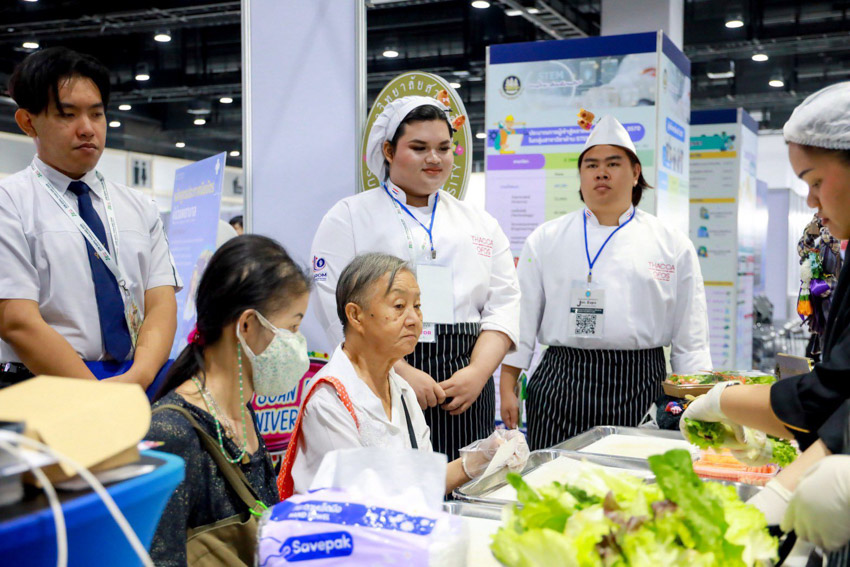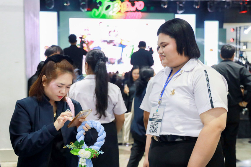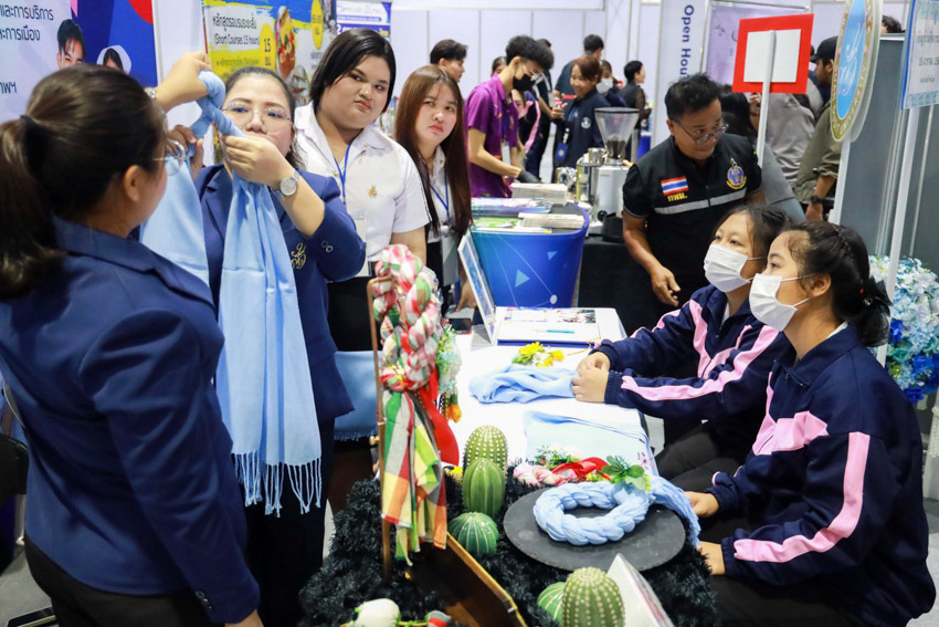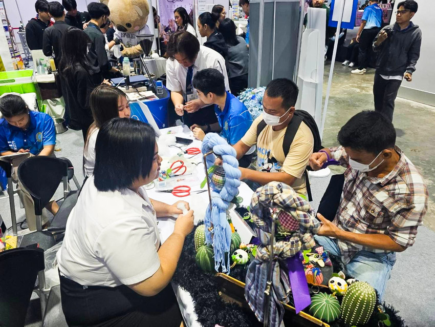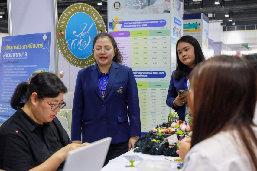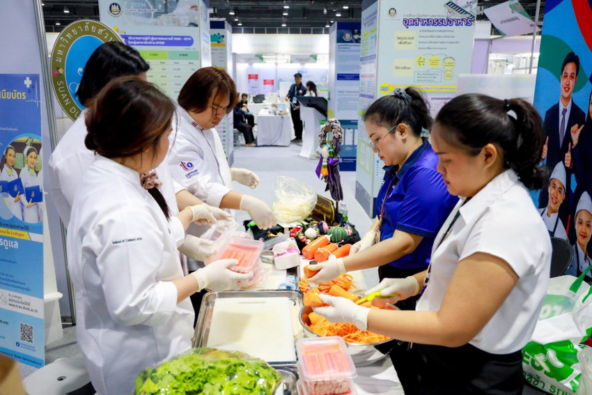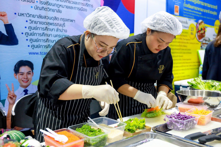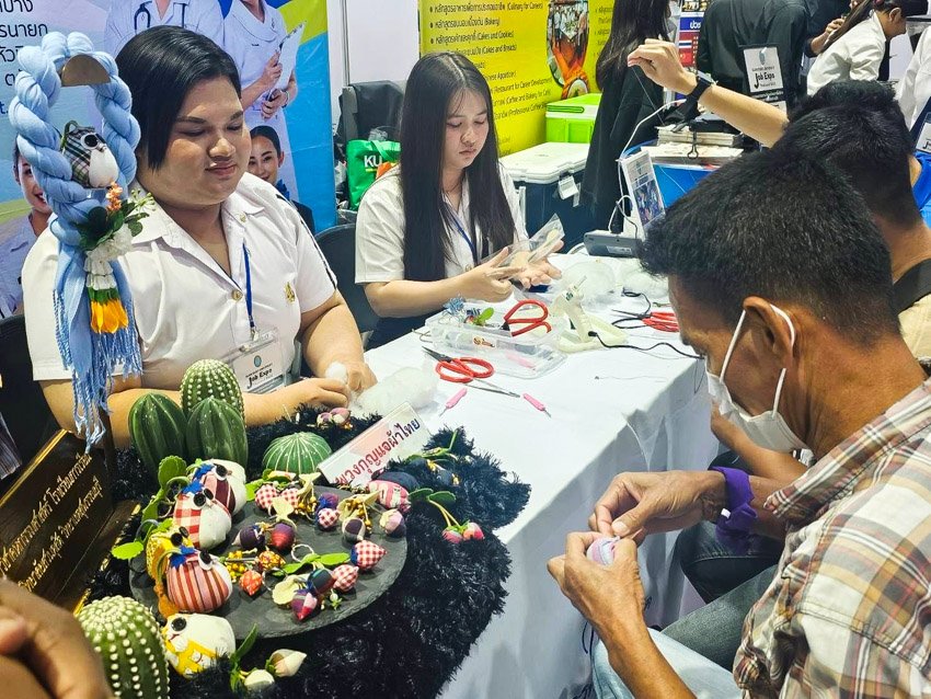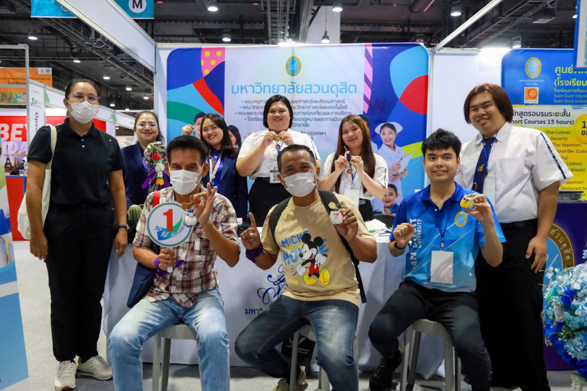 หลักสูตรศิลปศาสตรบัณฑิต สาขาวิชาคหกรรมศาสตร์ โรงเรียนการเรือน มหาวิทยาลัยสวนดุสิต วิทยาเขตสุพรรณบุรี ร่วมออกบูธ สาธิตการทำพวงมาลัยผ้าพันคอ พวงกุญแจผ้าไทย และสอนทำอาหาร สลัดโรล ภายในงาน JOB EXPO THAILAND 2026 ซึ่งจัดขึ้นระหว่างวันที่ 16–18 มกราคม 2569 เวลา 10.00–19.00 น. ณ ฮอลล์ 5–6 ชั้น LG ศูนย์การประชุมแห่งชาติสิริกิติ์ กรุงเทพมหานคร