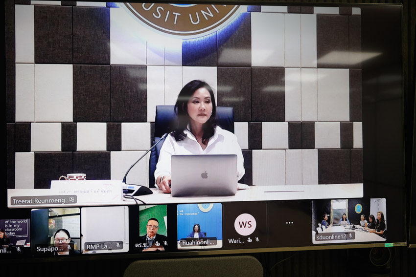 มหาวิทยาลัยสวนดุสิต วิทยาเขตสุพรรณบุรี โดย นางกัณณ์อลิน สุอังคะวาทิน ผู้อำนวยการสำนักงานวิทยาเขตสุพรรณบุรี และ ดร.วิณาภรณ์ แตงจุ้ย ผู้อำนวยการกองบริการนักศึกษา เข้าร่วมการประชุม คณะกรรมการการจัดการความรู้มหาวิทยาลัยสวนดุสิต  (Knowledge-Management  –  KM)  ของส่วนงาน/หน่วยงาน ครั้งที่ 1(8)/2569 โดยมี ผู้ช่วยศาสตราจารย์ ดร.พรชนิตว์ แก้วเนตร รองอธิการบดีฝ่ายวิชาการและกิจการต่างประเทศ เป็นประธานในที่ประชุม โดยคณะผู้บริหารวิทยาเขตสุพรรณบุรี เข้าร่วมการประชุมผ่านระบบ Online โปรแกรม MS TEAMS ในวันพุธที่ 21 มกราคม 2569 เวลา 13.30-15.00 น. ณ ห้องประชุม SDU Online 12 ชั้น 3 อาคารสวนแก้ว 2 มหาวิทยาลัยสวนดุสิต วิทยาเขตสุพรรณบุรี