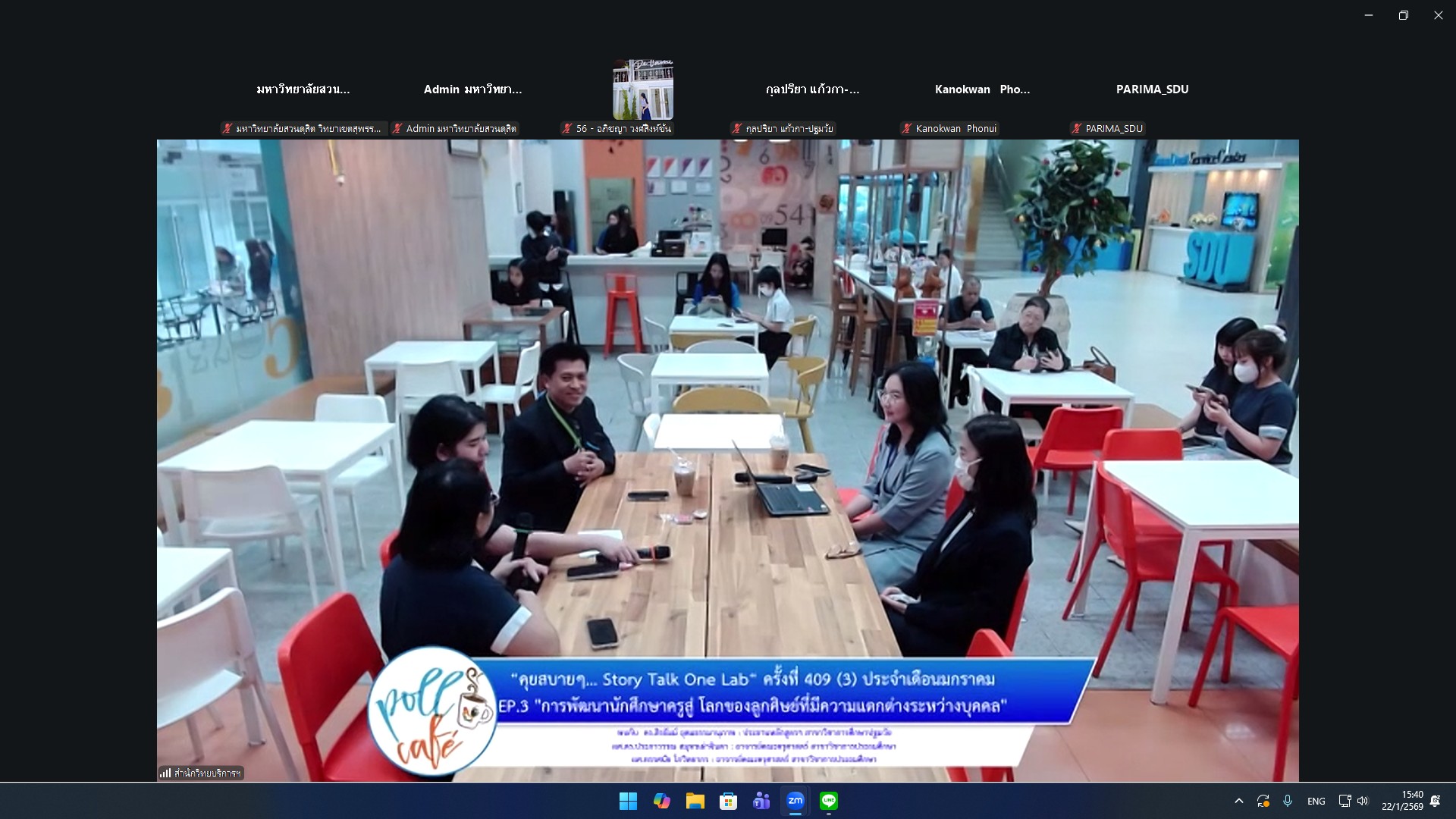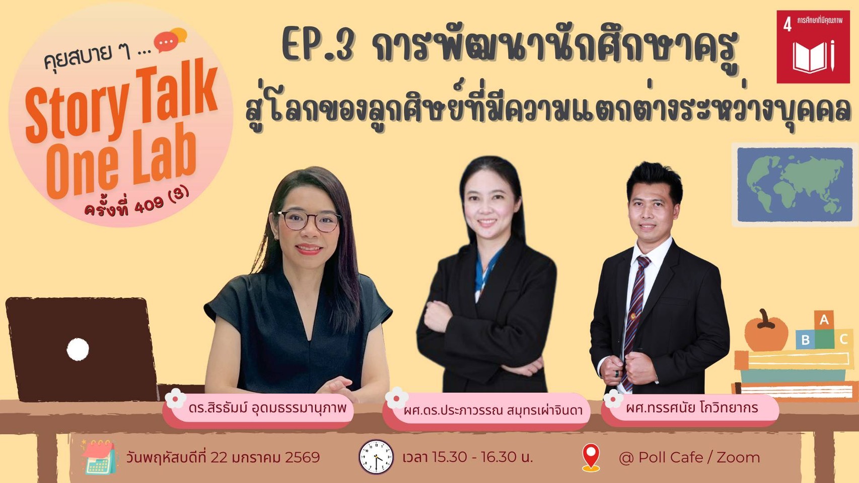 มหาวิทยาลัยสวนดุสิต วิทยาเขตสุพรรณบุรี เข้าร่วมกิจกรรม “คุยสบายๆ… Story Talk One Lab“ ครั้งที่ 409 (3) ประจำเดือนมกราคม Concept: “เปิดโลกความเท่าเทียมทางการศึกษา” กับคณะครุศาสตร์ มหาวิทยาลัยสวนดุสิต EP.3 “การพัฒนานักศึกษาครูสู่ โลกของลูกศิษย์ที่มีความแตกต่างระหว่างบุคคล” พบกับ – ดร.สิรธัมม์ อุดมธรรมานุภาพ : ประธานหลักสูตรฯ สาขาวิชาการศึกษาปฐมวัย – ผู้ช่วยศาสตราจารย์ ดร.ประภาวรรณ สมุทรเผ่าจินดา : อาจารย์คณะครุศาสตร์ สาขาวิชาการประถมศึกษา – ผู้ช่วยศาสตราจารย์ ทรรศนัย โกวิทยากร : อาจารย์คณะครุศาสตร์ สาขาวิชาการประถมศึกษา ซึ่งมีบุคลากรวิทยาเขตสุพรรณบุรี เข้าร่วมกิจกรรมผ่านระบบ Online โปรแกรม Zoom Meeting ในวันพฤหัสบดีที่ 22 มกราคม 2569 เวลา 15.30 -16.30 น. ณ อาคารศูนย์การเรียนรู้ระบบใหม่โดยใช้เทคโนโลยีเป็นสื่อ (SDU Library) ชั้น 1 โซนกลาง มหาวิทยาลัยสวนดุสิต วิทยาเขตสุพรรณบุรี
