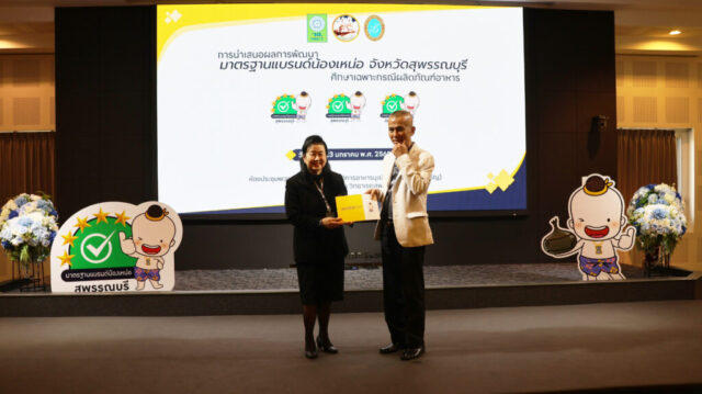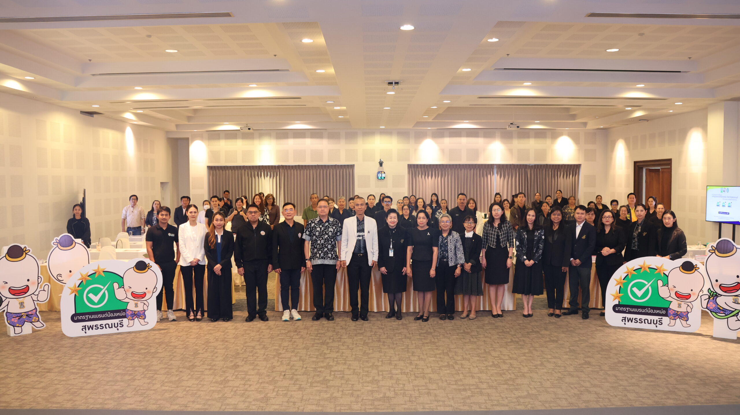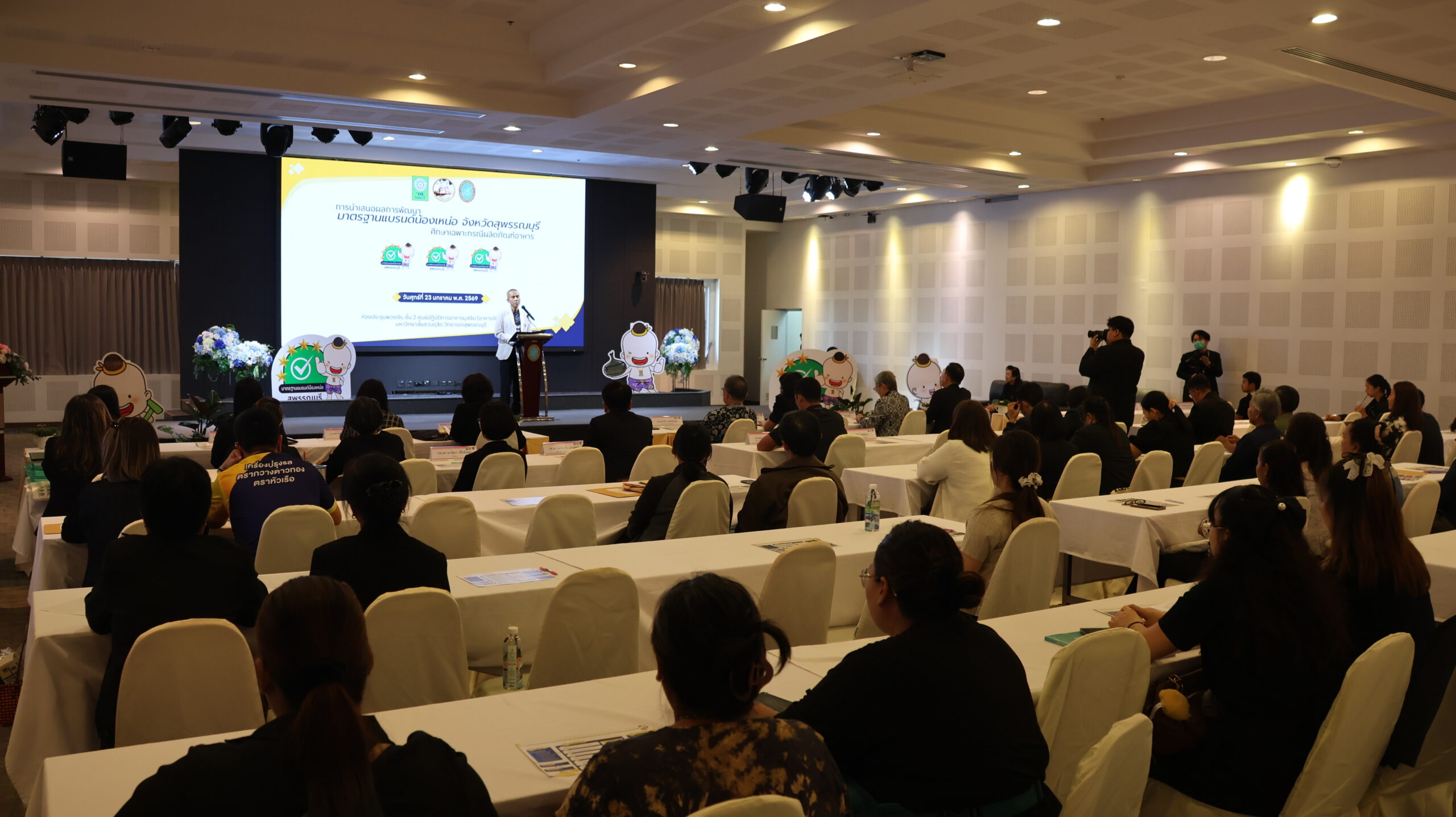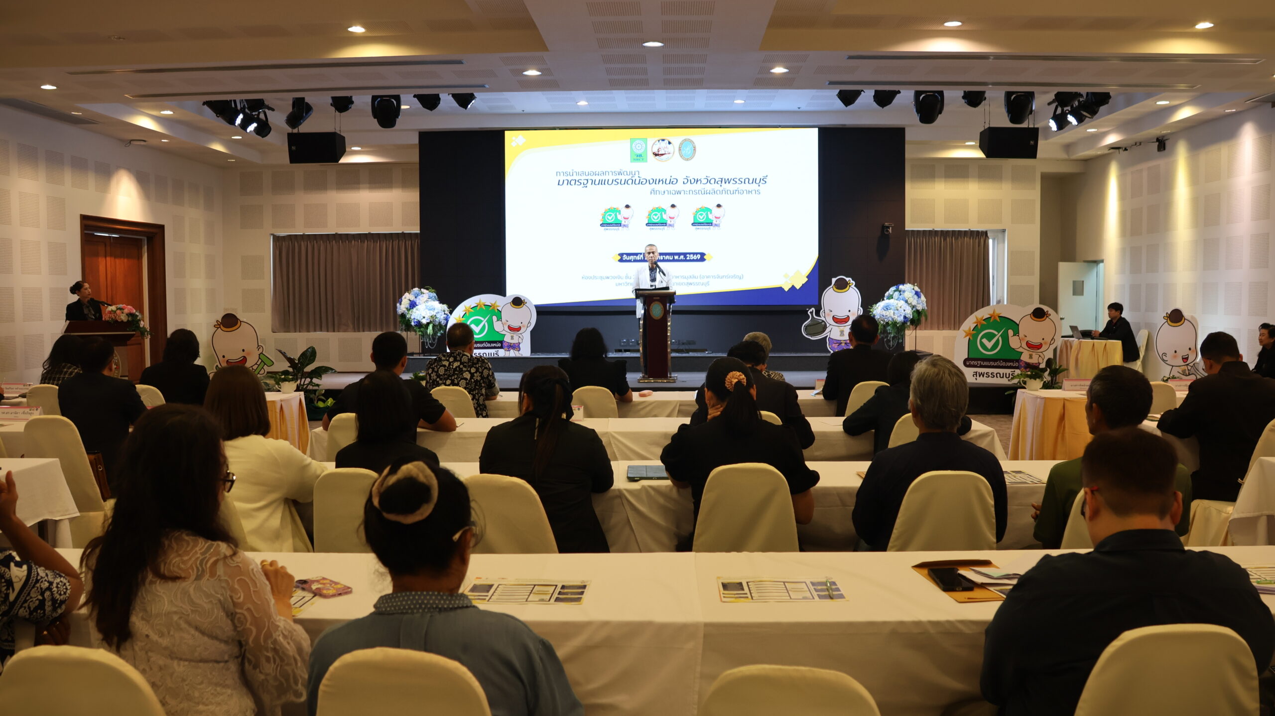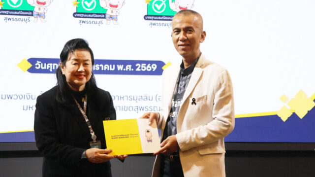 มหาวิทยาลัยสวนดุสิต วิทยาเขตสุพรรณบุรี โดย ดร.วรานี เวสสุนทรเทพ รองอธิการบดีฝ่ายวิทยาเขตสุพรรณบุรี ร่วมต้อนรับและกล่าวเปิดกิจกรรมการนำเสนอการพัฒนามาตรฐานแบรนด์น้องเหน่อ จังหวัดสุพรรณบุรี (ศึกษาเฉพาะกรณีผลิตภัณฑ์อาหาร) โดยมี นายณัฐพงษ์ สงวนจิตร ผู้ว่าราชการจังหวัดสุพรรณบุรี มอบนโยบายในภาพรวมยุทธศาสตร์ด้านผลิตภัณฑ์อาหาร จังหวัดสุพรรณบุรี และ ผู้ช่วยศาสตราจารย์ ดร.ปรียนันท์ ประยูรศักดิ์ คณบดีคณะวิทยาการจัดการ หัวหน้าโครงการวิจัยและทีมงาน กล่าวแนะนำโครงการวิจัย โดยในกิจกรรม การเสวนา “เกณฑ์มาตรฐานอาหารแบรนด์น้องเหน่อสู่การขับเคลื่อนอาหารปลอดภัย จังหวัดสุพรรณบุรี” โดย – เกษตรและสหกรณ์จังหวัดสุพรรณบุรี – พาณิชย์จังหวัดสุพรรณบุรี – คุณวีระ ตั้งวุทฒิไกรวิทย์ ประธานหอการค้าจังหวัดสุพรรณบุรี คุณทิพย์เนตร แฉล้ม ตัวแทนจากกลุ่มผู้ประกอบการรุ่นใหม่ YEC สุพรรณบุรีหอการค้าจังหวัดสุพรรณบุรี ดำเนินการเสวนา โดย ผู้ช่วยศาสตราจารย์ ดร.กฤษณพร ประสิทธิ์วิเศษ และ กิจกรรมเชิญชวนเข้าร่วมการยื่นขอรับรองมาตรฐานผลิตภัณฑ์อาหาร แบรนด์น้องเหน่อ ในวันศุกร์ที่ 23 มกราคม 2569 เวลา 13.00-16.00 น. ณ ห้องประชุมพวงเงิน ชั้น 2 ศูนย์ปฏิบัติการอาหารมุสลิม (อาคารจันทร์เจริญ) มหาวิทยาลัยสวนดุสิต วิทยาเขตสุพรรณบุรี
