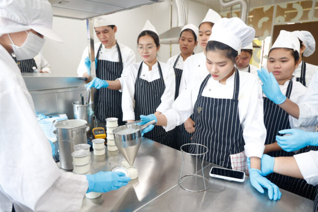 โครงการปฏิบัติการอาหารแปรรูป มหาวิทยาลัยสวนดุสิต วิทยาเขตสุพรรณบุรี จัดการสอนภาคทฤษฎีและภาคปฏิบัติการ : การผลิตเนยแข็งและโยเกิร์ต ให้แก่นักศึกษาสาขาวิชาหคกรรมศาสตร์ ชั้นปีที่ 2 และชั้นปีที่ 3 โดยมี ผู้ช่วยศาสตราจารย์ ดร.ศวรรญา ปั่นดลสุข รองผู้จัดการโครงการปฏิบัติการอาหารแปรรูป เป็นวิทยากรในการเรียนการสอน และ ดร.ณัชฌา พันธุ์วงษ์ อาจารย์สาขาวิชาคหกรรมศาสตร์ เป็นผู้ควบคุมดูแลความเรียบร้อยในการดำเนินการเรียนการสอน ในวันอังคารที่ 27 มกราคม 2569 เวลา 09.00-12.00 น. ณ ศูนย์การเรียนรู้วิทยาการอาหาร (More Cheese) มหาวิทยาลัยสวนดุสิต วิทยาเขตสุพรรณบุรี