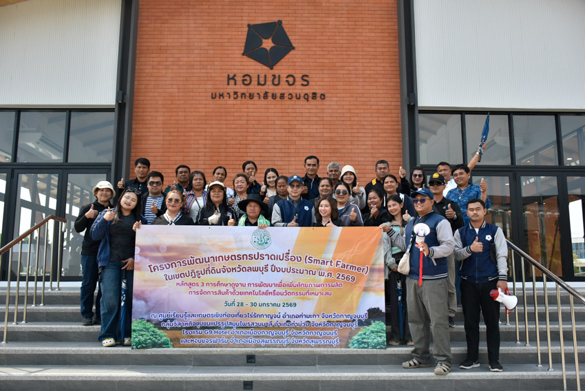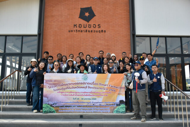 สำนักนวัตกรรมชุมชน (ศูนย์ประสานงานโครงการอนุรักษ์พันธุกรรมพืชอันเนื่องมาจากพระราชดำริฯ-มหาวิทยาลัยสวนดุสิต) และหอมขจรฟาร์ม นำโดย รองศาสตราจารย์ ดร.รุ่งเกียรติ แก้วเพชร รองผู้อำนวยการสำนักนวัตกรรมชุมชน และทีมงานฯ ให้การต้อนรับคณะศึกษาดูงานจากสำนักงานปฏิรูปที่ดินจังหวัดลพบุรี (สปก.ลพบุรี) โครงการพัฒนาเกษตรกรปราดเปรื่อง (Smart Farmer) ในเขตปฏิรูปที่ดิน จังหวัดลพบุรี จำนวน 30 คน ภายใต้หลักสูตร การพัฒนาเพื่อเพิ่มศักยภาพการผลิตการจัดการสินค้าโดยเทคโนโลยีหรือนวัตกรรมที่เหมาะสม ในวันศุกร์ที่ 30 มกราคม 2569 เวลา 09.00-12.00 น. ณ อาคารศูนย์การถ่ายทอดเทคโนโลยีการเกษตรปลอดภัยเพื่อขับเคลื่อนเศรษฐกิจฐานราก (หอมขจร) มหาวิทยาลัยสวนดุสิต วิทยาเขตสุพรรณบุรี