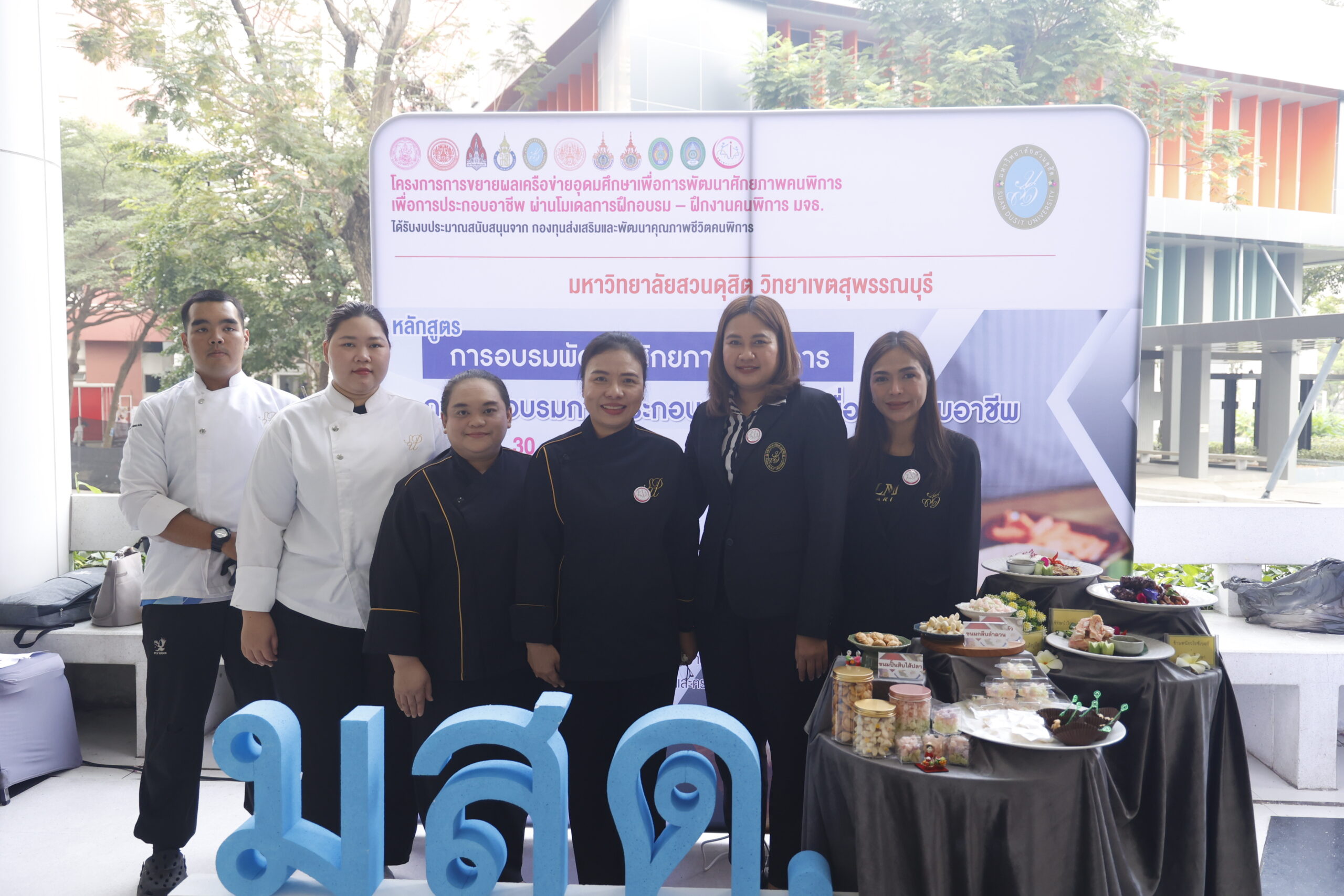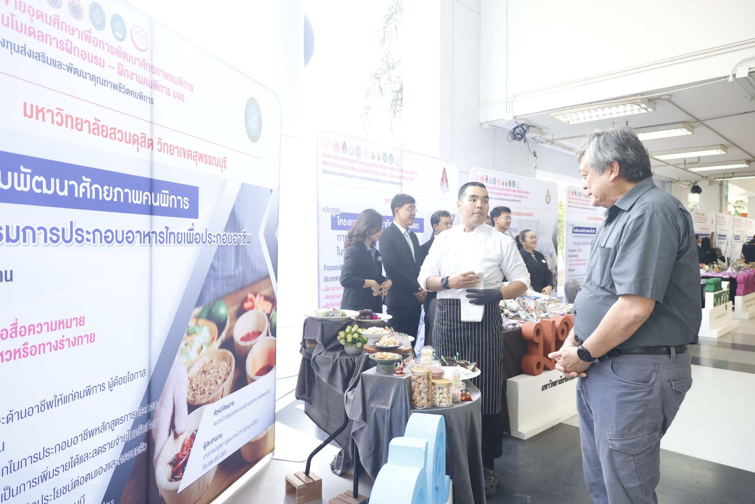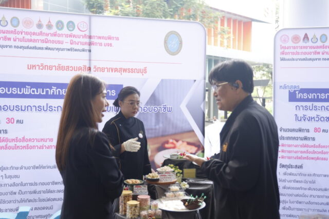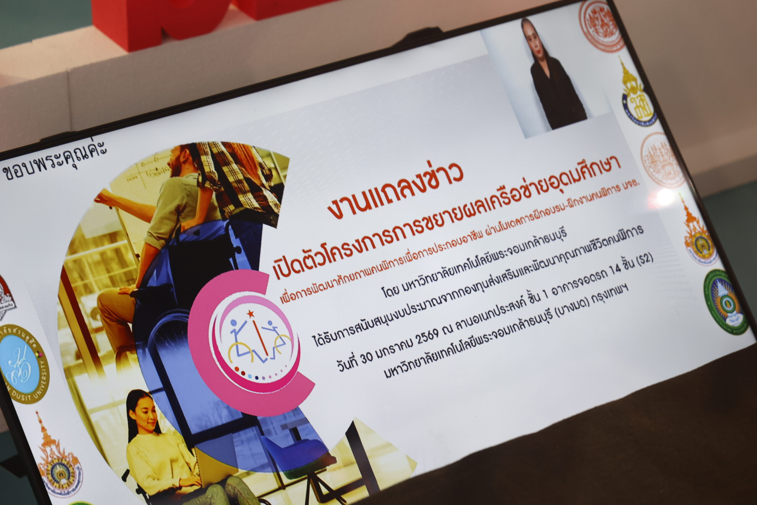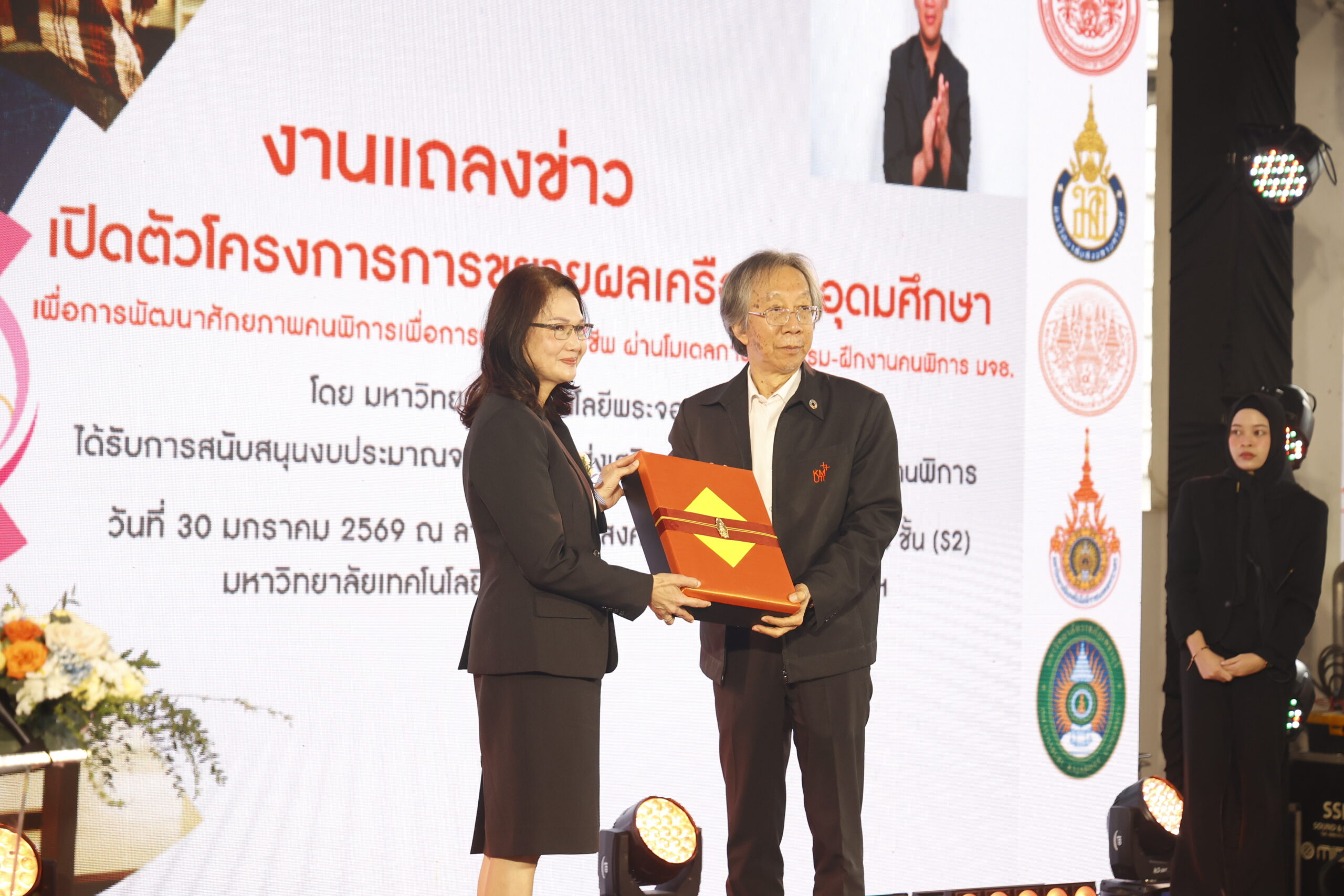 มหาวิทยาลัยสวนดุสิต วิทยาเขตสุพรรณบุรี โดย ดร.วรานี เวสสุนทรเทพ รองอธิการบดีฝ่ายวิทยาเขตสุพรรณบุรี มอบให้ นางสาวจุฑารัตน์ จิ๋วสง่า ผู้อำนวยการกองกลาง สำนักงานวิทยาเขตสุพรรณบุรี เป็นตัวแทนเข้าร่วมงานแถลงข่าวเปิดตัวโครงการการขยายผลเครือข่ายอุดมศึกษา เพื่อการพัฒนาศักยภาพคนพิการเพื่อการประกอบอาชีพ ผ่านโมเดลการฝึกอบรม-ฝึกงานคนพิการ มจธ. โดย มหาวิทยาลัยเทคโนโลยีพระจอมเกล้าธนบุรี ได้รับการสนับสนุนงบประมาณจากกองทุนส่งเสริมและพัฒนาคุณภาพชีวิตคนพิการ ซึ่งได้รับเกียรติจาก นางสาวสนธยา บุณยภูษิต อธิบดีกรมส่งเสริมและพัฒนาคุณภาพชีวิตคนพิการ เป็นประธานในงานแถลงข่าว และร่วมเยี่ยมชมบูธแสดงผลงานของเครือข่ายสถาบันอุดมศึกษาและหน่วยงานพันธมิตร ในวันศุกร์ที่ 30 มกราคม 2569 เวลา 09.00-13.00 น. ณ ลานอนกประสงค์ ชั้น 1 อาคารจอดรถ 14 ชั้น (S2) มหาวิทยาลัยเทคโนโลยีพระจอมเกล้าธนบุรี (บางมด) กรุงเทพฯ