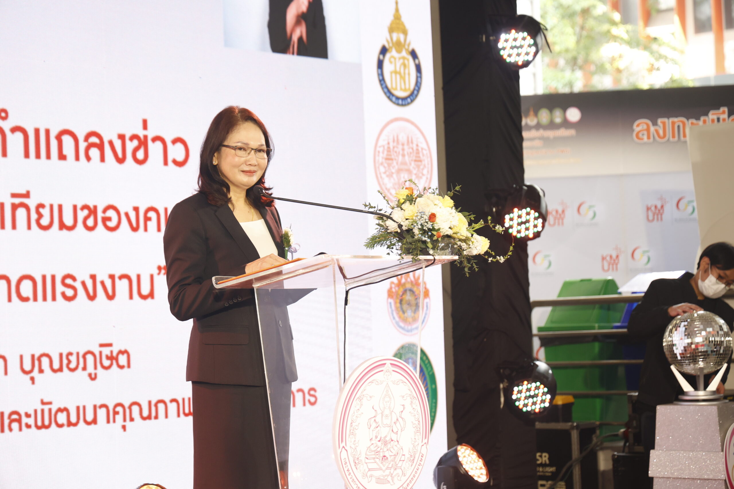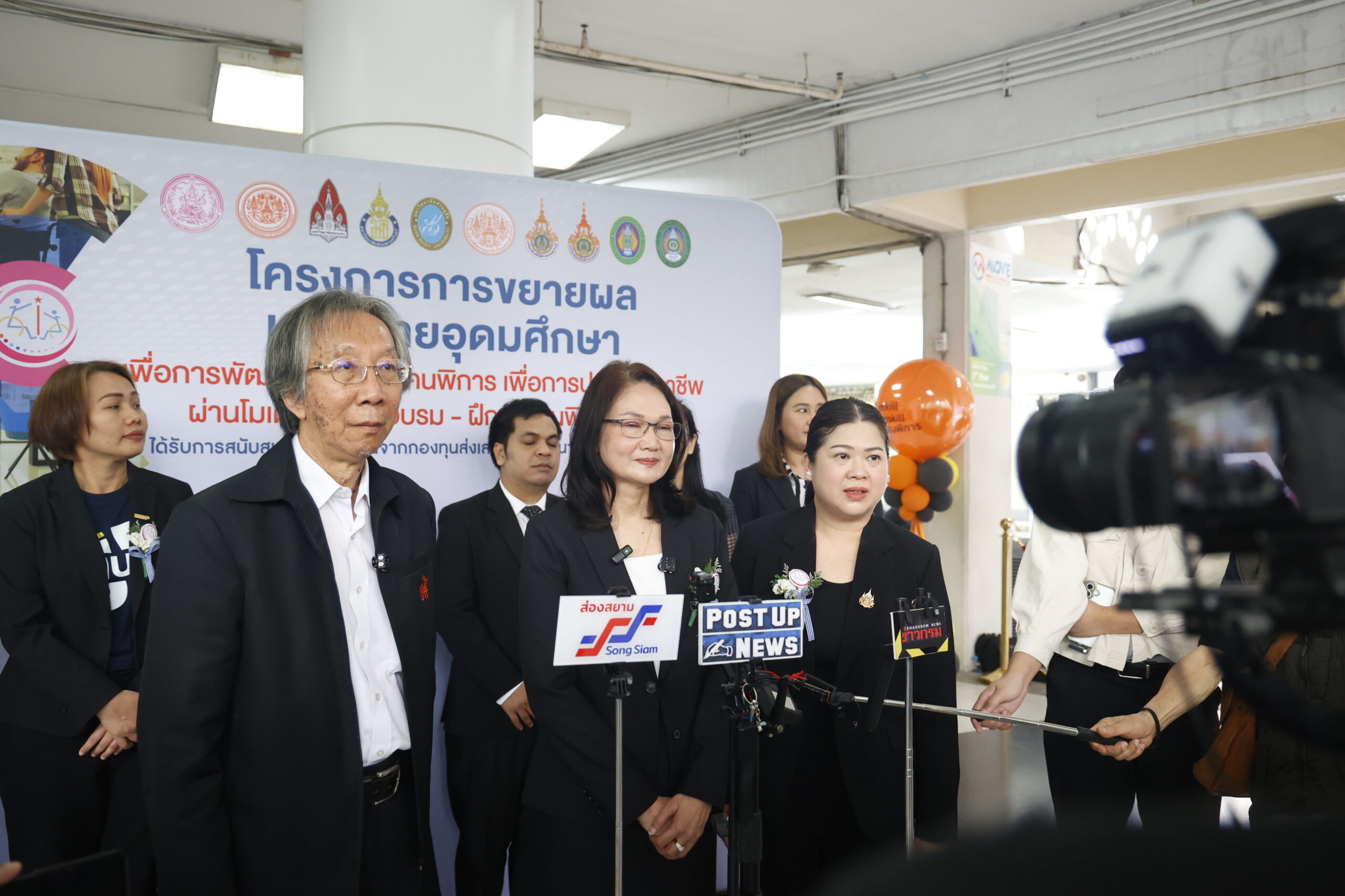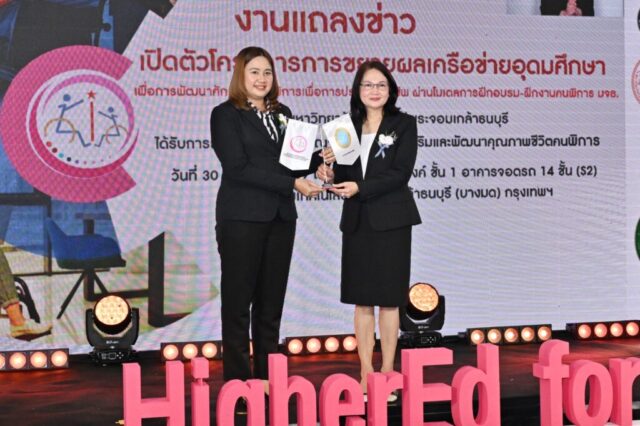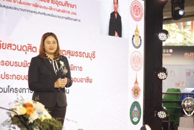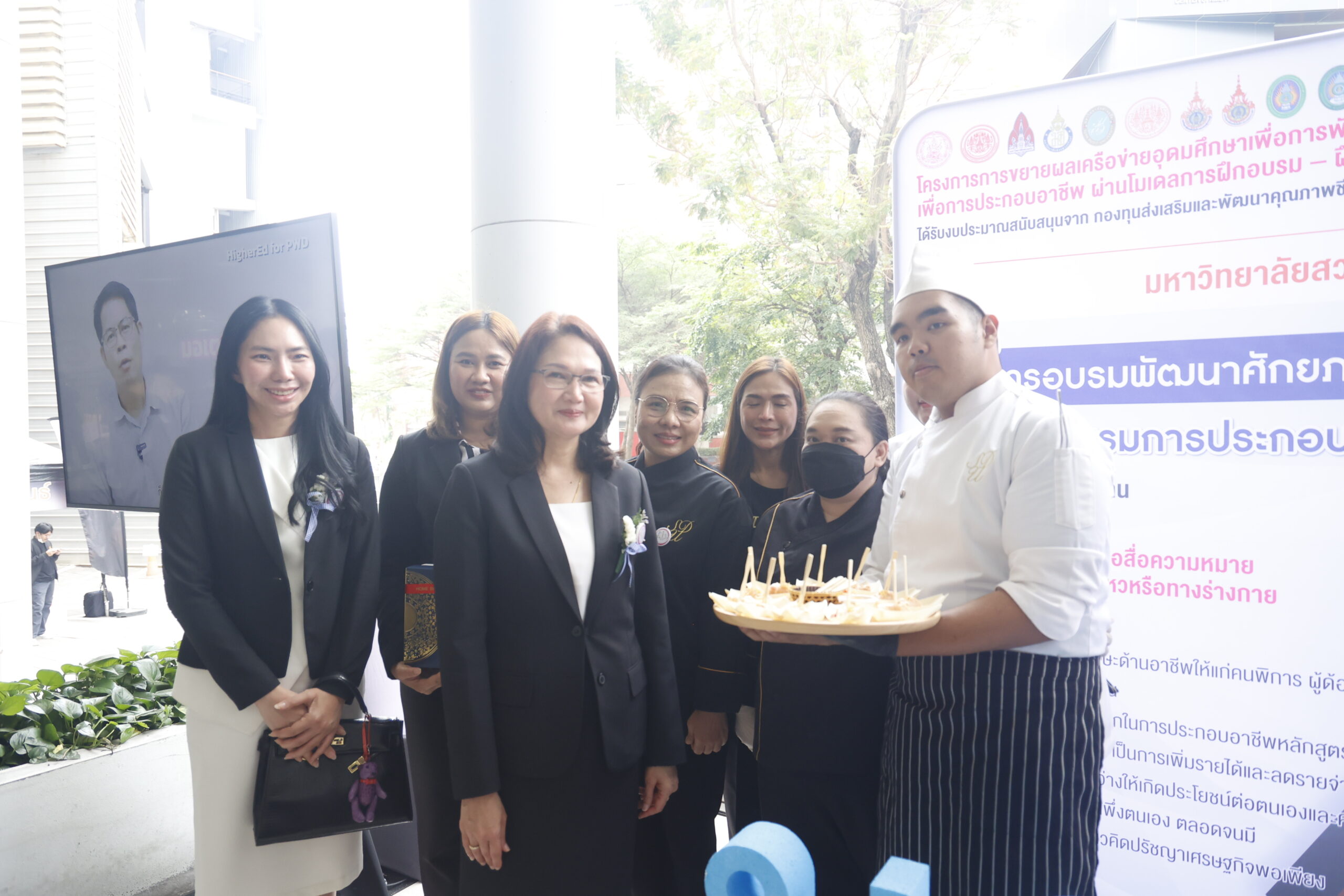 มหาวิทยาลัยสวนดุสิต วิทยาเขตสุพรรณบุรี โดย ดร.วรานี เวสสุนทรเทพ รองอธิการบดีฝ่ายวิทยาเขตสุพรรณบุรี มอบให้ นางสาวจุฑารัตน์ จิ๋วสง่า ผู้อำนวยการกองกลาง สำนักงานวิทยาเขตสุพรรณบุรี เป็นตัวแทนเข้าร่วมงานแถลงข่าวเปิดตัวโครงการการขยายผลเครือข่ายอุดมศึกษา เพื่อการพัฒนาศักยภาพคนพิการเพื่อการประกอบอาชีพ ผ่านโมเดลการฝึกอบรม-ฝึกงานคนพิการ มจธ. โดย มหาวิทยาลัยเทคโนโลยีพระจอมเกล้าธนบุรี ได้รับการสนับสนุนงบประมาณจากกองทุนส่งเสริมและพัฒนาคุณภาพชีวิตคนพิการ ซึ่งได้รับเกียรติจาก นางสาวสนธยา บุณยภูษิต อธิบดีกรมส่งเสริมและพัฒนาคุณภาพชีวิตคนพิการ เป็นประธานในงานแถลงข่าว และร่วมเยี่ยมชมบูธแสดงผลงานของเครือข่ายสถาบันอุดมศึกษาและหน่วยงานพันธมิตร ในวันศุกร์ที่ 30 มกราคม 2569 เวลา 09.00-13.00 น. ณ ลานอนกประสงค์ ชั้น 1 อาคารจอดรถ 14 ชั้น (S2) มหาวิทยาลัยเทคโนโลยีพระจอมเกล้าธนบุรี (บางมด) กรุงเทพฯ