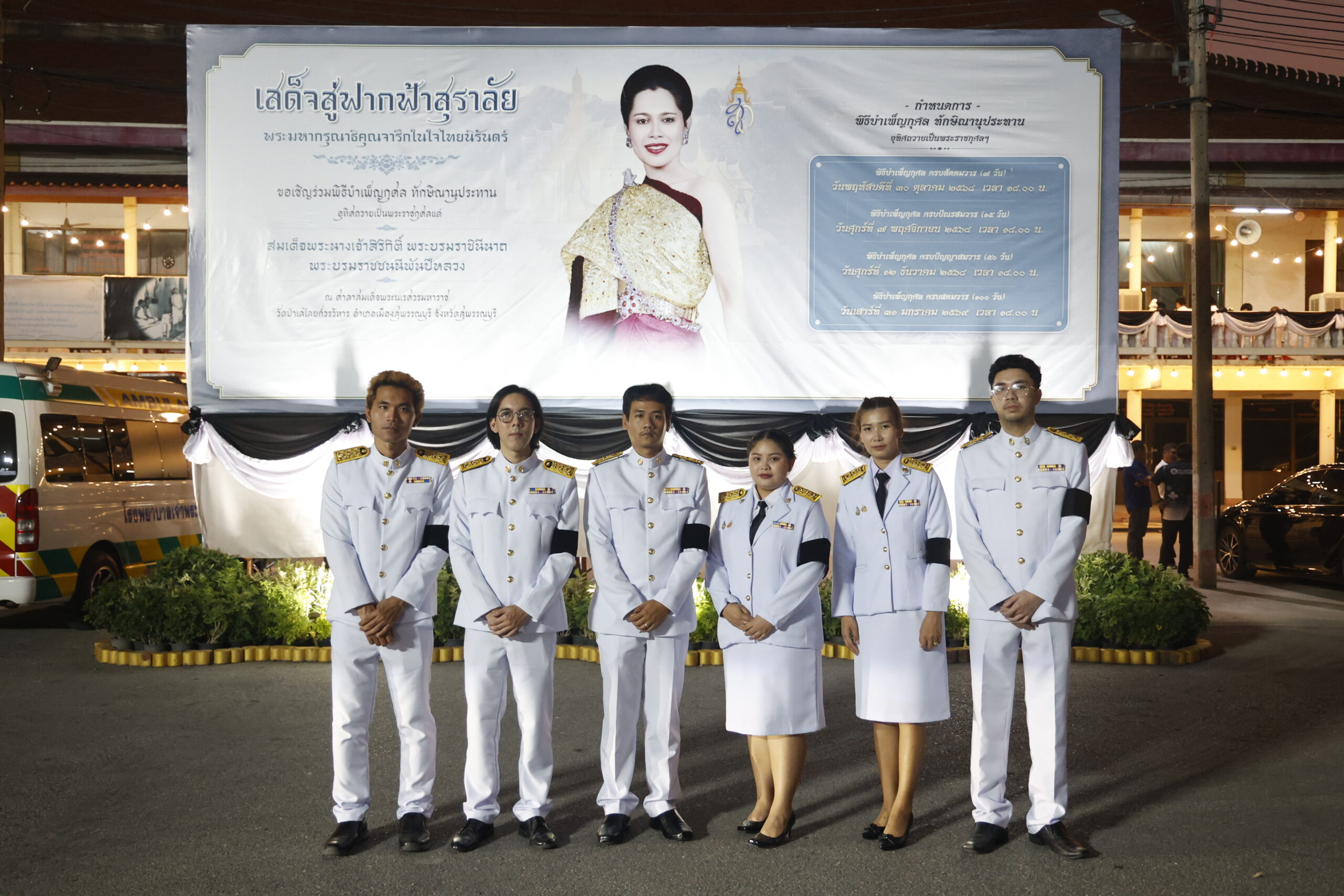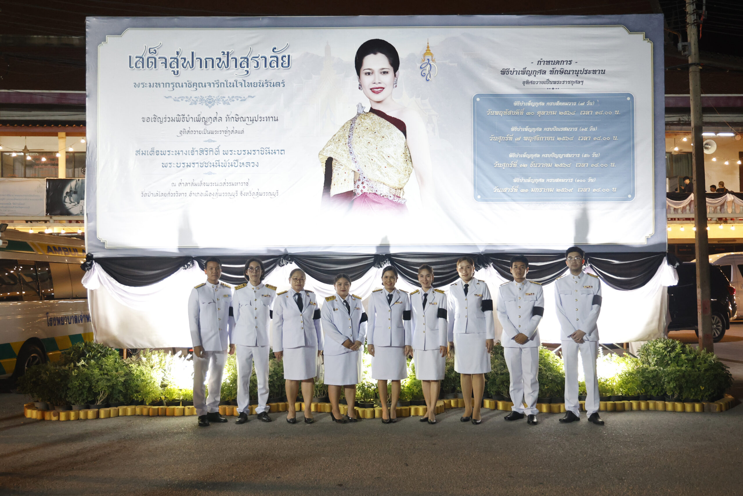มหาวิทยาลัยสวนดุสิต วิทยาเขตสุพรรณบุรี โดย ดร.วรานี เวสสุนทรเทพ รองอธิการบดีฝ่ายวิทยาเขตสุพรรณบุรี มอบให้ ดร.วิณาภรณ์ แตงจุ้ย ผู้อำนวยการกองบริการนักศึกษา สังกัดวิทยาเขตสุพรรณบุรี นำบุคลาการในสังกัดกองฯ เข้าร่วมพิธีบำเพ็ญกุศล เพื่ออุทิศถวายพระราชกุศลแด่ สมเด็จพระนางเจ้าสิริกิติ์ พระบรมราชินีนาถ พระบรมราชชนนีพันปีหลวง เสด็จสวรรคต ครบสตมวาร (100 วัน) โดยมี นายณัฐพงษ์ สงวนจิตร ผู้ว่าราชการจังหวัดสุพรรณบุรี เป็นประธานในพิธี ในวันเสาร์ที่ 31 มกราคม 2569 เวลา 16.30-20.00 น. ณ ศาลาสมเด็จพระนเรศวรมหาราช วัดป่าเลไลยก์วรวิหาร ตำบลรั้วใหญ่ อำเภอเมืองสุพรรณบุรี จังหวัดสุพรรณบุรี