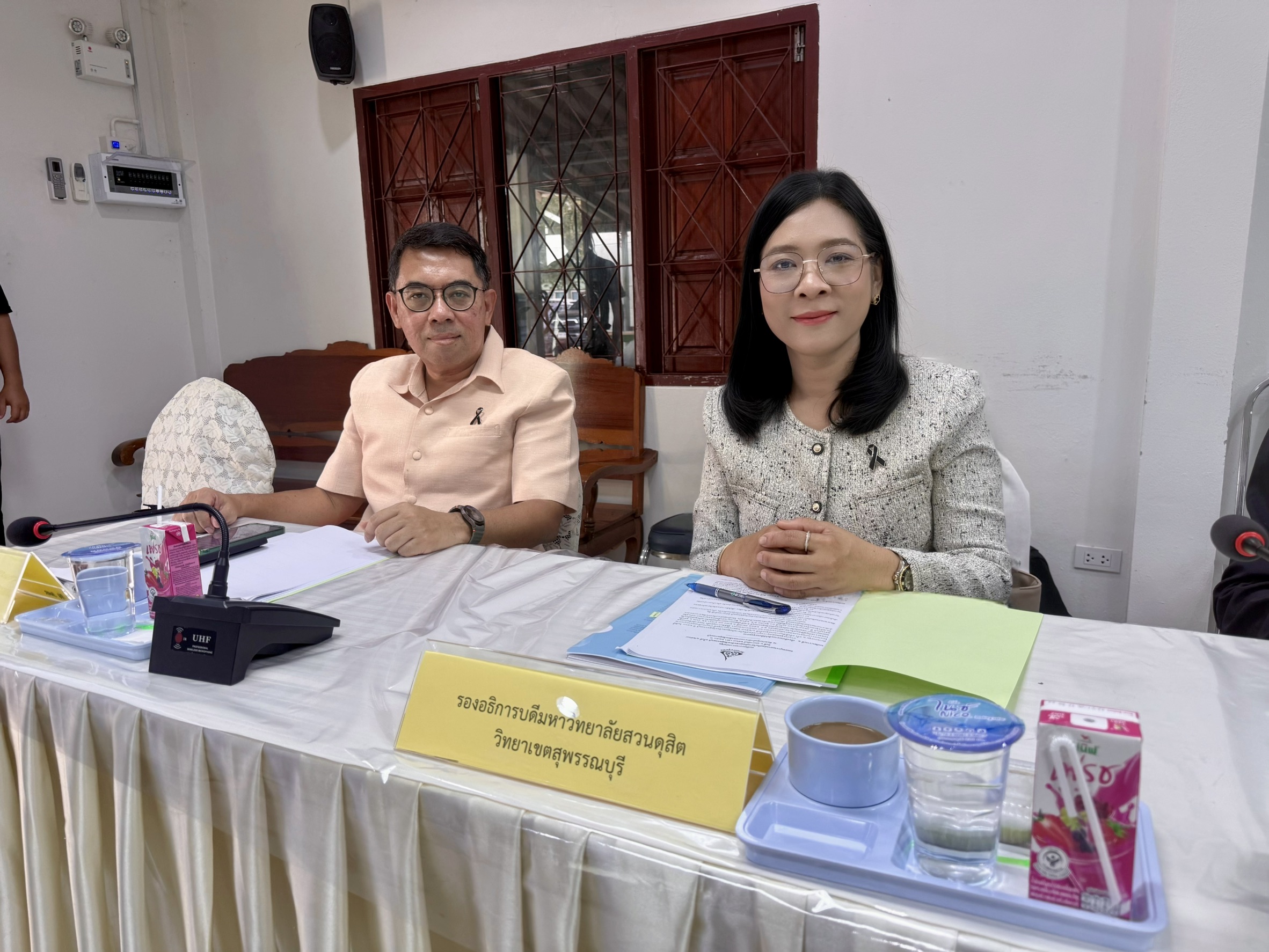 มหาวิทยาลัยสวนดุสิต วิทยาเขตสุพรรณบุรี นำโดย นางกัณณ์อลิน สุอังคะวาทิน ผู้อำนวยการสำนักงานวิทยาเขตสุพรรณบุรี เข้าร่วมประชุมคณะอนุกรรมการส่งเสริมวิสาหกิจชุมชนจังหวัดสุพรรณบุรี ครั้งที่ 1/2569 เพื่อให้การดำเนินงานส่งเสริมวิสาหกิจชุมชนจังหวัดสุพรรณบุรี ร่วมกันวางแผนพัฒนาและส่งเสริมวิสาหกิจชุมชนของจังหวัด โดยให้หัวหน้าส่วนราชการที่เข้าร่วมประชุมนำเสนอแผน/ผลการดำเนินงาน การส่งเสริมและสนับสนุนวิสาหกิจชุมชน ประจำปีงบประมาณ พ.ศ. 2569 โดยมีคุณพจนา เสมา เกษตรและสหกรณ์จังหวัดสุพรรณบุรี เป็นประธานคณะอนุกรรมการในการจัดประชุมดังกล่าว ในวันศุกร์ที่ 6 กุมภาพันธ์ 2569 เวลา 13.30 – 16.30 น. ณ ห้องประชุมสำนักงานเกษตรจังหวัดสุพรรณบุรี