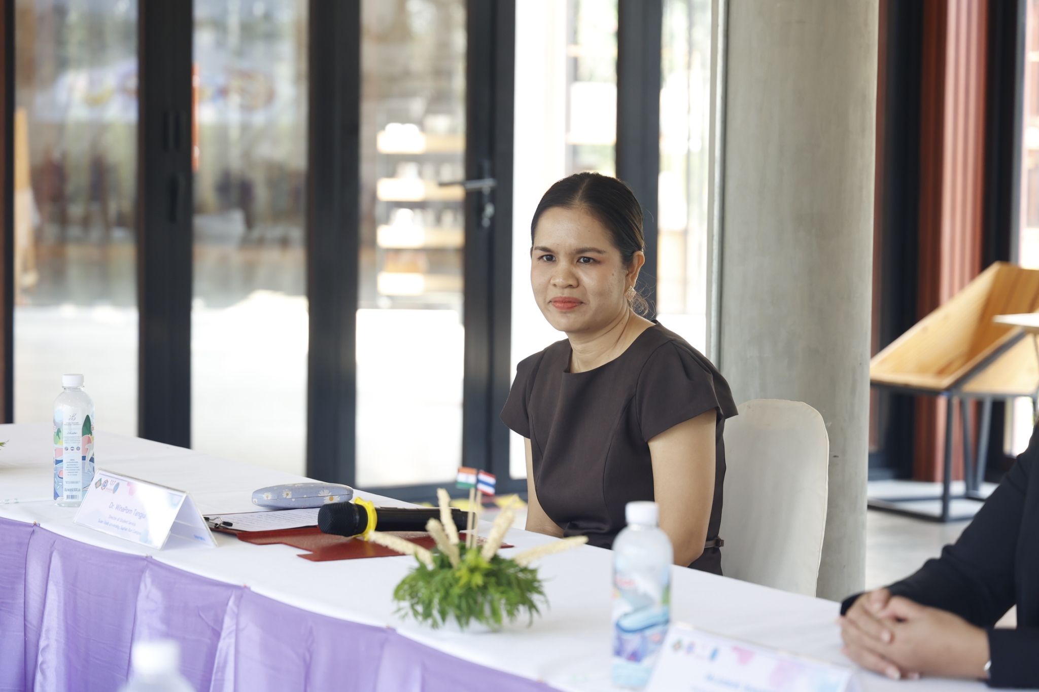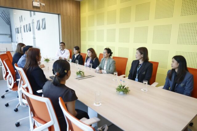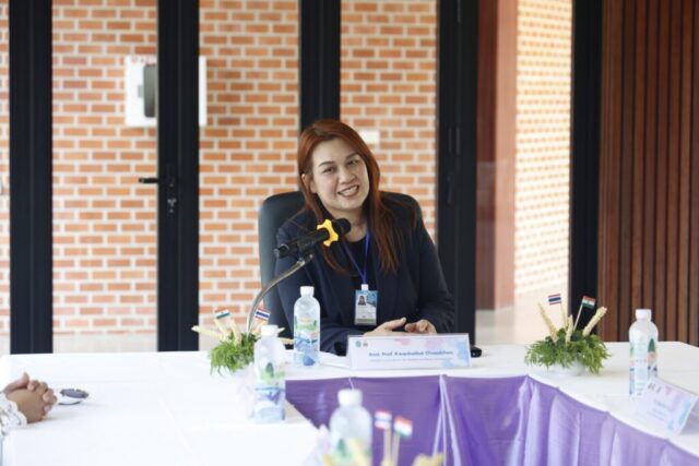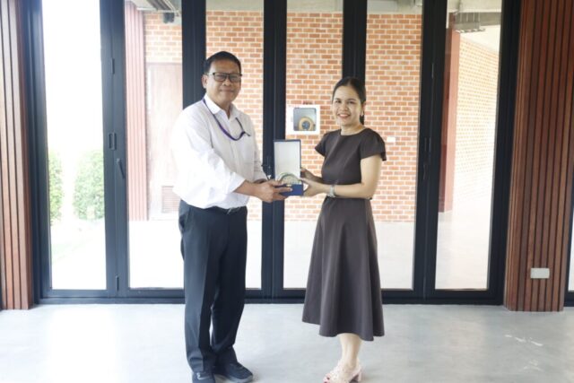 มหาวิทยาลัยสวนดุสิต วิทยาเขตสุพรรณบุรี นำโดย ดร.วิณาภรณ์ แตงจุ้ย ผู้อำนวยการกองบริการนักศึกษา เเละนางสาวจุฑารัตน์ จิ๋วสง่า ผู้อำนวยการกองกลาง สำนักงานวิทยาเขตสุพรรณบุรี พร้อมบุคลากรฯ ร่วมให้การต้อนรับ คณะผู้บริหาร Pitambara English School (PES) สาธารณรัฐอินเดีย และผู้บริหารจาก มหาวิทยาลัยราชภัฎสุรินทร์ ในการเข้าเยี่ยมชมและศึกษาดูงานหน่วยงานต่างๆ ภายในวิทยาเขตฯ อาทิ อาคารศูนย์การเรียนรู้ระบบใหม่โดยใช้เทคโนโลยีเป็นสื่อ, โรงเรียนสาธิตละอออุทิศ สุพรรณบุรี, ศูนย์การเรียนรู้วิทยาการอาหาร MORE CHEESE, หอมขจรฟาร์ม และสำนักนวัตกรรมชุมชน โดยเข้าเยี่ยมชมฯ เมื่อวันศุกร์ที่ 6 กุมภาพันธ์ 2569 เวลา 14.00-16.30 น. ณ มหาวิทยาลัยสวนดุสิต วิทยาเขตสุพรรณบุรี