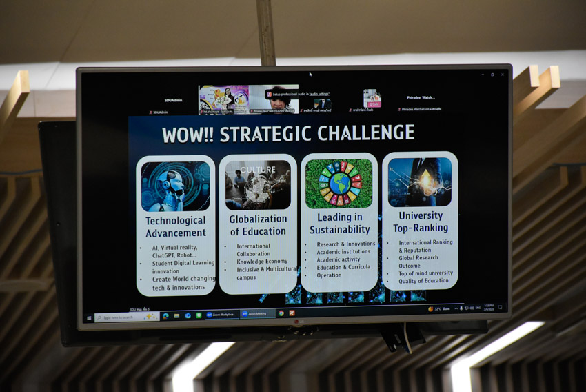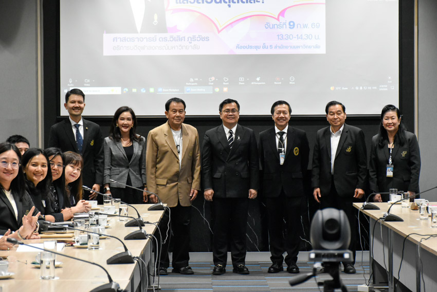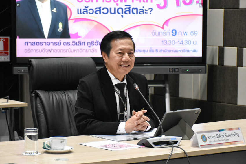 มหาวิทยาลัยสวนดุสิต วิทยาเขตสุพรรณบุรี นำโดย ดร.วรานี เวสสุนทรเทพ รองอธิการบดีฝ่ายวิทยาเขตสุพรรณบุรี พร้อมด้วยคณะผู้บริหารและบุคลากรฯ เข้าร่วมกิจกรรม “จิบกาแฟ…แล มหาวิทยาลัย” ครั้งพิเศษ ภายใต้เเนวคิดการสร้างแรงบันดาลใจและเปิดมุมมองใหม่ในการบริหารจัดการสถาบันอุดมศึกษา โดยได้รับเกียรติจาก ศาสตราจารย์ ดร.วิเลิศ ภูริวัชร อธิการบดีจุฬาลงกรณ์มหาวิทยาลัย ร่วมแบ่งปันแนวคิด กลยุทธ์ และประสบการณ์ในการขับเคลื่อนจุฬาลงกรณ์มหาวิทยาลัย ภายใต้โจทย์ “บริหารจุฬาฯ ให้ว้าว! แล้วสวนดุสิตล่ะ?” ซึ่งกิจกรรมจัดขึ้นโดยสถาบันศิโรจน์ ผลพันธิน ร่วมกับสวนดุสิตโพล ทั้งนี้ยังได้รับเกียรติจาก ผู้ช่วยศาสตราจารย์ ดร.พิทักษ์ จันทร์เจริญ อธิการบดีมหาวิทยาลัยสวนดุสิต รองศาสตราจารย์ ดร.สุขุม เฉลยทรัพย์ ประธานที่ปรึกษาอธิการบดี เเละ ศาสตราจารย์ ดร.ศิโรจน์ ผลพันธิน ที่ปรึกษาอธิการบดีด้านบริหาร ร่วมกล่าวต้อนรับ และร่วมแลกเปลี่ยนความคิดเห็น ในวันจันทร์ที่ 9 กุมภาพันธ์ 2569 เวลา 13.30-15.00 น. ณ ห้องประชุมชั้น 5 อาคารสำนักงานมหาวิทยาลัยสวยดุสิต มหาวิทยาลัยสวนดุสิต