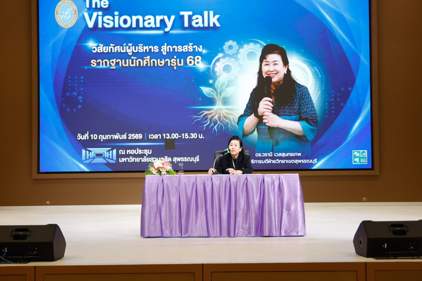 กองบริการนักศึกษา มหาวิทยาลัยสวนดุสิต วิทยาเขตสุพรรณบุรี จัดกิจกรรมโครงการเตรียมความพร้อม และสร้างแรงบันดาลใจแก่นักศึกษารุ่นใหม่ รุ่นที่ 68 ภายใต้กิจกรรมบรรยายพิเศษ “The Visionary Talk วิสัยทัศน์ผู้บริหาร สู่การสร้างรากฐานนักศึกษารุ่น 68” โดยได้รับเกียรติจาก ดร.วรานี เวสสุนทรเทพ รองอธิการบดีฝ่ายวิทยาเขตสุพรรณบุรี เป็นวิทยากรบรรยายพิเศษฯ โดยมีนักศึกษาชั้นปีที่ 1 ในทุกสาขาวิชาเข้าร่วมกิจกรรม ในวันอังคารที่ 10 กุมภาพันธ์ 2569 เวลา 13.00-15.30 น. ณ หอประชุมมหาวิทยาลัยสวนดุสิต วิทยาเขตสุพรรณบุรี