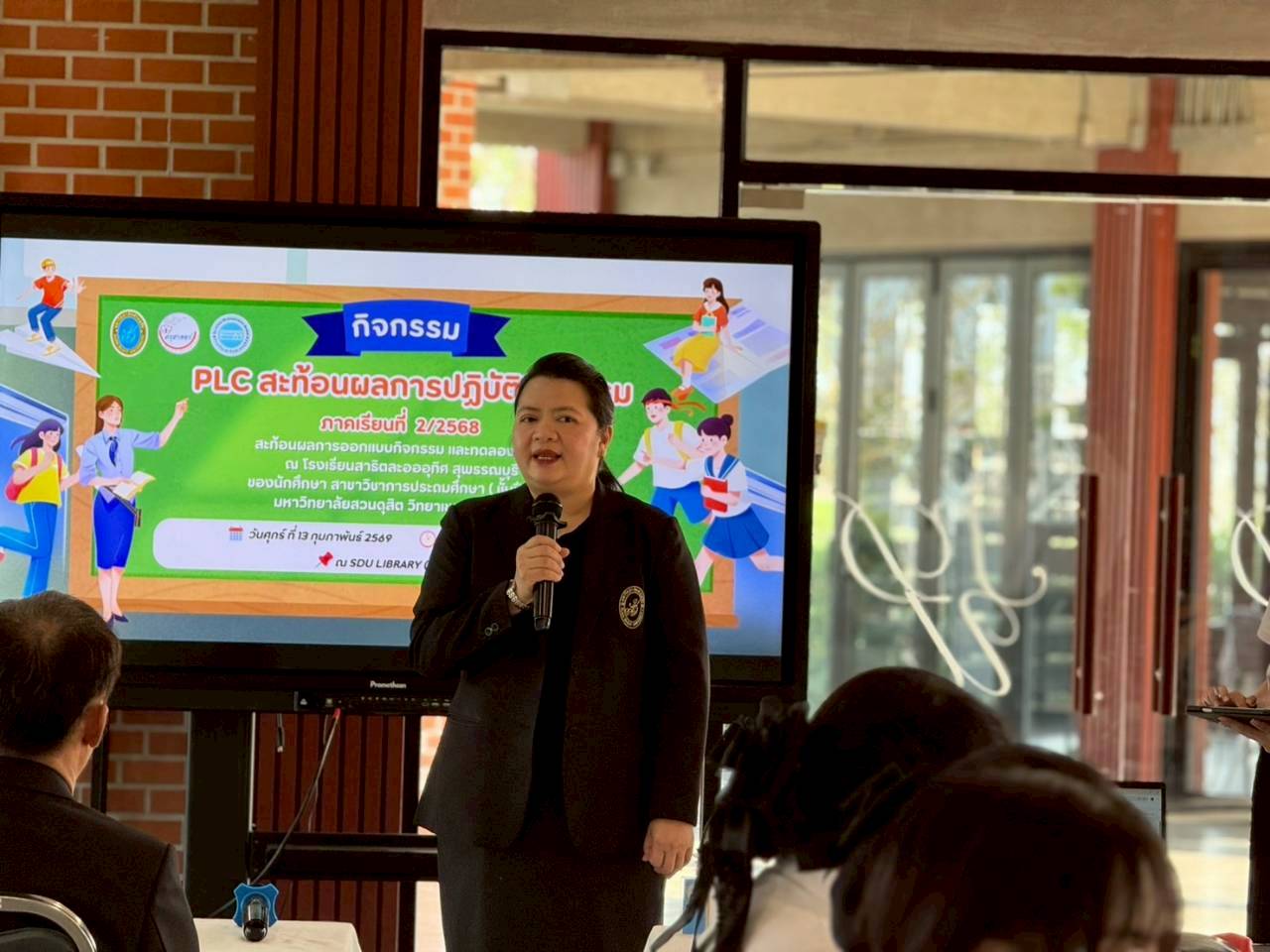 หลักสูตรศึกษาศาสตรบัณฑิต สาขาวิชาการประถมศึกษา มหาวิทยาลัยสวนดุสิต วิทยาเขตสุพรรณบุรี ได้จัดกิจกรรม PLC สะท้อนผลการปฏิบัติกิจกรรม ภาคเรียนที่ 2 ปีการศึกษา 2568 สะท้อนผลการออกแบบกิจกรรม และทดลองสอน ณ โรงเรียนสาธิตละอออุทิศ สุพรรณบุรี ของนักศึกษาชั้นปีที่ 3 โดยได้รับเกียรติจาก ผู้ช่วยศาสตราจารย์ ดร.สุนทร เทียนงาม อาจารย์ผู้ประสานงานหลักสูตรฯ เป็นประธานกล่าวเปิดงาน โดยมีคณาจารย์ และนักศึกษาชั้นปีที่ 3 ของหลักสูตรฯ เข้าร่วมกิจกรรม ในวันศุกร์ที่ 13 กุมภาพันธ์ 2569 เวลา 08.00 – 12.00 น. ณ ห้องประชุม SDU Library@Suphanburi ชั้น 1 โซน 3 มหาวิทยาลัยสวนดุสิต วิทยาเขตสุพรรณบุรี