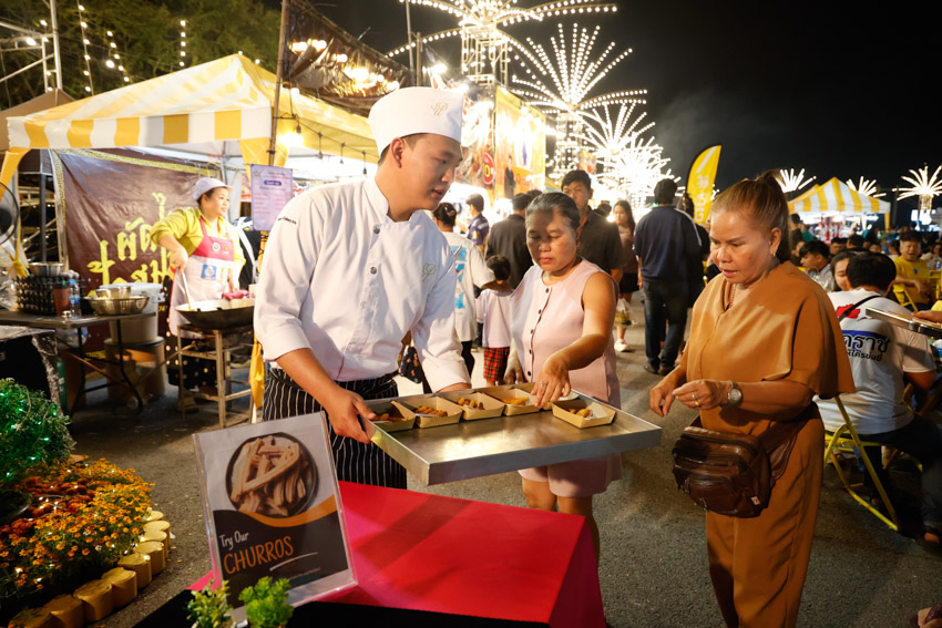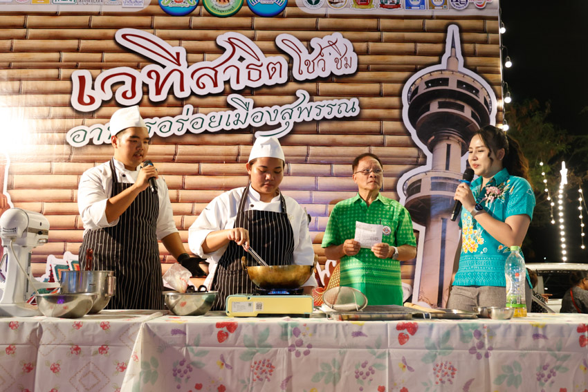 มหาวิทยาลัยสวนดุสิต วิทยาเขตสุพรรณบุรี โดย ดร.วรานี เวสสุนทรเทพ รองอธิการบดีฝ่ายวิทยาเขตสุพรรณบุรี เข้าร่วมพิธีเปิดงาน “มหกรรมอาหารอร่อยและของดีเมืองสุพรรณบุรี ครั้งที่ 24” โดยมีนายณัฐพงษ์ สงวนจิตร ผู้ว่าราชการจังหวัดสุพรรณบุรี เป็นประธานกล่าวเปิดงาน โดยในงานนี้ คณาจารย์และนักศึกษา สาขาวิชาเทคโนโลยีการประกอบอาหารและการบริการ โรงเรียนการเรือน มหาวิทยาลัยสวนดุสิต วิทยาเขตสุพรรณบุรี ได้ร่วมสาธิตการทำ “ชูโรส (CHURROS) ปาท่องโก๋สเปน” ให้แก่ผู้เข้าร่วมงานได้ร่วมชมและชิมอาหาร ในวันพฤหัสบดีที่ 12 กุมภาพันธ์ 2569 เวลา 17.00-20.00 น. ณ สนามกังสดาลย์ปาร์ค ถนนพันศรโยธา (ถนนม้าสีหมอก) อำเภอเมืองสุพรรณบุรี จังหวัดสุพรรณบุรี