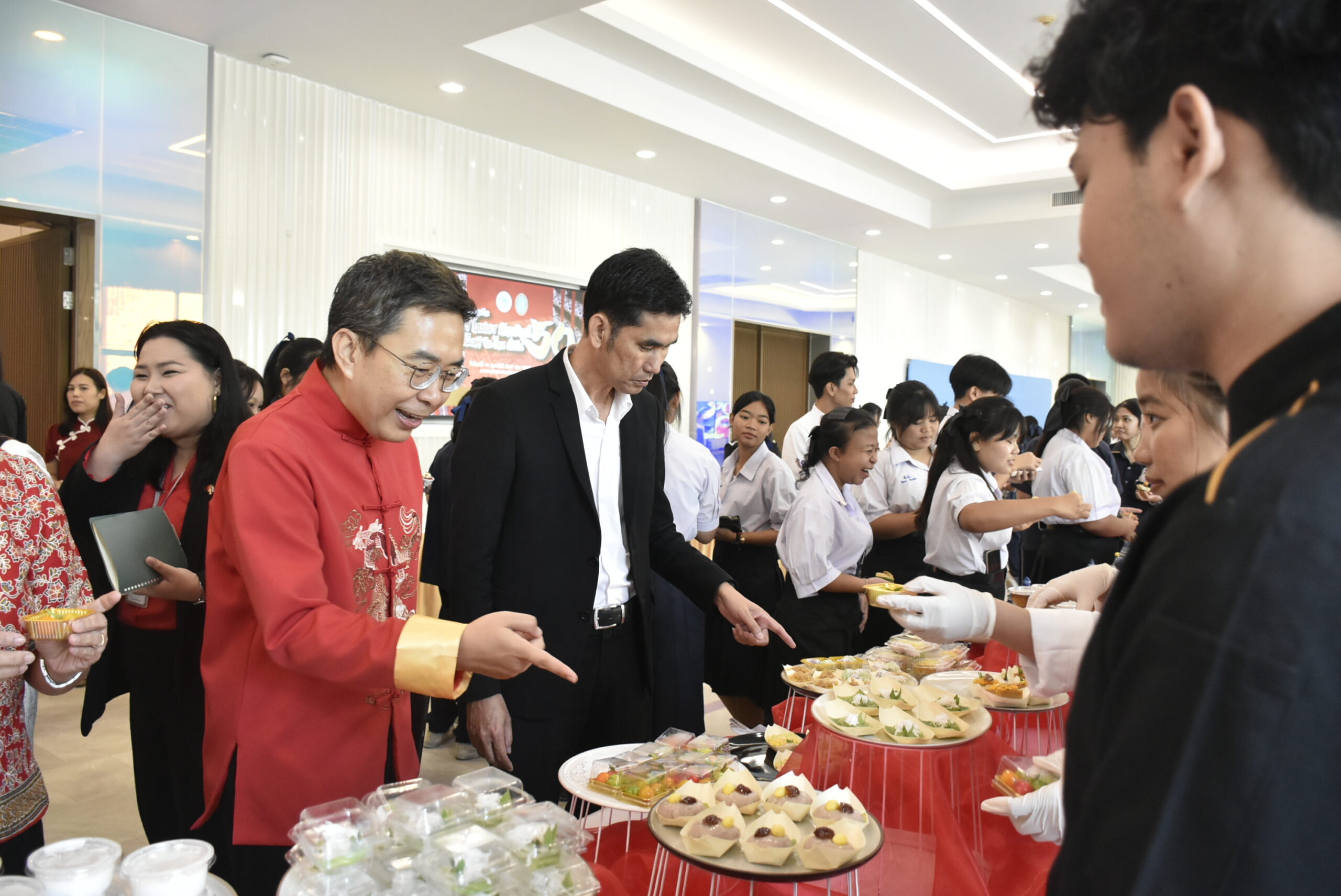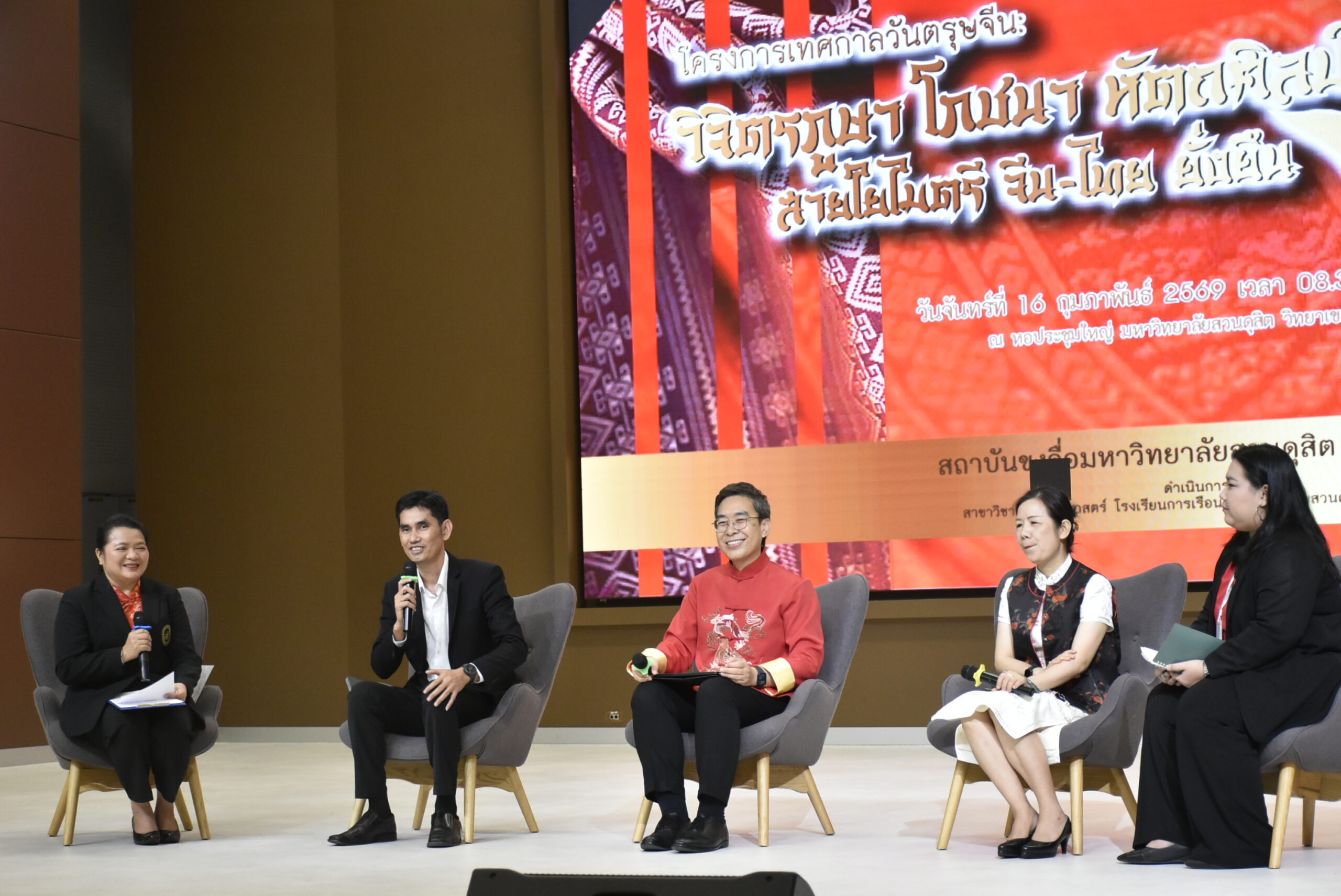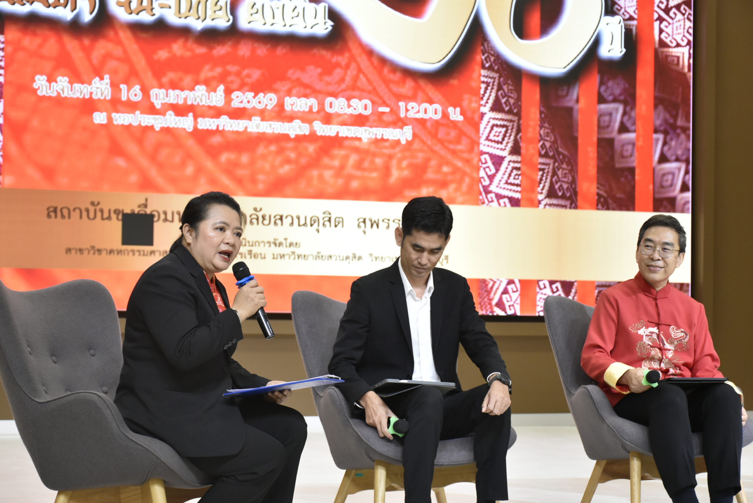 สถาบันขงจื่อมหาวิทยาลัยสวนดุสิต สุพรรณบุรี ร่วมกับ หลักสูตรศิลปศาสตรบัณฑิต สาขาวิชาคหกรรมศาสตร์ โรงเรียนการเรือน วิทยาเขตสุพรรณบุรี จัดโครงการ “เทศกาลวันตรุษจีน: วิจิตรภูษาโภชนาหัตถศิลป์ 50 ปี สายใยไมตรี จีน-ไทย ยั่งยืน” โดยได้รับเกียรติจาก Mrs. Wei Yubing และ ดร.พันธรักษ์ ผูกพันธุ์ ร่วมเป็นประธานในพิธีเปิด โดยวัตถุประสงค์หลักเพื่อเฉลิมพระเกียรติสมเด็จพระนางเจ้าสิริกิติ์ พระบรมราชินีนาถ พระบรมราชชนนีพันปีหลวง ผู้ทรงเป็น “พระมารดาแห่งไหมไทย” ผ่านนิทรรศการชุดไทยพระราชนิยมอันทรงคุณค่า และเพื่อเฉลิมฉลองวาระประวัติศาสตร์ครบรอบ 50 ปี การสถาปนาความสัมพันธ์ทางการทูตไทย-จีน ภายในโครงการมีกิจกรรมที่มุ่งเน้นการสร้างประสบการณ์เรียนรู้แบบ Active Learning ให้แก่คณะครูและนักเรียนกว่า 200 คน ผ่านการเสวนาทางวิชาการและการลงมือปฏิบัติจริงในฐานวัฒนธรรมจีน 4 ฐาน ได้แก่ การทำถังหูลู่ ศิลปะการชงชา การย้อมสีพัดจีน และเกมสันทนาการ ควบคู่ไปกับการสาธิต “โภชนาศิลป์” อาหารไทย-จีน สวนดุสิต ที่นำเสนอเมนูมงคลรสเลิศ อาทิ ถุงทอง ขนมจีบ และเครื่องดื่มสมุนไพร สะท้อนให้เห็นถึงพลังของ Soft Power ที่เชื่อมโยงวิถีชีวิต ศิลปะ และวัฒนธรรมของสองแผ่นดินเข้าด้วยกันอย่างกลมกลืน โดยโครงการจัดขึ้นในวันจันทร์ที่ 16 กุมภาพันธ์ 2569 เวลา 09.00-12.30 น. หอประชุมใหญ่ มหาวิทยาลัยสวนดุสิต วิทยาเขตสุพรรณบุรี