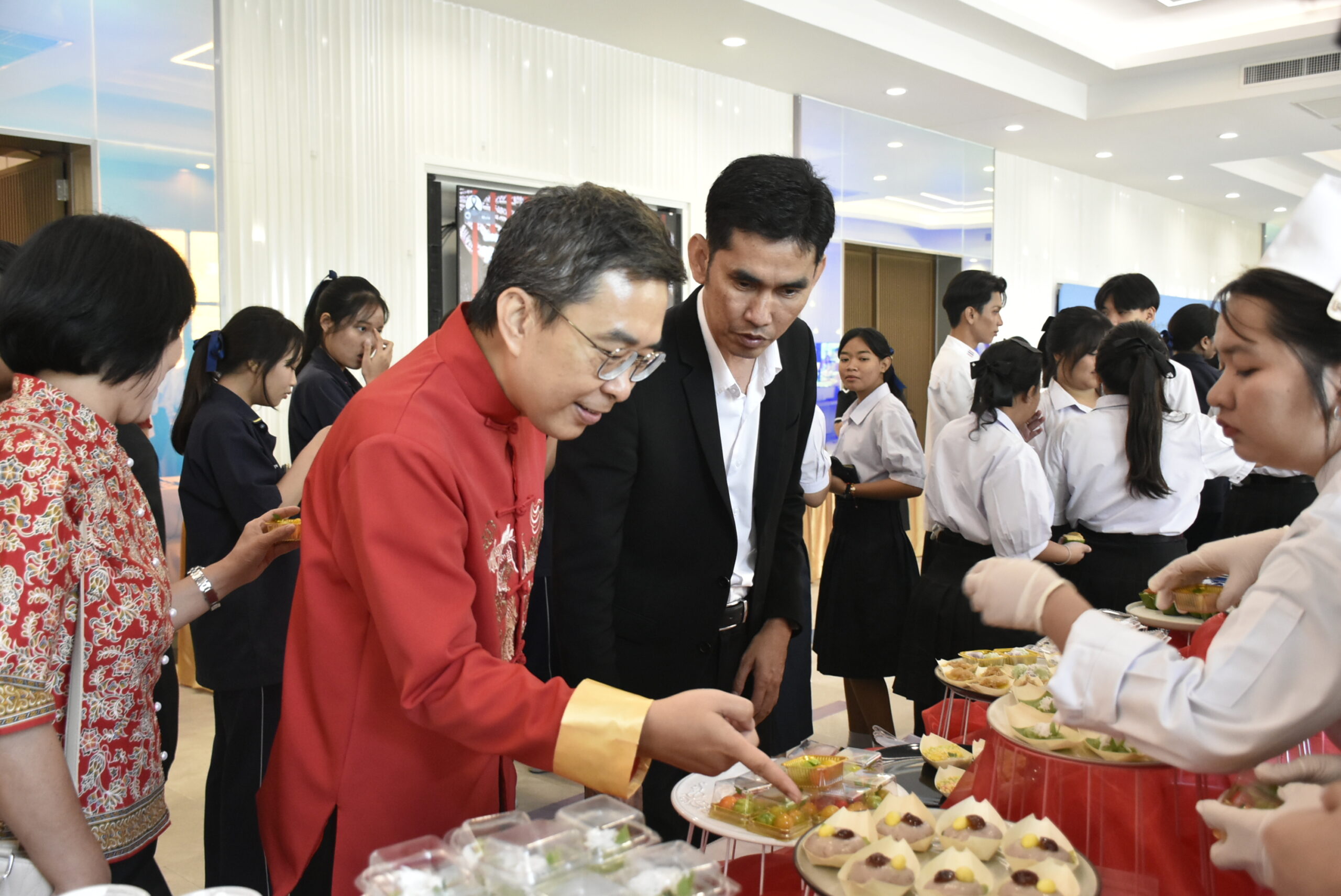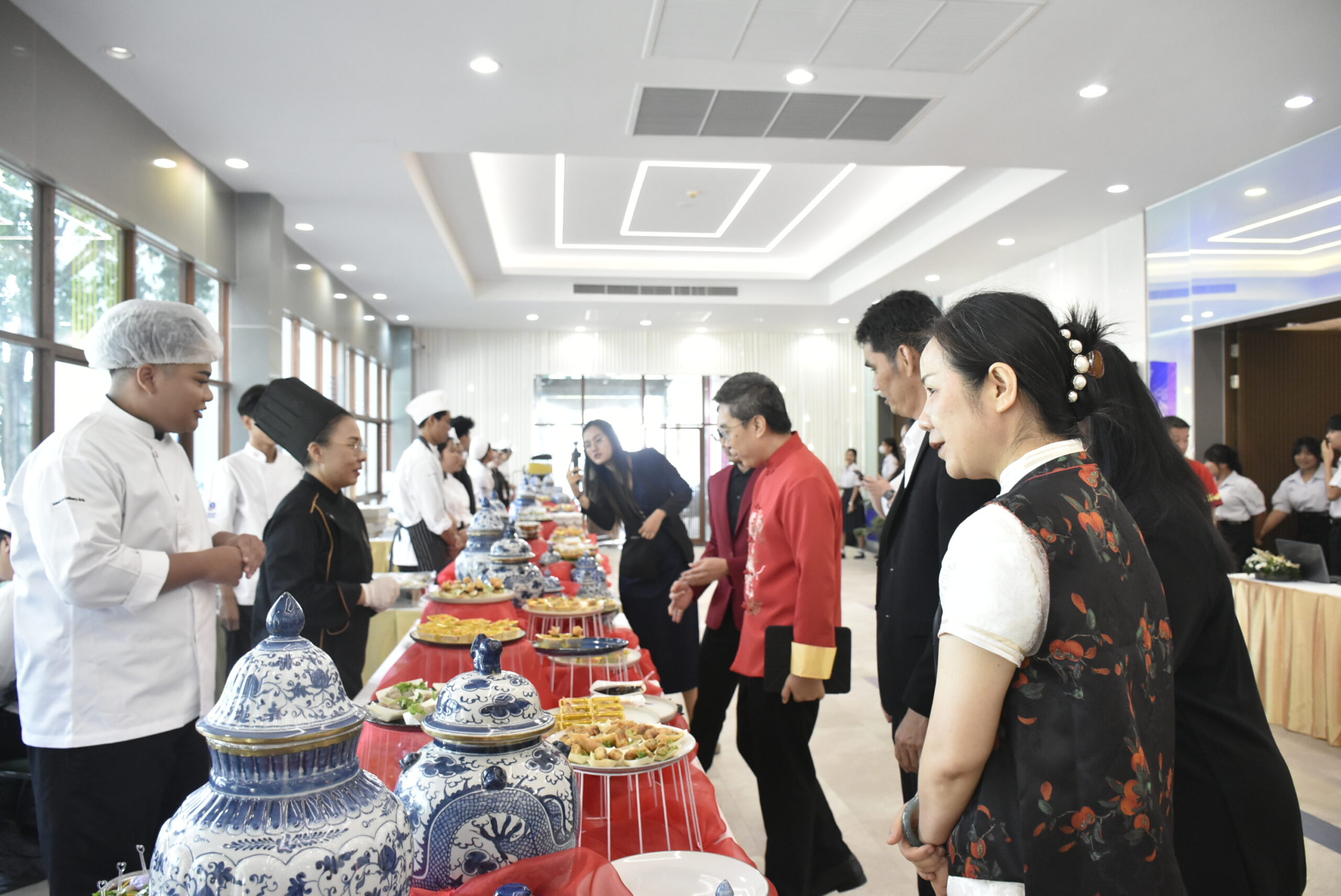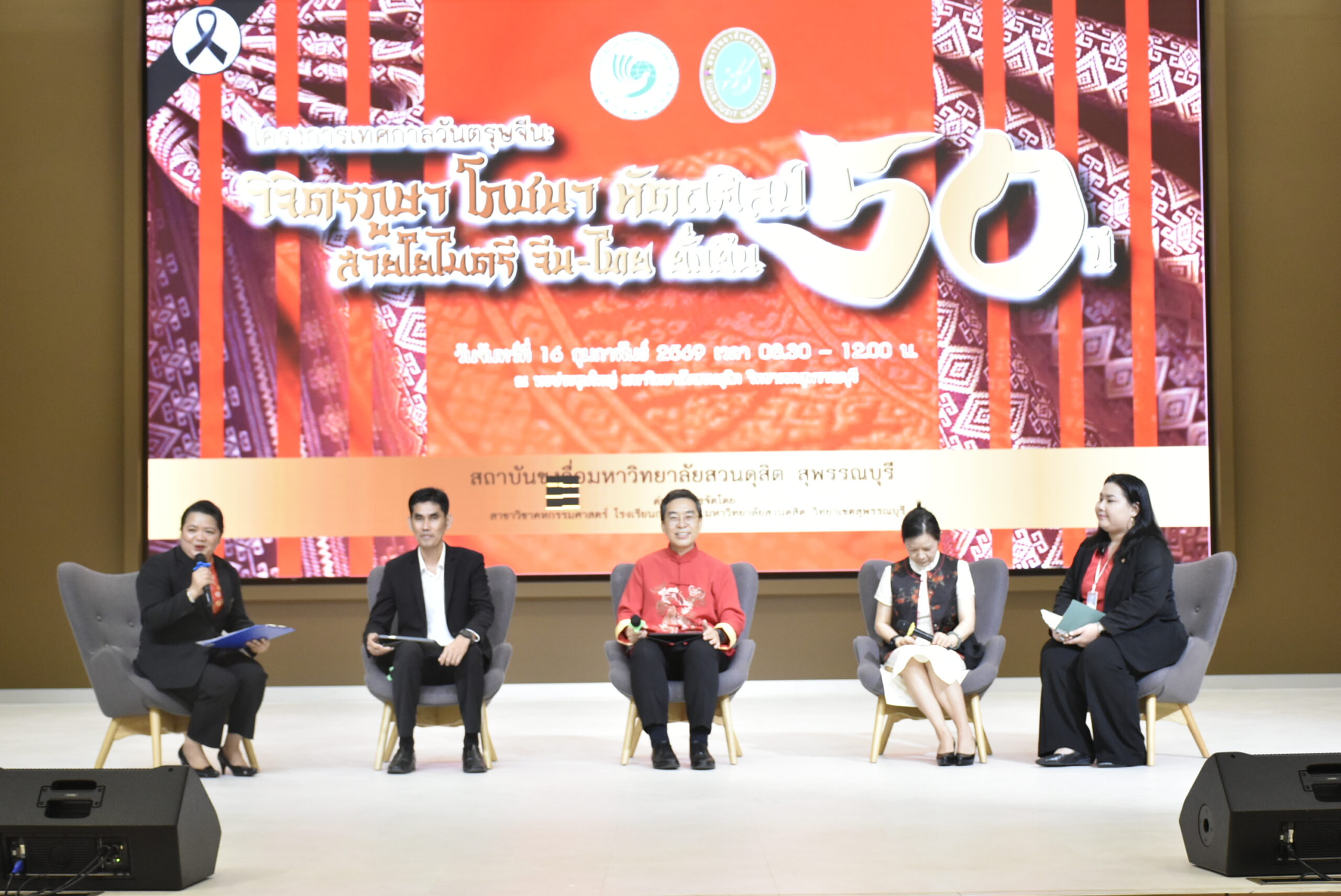 สถาบันขงจื่อมหาวิทยาลัยสวนดุสิต สุพรรณบุรี ร่วมกับ หลักสูตรศิลปศาสตรบัณฑิต สาขาวิชาคหกรรมศาสตร์ โรงเรียนการเรือน วิทยาเขตสุพรรณบุรี จัดโครงการ “เทศกาลวันตรุษจีน: วิจิตรภูษาโภชนาหัตถศิลป์ 50 ปี สายใยไมตรี จีน-ไทย ยั่งยืน” โดยได้รับเกียรติจาก Mrs. Wei Yubing และ ดร.พันธรักษ์ ผูกพันธุ์ ร่วมเป็นประธานในพิธีเปิด โดยวัตถุประสงค์หลักเพื่อเฉลิมพระเกียรติสมเด็จพระนางเจ้าสิริกิติ์ พระบรมราชินีนาถ พระบรมราชชนนีพันปีหลวง ผู้ทรงเป็น “พระมารดาแห่งไหมไทย” ผ่านนิทรรศการชุดไทยพระราชนิยมอันทรงคุณค่า และเพื่อเฉลิมฉลองวาระประวัติศาสตร์ครบรอบ 50 ปี การสถาปนาความสัมพันธ์ทางการทูตไทย-จีน ภายในโครงการมีกิจกรรมที่มุ่งเน้นการสร้างประสบการณ์เรียนรู้แบบ Active Learning ให้แก่คณะครูและนักเรียนกว่า 200 คน ผ่านการเสวนาทางวิชาการและการลงมือปฏิบัติจริงในฐานวัฒนธรรมจีน 4 ฐาน ได้แก่ การทำถังหูลู่ ศิลปะการชงชา การย้อมสีพัดจีน และเกมสันทนาการ ควบคู่ไปกับการสาธิต “โภชนาศิลป์” อาหารไทย-จีน สวนดุสิต ที่นำเสนอเมนูมงคลรสเลิศ อาทิ ถุงทอง ขนมจีบ และเครื่องดื่มสมุนไพร สะท้อนให้เห็นถึงพลังของ Soft Power ที่เชื่อมโยงวิถีชีวิต ศิลปะ และวัฒนธรรมของสองแผ่นดินเข้าด้วยกันอย่างกลมกลืน โดยโครงการจัดขึ้นในวันจันทร์ที่ 16 กุมภาพันธ์ 2569 เวลา 09.00-12.30 น. หอประชุมใหญ่ มหาวิทยาลัยสวนดุสิต วิทยาเขตสุพรรณบุรี