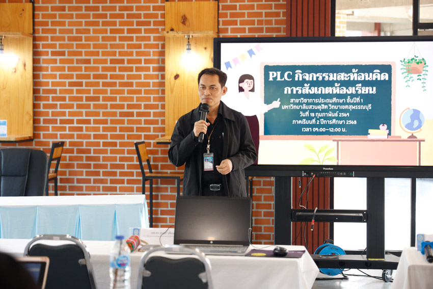 หลักสูตรศึกษาศาสตรบัณฑิต สาขาวิชาการประถมศึกษา มหาวิทยาลัยสวนดุสิต วิทยาเขตสุพรรณบุรี ได้จัดกิจกรรม PLC กิจกรรมสะท้อนคิดการสังเกตในห้องเรียน ภาคเรียนที่ 2 ปีการศึกษา 2568 ของนักศึกษาชั้นปีที่ 1 โดยได้รับเกียรติจาก ผู้ช่วยศาสตราจารย์ ดร.สุนทร เทียนงาม ประธานหลักสูตรฯ เป็นประธานกล่าวเปิดงาน โดยมีคณาจารย์ และนักศึกษาชั้นปีที่ 1 ของหลักสูตรฯ เข้าร่วมกิจกรรม ในวันพุธที่ 18 กุมภาพันธ์ 2569 เวลา 09.00 – 12.00 น. ณ ห้องประชุม SDU Library@Suphanburi ชั้น 1 โซน 3 มหาวิทยาลัยสวนดุสิต วิทยาเขตสุพรรณบุรี