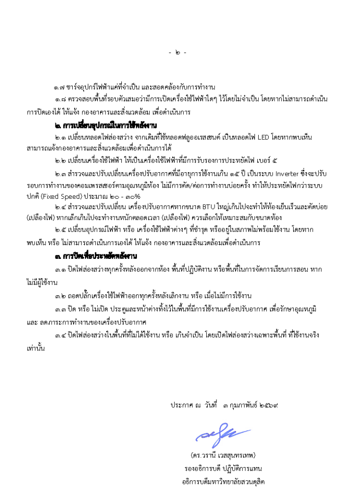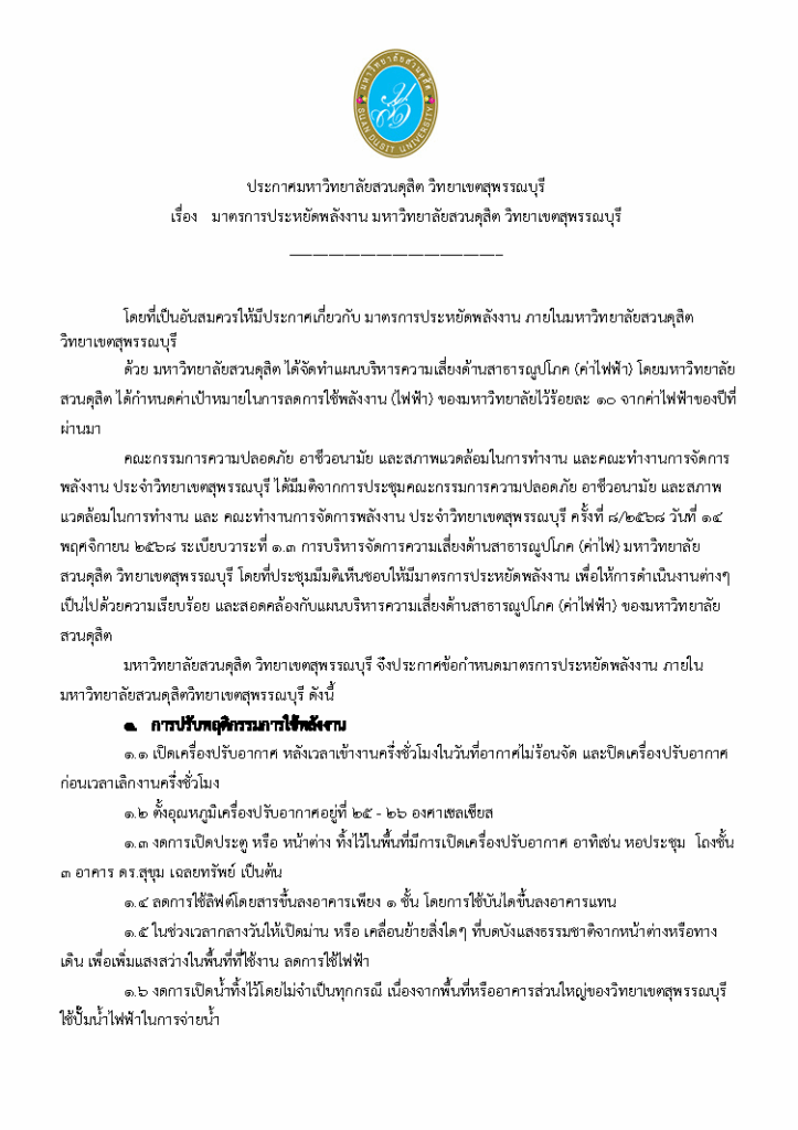 ประกาศ มาตรการประหยัดพลังงาน มหาวิทยาลัยสวนดุสิต วิทยาเขตสุพรรณบุรี
