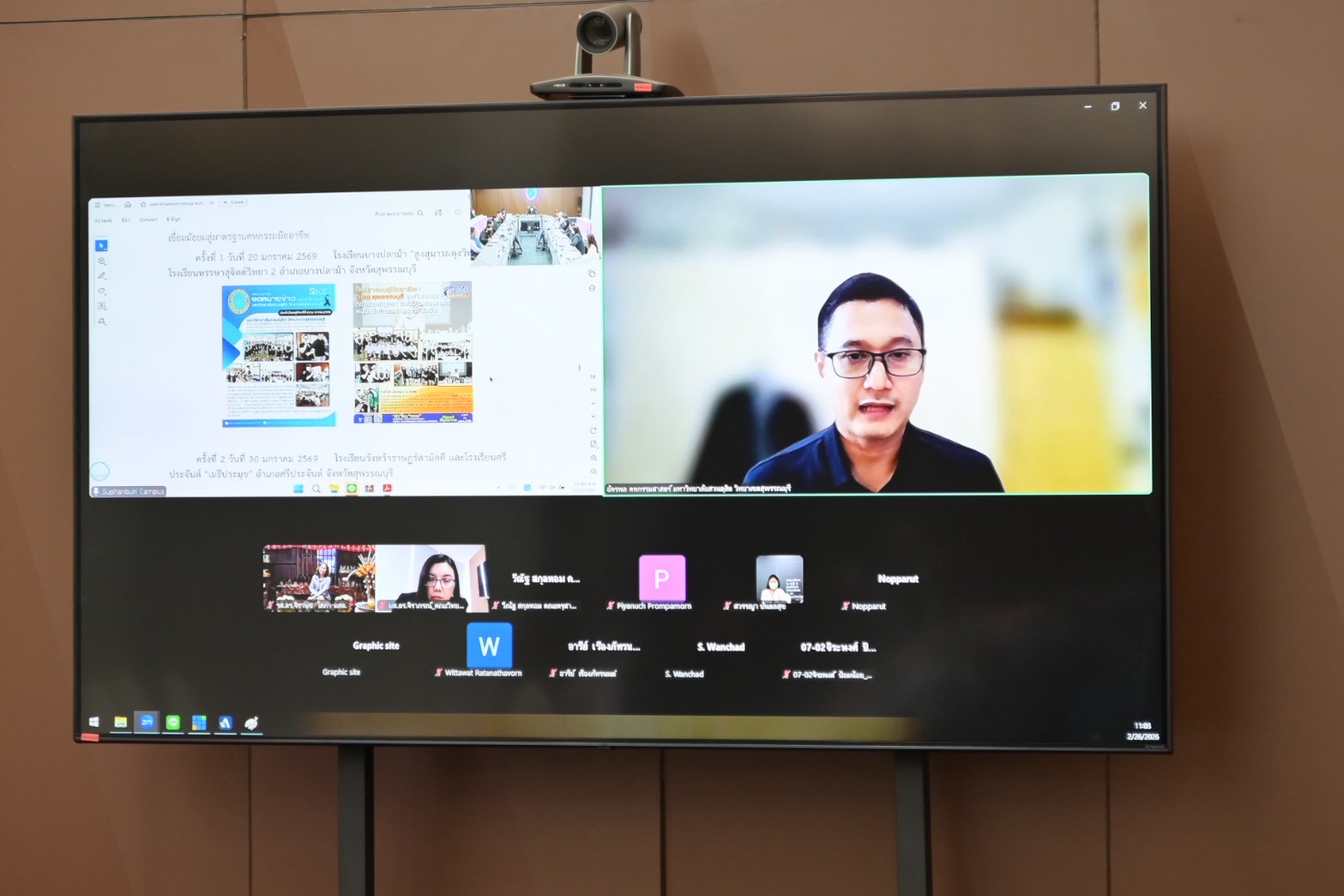 กองกลาง สำนักงานวิทยาเขตสุพรรณบุรี จัดประชุมคณะกรรมการประจำวิทยาเขตสุพรรณบุรี ครั้งที่ 1/2569 เพื่อการบริหารจัดการและการเตรียมการดำเนินงานในด้านต่างๆ และรายงานผลการดำเนินงานของแต่ละหน่วยงาน ต่อคณะกรรมการประจำวิทยาเขตฯ โดยมี ดร.วรานี เวสสุนทรเทพ รองอธิการบดีฝ่ายวิทยาเขตสุพรรณบุรี เป็นประธานในที่ประชุม พร้อมคณะกรรมการประจำวิทยาเขตสุพรรณบุรี เข้าประชุมโดยพร้อมเพียง ในวันพฤหัสบดีที่ 26 กุมภาพันธ์ 2569 เวลา 09.30-12.00 น. ณ ห้องประชุม ชั้น 3 อาคารศูนย์ความเลิศด้านการพิมพ์และบรรจุภัณฑ์ มหาวิทยาลัยสวนดุสิต วิทยาเขตสุพรรณบุรี