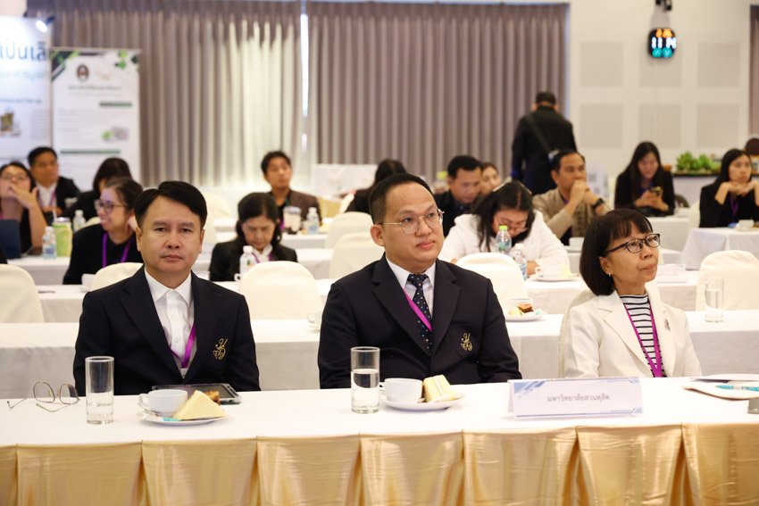 มหาวิทยาลัยสวนดุสิต วิทยาเขตสุพรรณบุรี โดย ดร.วรานี เวสสุนทรเทพ รองอธิการบดีฝ่ายวิทยาเขตสุพรรณบุรี ร่วมเป็นเกียรติและกล่าวต้อนรับผู้เข้าร่วมประชุม การแลกเปลี่ยนเรียนรู้และสร้างเครือข่ายมหาวิทยาลัยกลุ่มการพัฒนาชุมชนท้องถิ่นหรือ ชุมชนอื่น กลุ่มที่ 3 ปีที่ 2 Reinventing University (Area – Based and Community Engagement) ในหัวข้อ “ต้นแบบเรือธงด้านวิจัยและทรัพย์สินทางปัญญา” ภายใต้โครงการพัฒนาระบบบริหารการเงินและแนวทางการเพิ่มรายได้ จัดโดยสำนักงานปลัดกระทรวงการอุดมศึกษา วิทยาศาสตร์ วิจัยและนวัตกรรม และมหาวิทยาลัยบูรพา เเละกล่าวเปิดการประชุม โดย ดร.พันธุ์เพิ่มศักดิ์ อารุณี รองปลัดกระทรวงการอุดมศึกษา วิทยาศาสตร์ วิจัยและนวัตกรรม และรองศาสตราจารย์ ดร.ชนะศึก นิชานนท์ รองอธิการบดีฝ่ายบริหาร วิจัย และนวัตกรรม ได้ร่วมกิจกรรมการแลกเปลี่ยนเรียนรู้ การศึกษาข้อบังคับ ระเบียบ ประกาศ และแนวทางแก้ไขของ สถาบันอุดมศึกษาต้นแบบ : มหาวิทยาลัยรายภัฏกำแพงเพชร (สาขาการวิจัยและทรัพย์สิน ทางปัญญา) และมหาวิทยาลัยสวนดุสิต ในวันพฤหัสบดีที่ 26 กุมภาพันธ์ 2569 เวลา 08.30-15.30 น. ณ ห้องประชุมพวงเงิน อาคารจันทร์เจริญ มหาวิทยาลัยสวนดุสิต วิทยาเขตสุพรรณบุรี