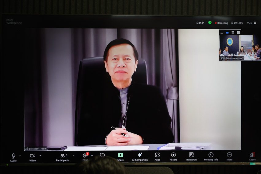 มหาวิทยาลัยสวนดุสิต วิทยาเขตสุพรรณบุรี นำโดย ดร.วรานี เวสสุนทรเทพ รองอธิการบดีฝ่ายวิทยาเขตสุพรรณบุรี ร่วมการประชุมติดตามการดำเนินงาน การปฏิบัติงานของโครงการพิเศษ มหาวิทยาลัยสวนดุสิต วิทยาเขตสุพรรณบุรี ในด้านต่างๆ โดยมี ผู้ช่วยศาสตราจารย์ ดร.พิทักษ์ จันทร์เจริญ อธิการบดี มหาวิทยาลัยสวนดุสิต เป็นประธานในที่ประชุม โดยมีคณะผู้บริหารฯ พร้อมบุคลากรโครงการพิเศษฯ และเจ้าหน้าที่ในส่วนงานที่เกี่ยวข้อง เข้าร่วมการประชุมผ่านระบบออนไลน์ โปรแกรม Zoom Meeting ณ ห้อง SDU online learning room 12 ชั้น 3 อาคารสวนแก้ว 1 มหาวิทยาลัยสวนดุสิต วิทยาเขตสุพรรณบุรี