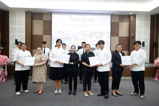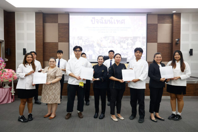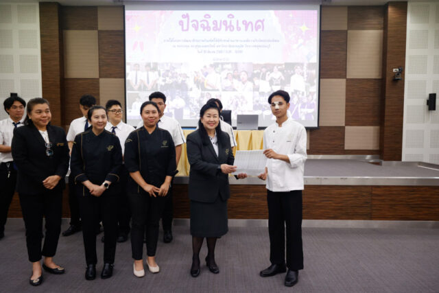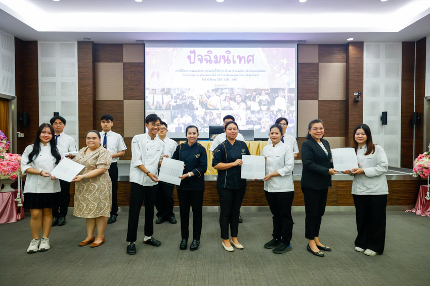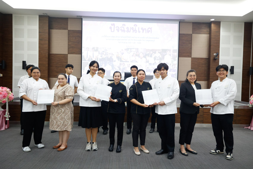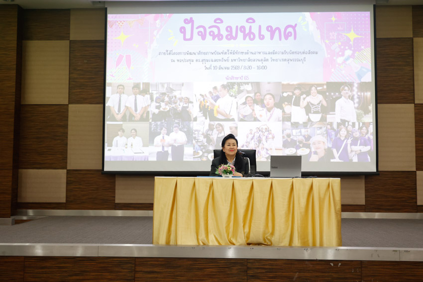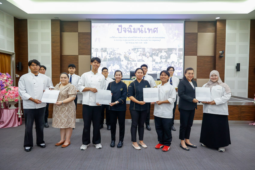 หลักสูตรวิทยาศาสตรบัณฑิต สาขาวิชาเทคโนโลยีการประกอบอาหารและการบริการ โรงเรียนการเรือน มหาวิทยาลัยสวนดุสิต วิทยาเขตสุพรรณบุรี จัดกิจกรรมปัจฉิมนิเทศภายใต้ “โครงการพัฒนาศักยภาพบัณฑิตให้มีทักษะทางด้านอาหารและมีความรับผิดชอบต่อสังคม” โดยได้รับเกียรติจาก ดร.วรานี เวสสุนทรเทพ รองอธิการบดีฝ่ายวิทยาเขตสุพรรณบุรี เป็นประธานกล่าวเปิดกิจกรรม แสดงความยินดี ให้โอวาทและมอบหมวกเชฟแก่นักศึกษา นอกจากนี้ภายในกิจกรรมยังมีกิจกรรมการนำเสนอผลการฝึกประสบการณ์วิชาชีพของนักศึกษา โดยมีคณาจารย์และนักศึกษาของหลักสูตรฯ เข้าร่วมกิจกรรม ในวันอังคารที่ 10 มีนาคม2569 เวลา 08.30-16.00 น. ณ ห้องประชุม ชั้น 4 อาคาร ดร.สุขุม เฉลยทรัพย์ มหาวิทยาลัยสวนดุสิต วิทยาเขตสุพรรณบุรี