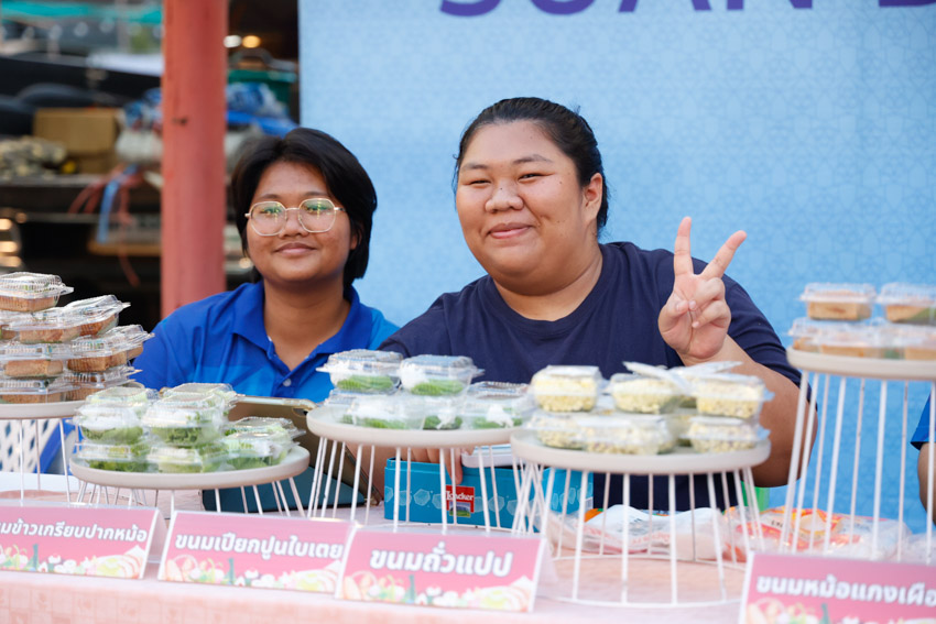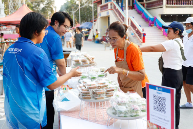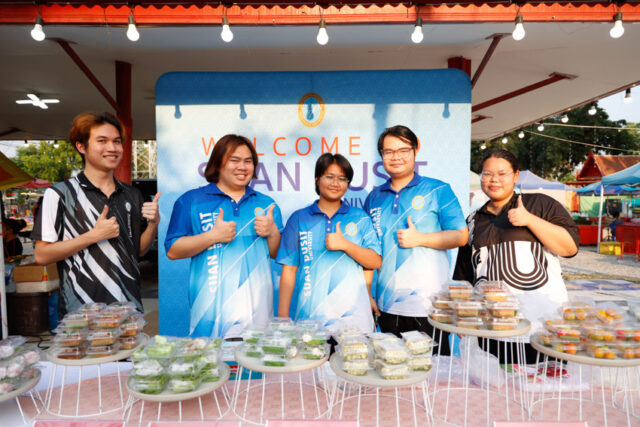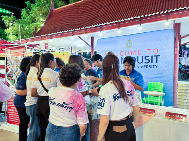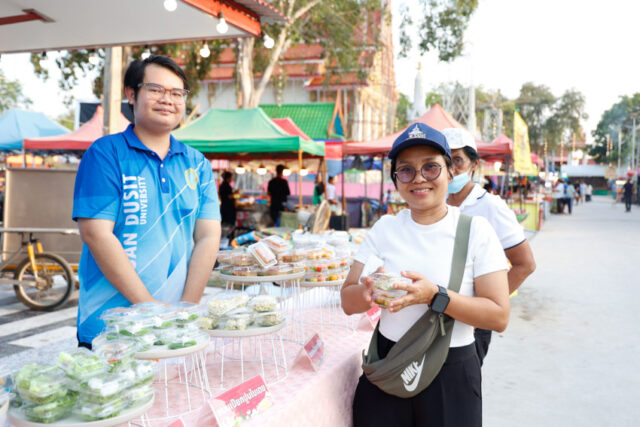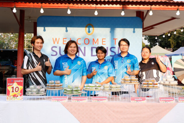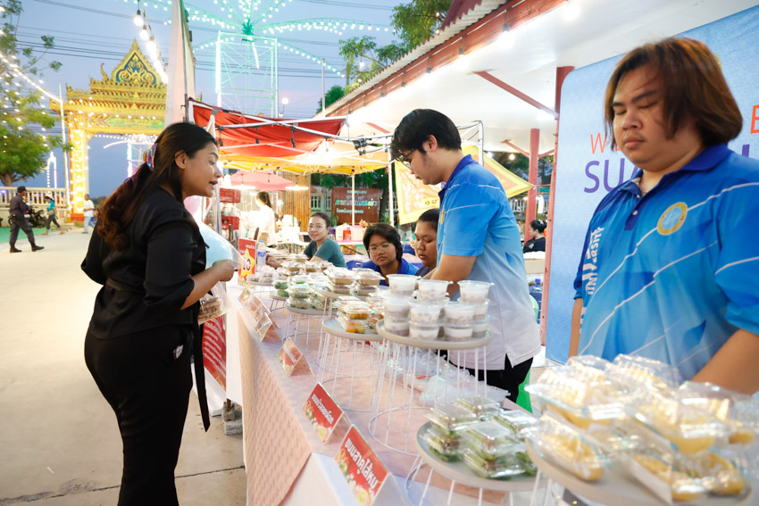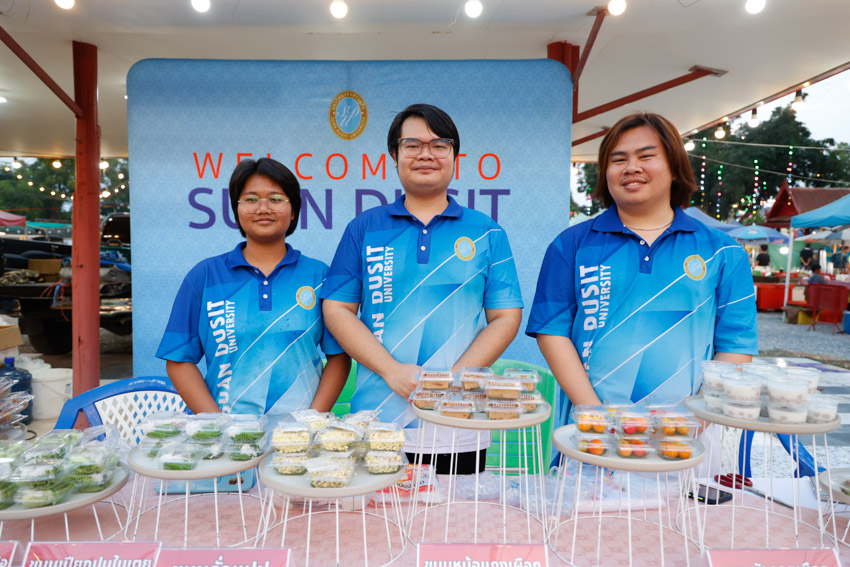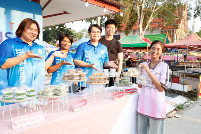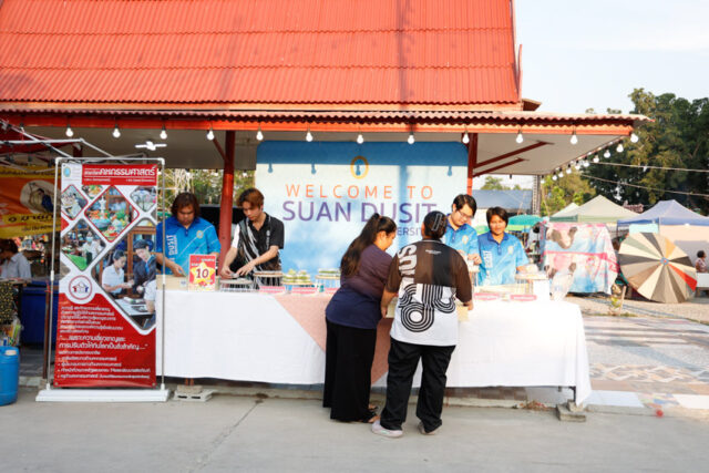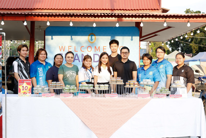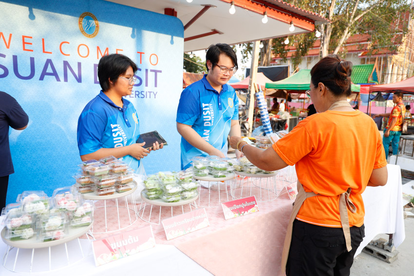 มหาวิทยาลัยสวนดุสิต วิทยาเขตสุพรรณบุรี โดยคณาจารย์และนักศึกษาสาขาวิชาคหกรรมศาสตร์ เเละโครงการพิเศษ วิทยาเขตสุพรรณบุรี ร่วมออกร้านจำหน่ายผลิตภัณฑ์ขนมสวนดุสิต อาทิ ขนมตาล ขนมบัวลอยเผือก ขนมลูกชุบ ขนมถั่วแปบ ฯ ภายในงานประจำปี หลวงพ่อบุญ ถาวโร (พระครูวุฒิ ธรรมนาถ) วัดโคกโคเฒ่า ให้แก่ผู้มาเที่ยวชมงานและปิดทองรูปเหมือนหลวงพ่อบุญฯ ระหว่างวันที่ 17-19 มีนาคม 2569 ณ วัดโคกโคเฒ่า อ.เมืองสุพรรณบุรี จ.สุพรรณบุรี