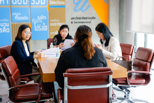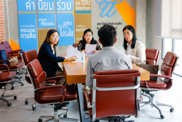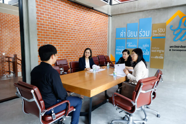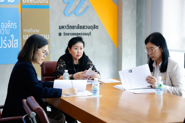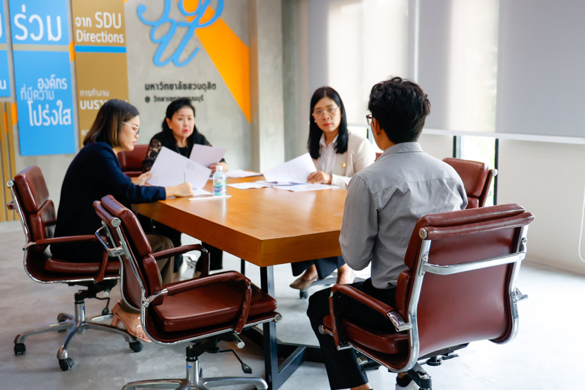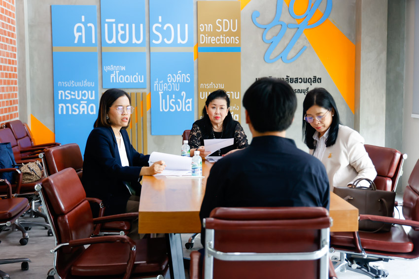 สำนักงานวิทยาเขตสุพรรณบุรี มหาวิทยาลัยสวนดุสิต จัดการสัมภาษณ์บุคคลเพื่อรับเข้าทำงานในตำแหน่ง เจ้าหน้าที่บริการการศึกษา สังกัด กองบริการนักศึกษา สำนักงานวิทยาเขตสุพรรณบุรี จำนวน 1 อัตรา โดยมี ดร.วรานี เวสสุนทรเทพ รองอธิการบดีฝ่ายวิทยาเขตสุพรรณบุรี, นางกัณณ์อลิน สุอังคะวาทิน ผู้อำนวยการสำนักงานวิทยาเขตสุพรรณบุรี เเละ ดร.วิณาภรณ์ แตงจุ้ย ผู้อำนวยการกองบริการนักศึกษา เป็นกรรมการสัมภาษณ์ฯ โดยมีบุคคลสมัครเข้ารับการสัมภาษณ์ รวมทั้งสิ้นจำนวน 12 คน ในวันจันทร์ที่ 20 เมษายน 2569 เวลา 13.30 น. เป็นต้นไป ณ ห้องประชุม 1 ชั้น 2 อาคารศูนย์การเรียนรู้ระบบใหม่โดยใช้เทคโนโลยีเป็นสื่อ (SDU Library@Suphanburi) มหาวิทยาลัยสวนดุสิต วิทยาเขตสุพรรณบุรี