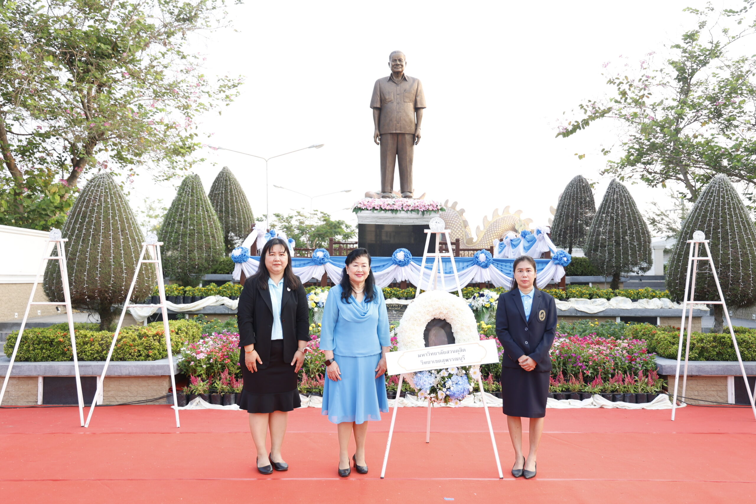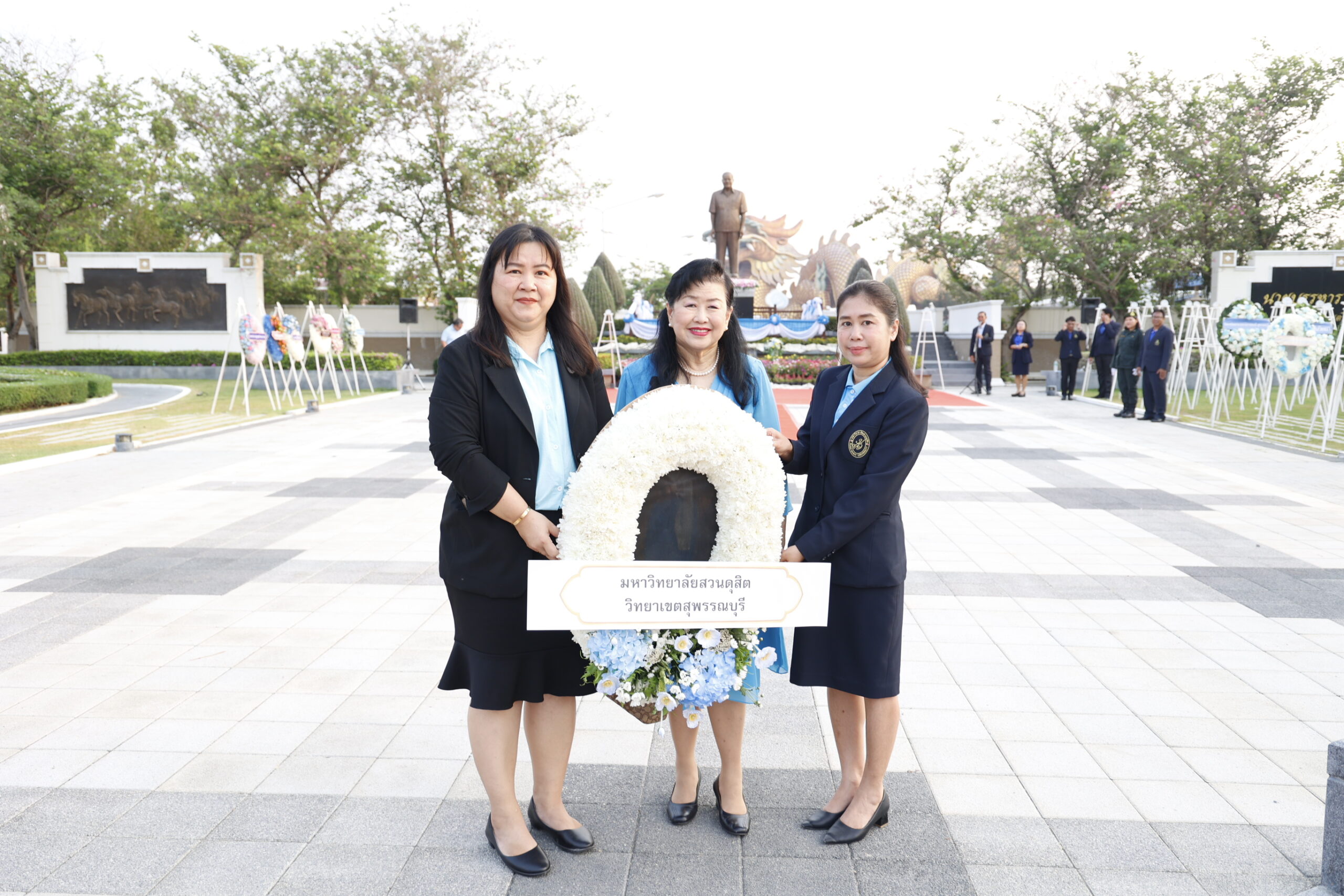 มหาวิทยาลัยสวนดุสิต วิทยาเขตสุพรรณบุรี นำโดย ดร.วรานี เวสสุนทรเทพ รองอธิการบดีฝ่ายวิทยาเขตสุพรรณบุรี พร้อมด้วยบุคลากร เข้าร่วมพิธีวางพวงดอกไม้และบำเพ็ญกุศล 10 ปี การถึงอนิจกรรม เพื่อระลึกถึงเกียรติคุณ ฯพณฯ บรรหาร ศิลปอาชา นายกรัฐมนตรีคนที่ 21 โดยได้รับเกียรติจาก นายวราวุธ ศิลปอาชา รัฐมนตรีว่าการกระทรวงอุตสาหกรรม เป็นประธานในพิธี โดยมีหน่วยงานทั้งภาครัฐ ภาคเอกชน และภาคประชาชน เข้าร่วมพิธีโดยพร้อมเพรียง ในวันพฤหัสบดีที่ 23 เมษายน 2569 ตั้งแต่เวลา 07.00 น. เป็นต้นไป ณ อุทยานสัจจะและกตัญญู ศาลเจ้าพ่อหลักเมืองสุพรรณบุรี จังหวัดสุพรรณบุรี