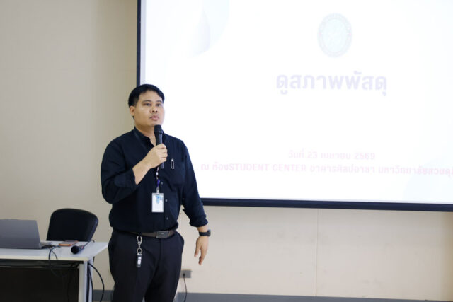 กองกลาง สำนักงานวิทยาเขตสุพรรณบุรี จัดลงทะเบียนและดูสภาพพัสดุ เพื่อขายทอดตลาดพัสดุ จำนวน 32 รายการ โดยวิธีประมูลราคาด้วยวาจา โดยมีคณะกรรมการฯ นำโดย นางกัณณ์อลิน สุอังคะวาทิน ผู้อำนวยการสำนักงานวิทยาเขตสุพรรณบุรี ,นางสาวจุฑารัตน์ จิ๋วสง่า ผู้อำนวยการกองกลาง ร่วมอำนวยความสะดวกและสังเกตุการดำเนินการ ให้เป็นไปด้วยความเรียบร้อย โดยมีผู้แสดงความประสงค์ลงทะเบียนและดูสภาพพัสดุ จำนวน 21 ราย ในวันพฤหัสบดีที่ 23 เมษายน 2569 เวลา 09.30-11.30 น. ณ ห้อง STUDENTS CENTER ชั้น 1 อาคารสระว่ายน้ำศิลปอาชา และบริเวณลานจอดรถ ชั้น G อาคาร ดร.สุขุม เฉลยทรัพย์ มหาวิทยาลัยสวนดุสิต วิทยาเขตสุพรรณบุรี