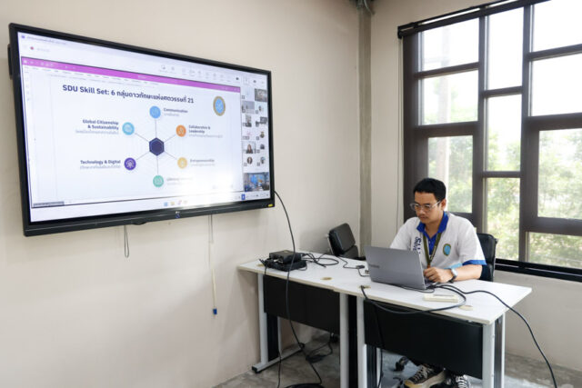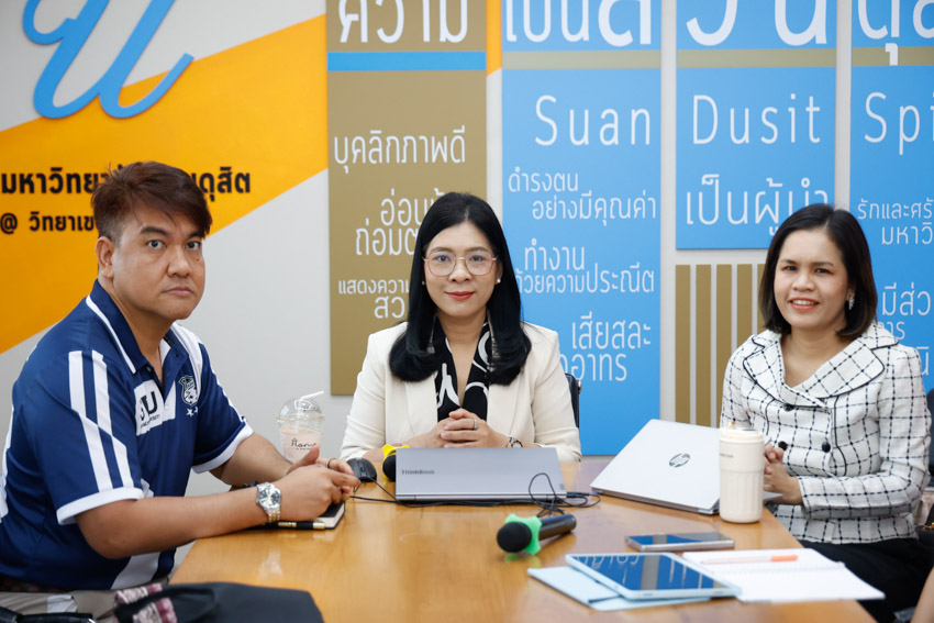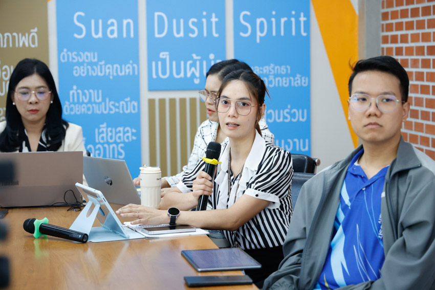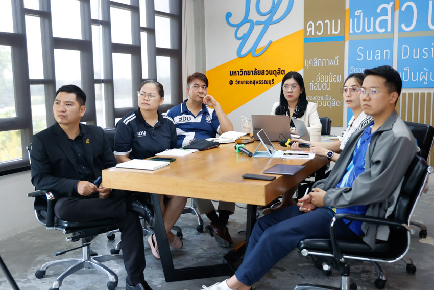 มหาวิทยาลัยสวนดุสิต วิทยาเขตสุพรรณบุรี นำโดย นางกัณณ์อลิน สุอังคะวาทิน ผู้อำนวยการสำนักงานวิทยาเขตสุพรรณบุรี เเละ ดร.วิณาภรณ์ แตงจุ้ย ผู้อำนวยการกองบริการนักศึกษา พร้อมบุคลากรในส่วนงานที่เกี่ยวข้อง เข้าร่วมการประชุมรองคณบดีที่กำกับดูแลนักศึกษา ครั้งที่ 2(8)/2569 ผ่านระบบออนไลน์ โปรแกรม MS Teams โดยมีผู้ช่วยศาสตราจารย์ ดร.ธนากร ปักษา ผู้อำนวยการกองพัฒนานักศึกษา ได้รับมอบหมายจาก รองศาสตราจารย์พัชรี สวนแก้ว รองอธิการบดีฝ่ายกิจการนักศึกษา เป็นประธานการประชุมฯ โดยวิทยาเขตสุพรรณบุรี เข้าร่วมการประชุมในวันศุกร์ที่ 24 เมษายน 2569 เวลา 10.00-11.30 น. ณ ห้อง SDU Library @Suphanburi 2 ชั้น 2 อาคารศูนย์การเรียนรู้ระบบใหม่โดยใช้เทคโนโลยีเป็นสื่อ มหาวิทยาลัยสวนดุสิต วิทยาเขตสุพรรณบุรี