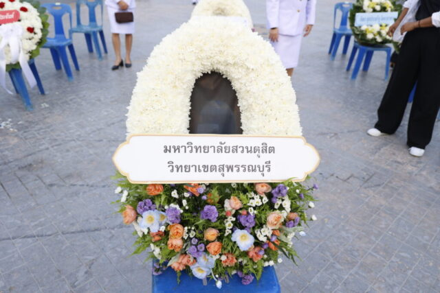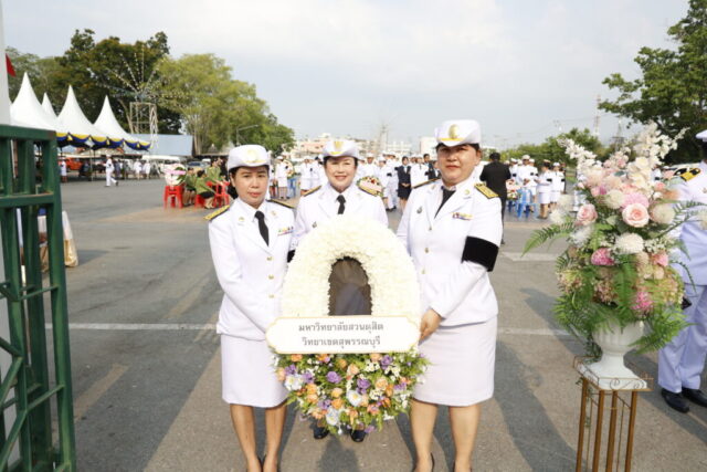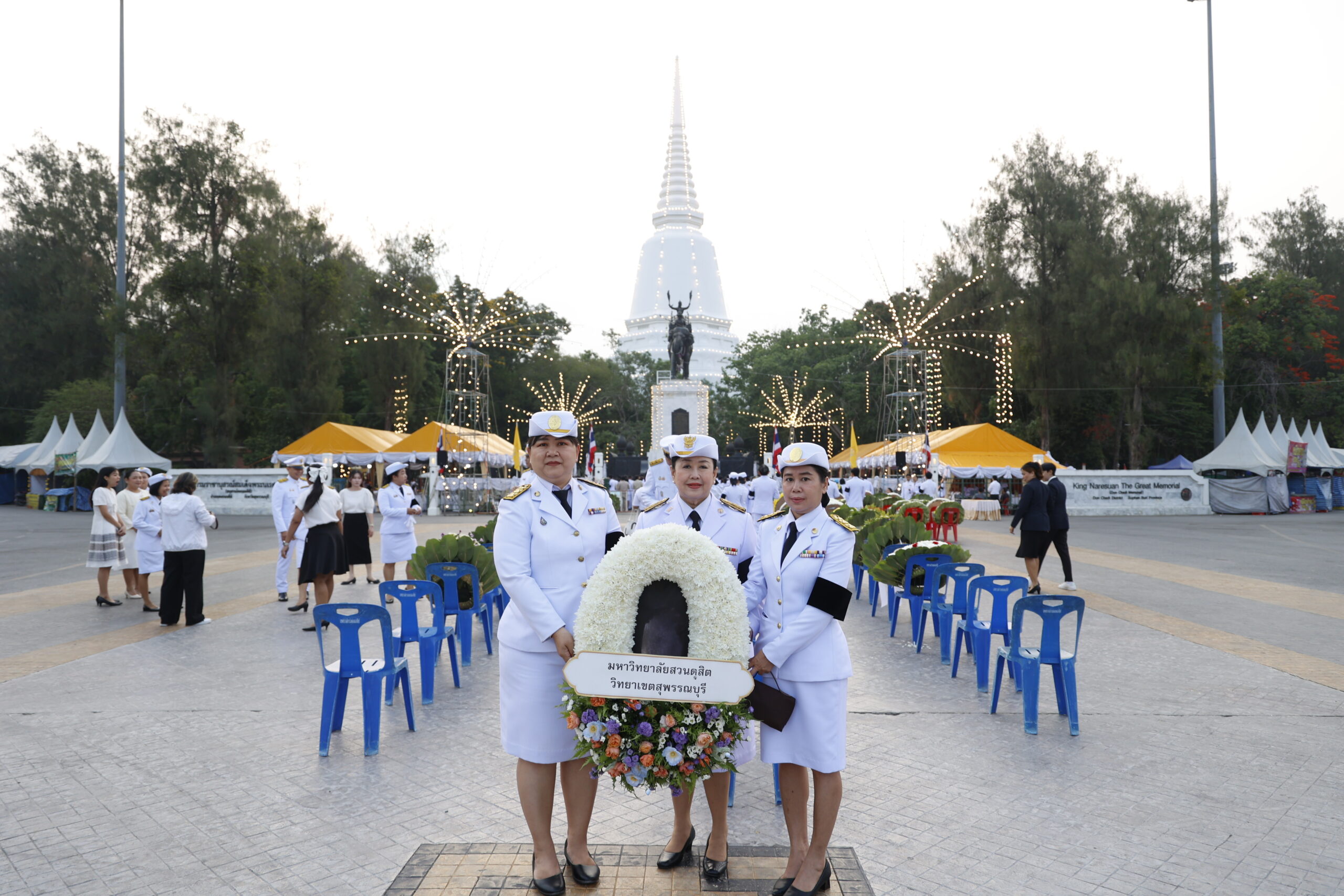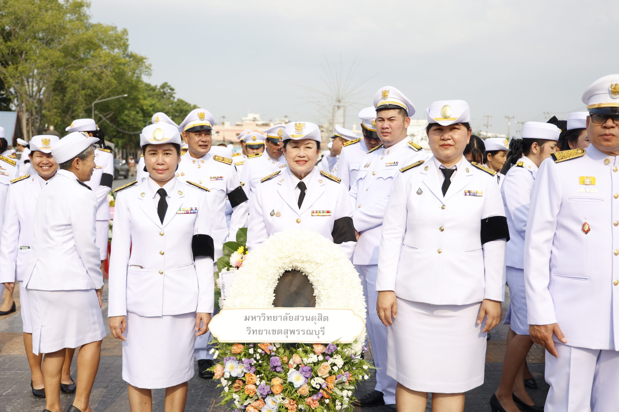 มหาวิทยาลัยสวนดุสิต วิทยาเขตสุพรรณบุรี นำโดย ดร.วรานี เวสสุนทรเทพ รองอธิการบดีฝ่ายวิทยาเขตสุพรรณบุรี พร้อมด้วยบุคลากร เข้าร่วมงานรัฐพิธี “วันคล้ายวันสวรรคตสมเด็จพระนเรศวรมหาราช” และพิธีวางพวงมาลาถวายราชสักการะสมเด็จพระนเรศวรมหาราช ประจำปี พ.ศ.2569 โดยมี นายณัฐพงษ์ สงวนจิตร ผู้ว่าราชการจังหวัดสุพรรณบุรี เป็นประธานในพิธี โดยมีหน่วยงานทั้งภาครัฐ ภาคเอกชน และภาคประชาชน เข้าร่วมพิธีโดยพร้อมเพรียง ในวันเสาร์ที่ 25 เมษายน 2569 ตั้งแต่เวลา 06.00 น. เป็นต้นไป ณ พระบรมราชานุสรณ์ดอนเจดีย์ อำเภอดอนเจดีย์ จังหวัดสุพรรณบุรี