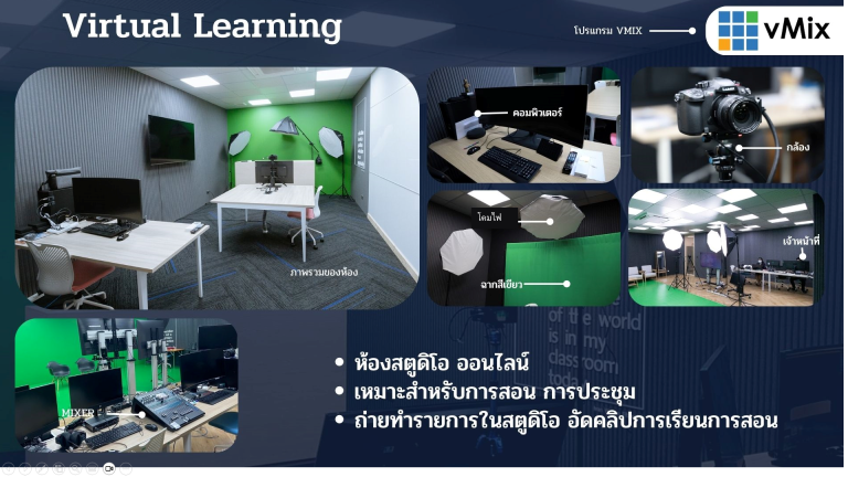 1.Virtual Learning Room จำนวน 1 ห้อง ใช้สำหรับบันทึกเทป ตัดต่อ และเป็นสตูดิโอ