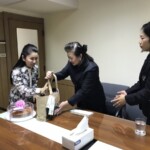 ดร.วรานี เวสสุนทรเทพ รองอธิการบดีฝ่ายวิทยาเขตสุพรรณบุรี สวัสดีปีใหม่ 2560 มอบของขวัญแด่ คุณกาญจนา ศิลปอาชา