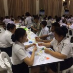 อาจารย์และนักศึกษาหลักสูตรคหกรรมศาสตร์เป็นวิทยากรสอนการประดิษฐ์ดอกไม้จันทน์ ดอกดารารัตน์ ในโครงการเปิดโลกกว้างสร้างเส้นทางสู่อาชีพตามแนวทางพระราชดำริ ณ โรงเรียนกาญจนาภิเษกวิทยาลัย สุพรรณบุรี 23 สิงหาคม 2560