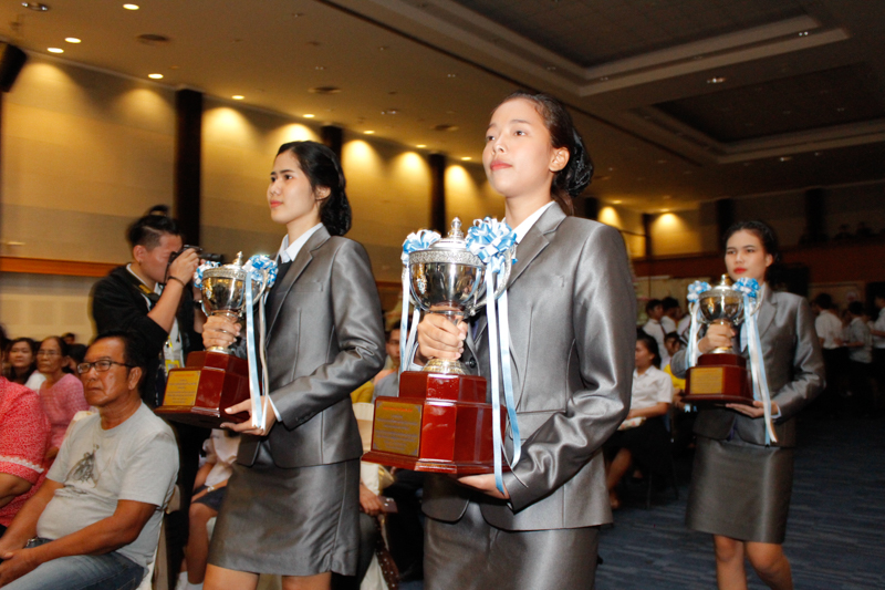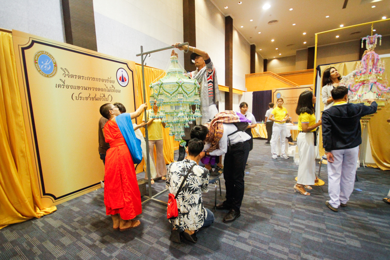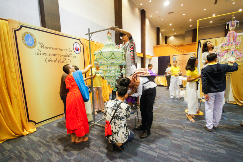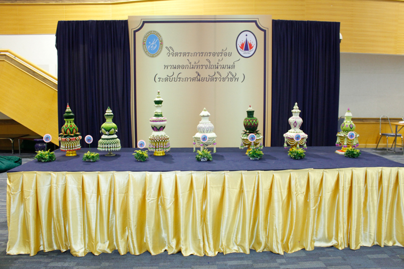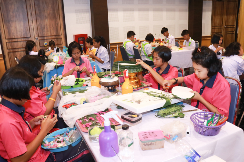 พิธีมอบรางวัลการประกวดผลงานเย็บร้อยค่อยจีบ ประดิษฐ์ใบตอง ระดับชาติ ครั้งที่ 9 ชิงถ้วยพระราชทานสมเด็จพระนางเจ้าสิริกิติ์ พระบรมราชินีนาถ ในรัชกาลที่ 9 ในโครงการสืบสานศาสตร์ศิลป์ ส่งเสริมสยาม สู่ความยั่งยืน  ทั้งนี้ได้รับเกียรติจาก คุณโรจนา  ผลพันธิน ที่ปรึกษาอธิการบดีฝ่ายศิลปวัฒธรรมและกีฬา มหาวิทยาลัยสวนดุสิต  เป็นประธานมอบรางวัลแก่ผู้ชนะการประกวดในแต่ละประเภทดังนี้ โรงเรียนเทศบาลวัดแหลมสุวรรณาราม (วัฒนรวมวิทยา) คว้ารางวัลรางวัลชนะเลิศ การประกวดวิจิตรตระการกรองร้อยกระทงลอย ระดับประถมศึกษา, โรงเรียนโยธินบำรุง คว้ารางวัลรางวัลชนะเลิศ  การประกวดวิจิตรตระการกรองร้อยมาลัยชายเดียว ระดับมัธยมศึกษาตอนต้น,โรงเรียนพนมไพรวิทยาคาร คว้ารางวัลรางวัลชนะเลิศ การประกวดวิจิตรตระการกรองร้อยพานพุ่มดอกไม้บูชาพระ ระดับมัธยมศึกษาตอนปลาย, วิทยาลัยอาชีวศึกษาเลย คว้ารางวัลรางวัลชนะเลิศ การประกวดวิจิตรตระการกรองร้อยพานดอกไม้ทรงโถน้ำมนต์  ระดับประกาศนียบัตรวิชาชีพ,วิทยาลัยอาชีวศึกษานครศรีธรรมราช คว้ารางวัลรางวัลชนะเลิศ การประกวดวิจิตรตระการกรองร้อยพานเครื่องนมัสการทองน้อย ระดับประกาศนียบัตรวิชาชีพชั้นสูง, มหาวิทยาลัยเทคโนโลยีราชมงคลกรุงเทพ  (ทีมนายฉัตรชัย  สีหงษา) คว้ารางวัลรางวัลชนะเลิศ การประกวดวิจิตรตระการกรองร้อยกระเช้าดอกไม้แบบประณีตศิลป์ ระดับอุดมศึกษา, มหาวิทยาลัยเทคโนโลยีราชมงคลธัญบุรี คณะเทคโนโลยีคหกรรมศาสตร์ คว้ารางวัลรางวัลชนะเลิศ การประกวดวิจิตรตระการกรองร้อยพวงมาลาแบบประณีตศิลป์ ระดับประกาศนียบัตรวิชาชีพชั้นสูง และ ร้านใบตองร้อยเอ็ด คว้ารางวัลรางวัลชนะเลิศ การประกวดวิจิตรตระการกรองร้อยเครื่องแขวนพวงดอกไม้เทียม ระดับประชาชนทั่วไป โดยมีสถานบันการศึกษาและผู้สนใจเข้าร่วมการประกวดกว่า 90 ทีมทั่วประเทศ เพื่อเป็นเครือข่ายความร่วมมือด้านศิลปวัฒนธรรม และเป็นฐานข้อมูลในการเผยแพร่ศิลปวัฒนธรรมไทย ณ หอประชุมใหญ่ มหาวิทยาลัยสวนดุสิต วิทยาเขตสุพรรณบุรี วันที่ 17 กรกฎาคม 2561